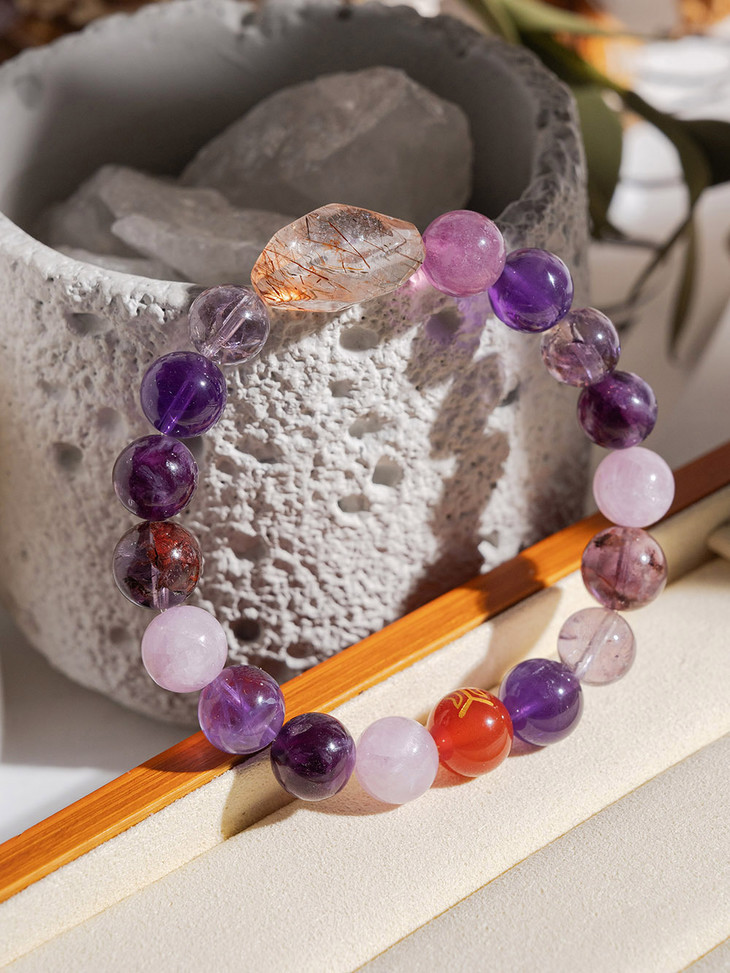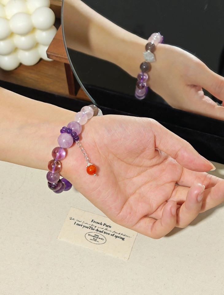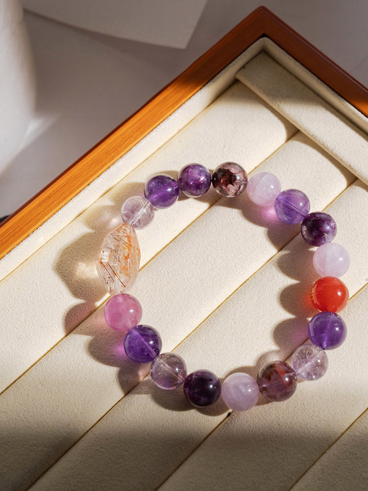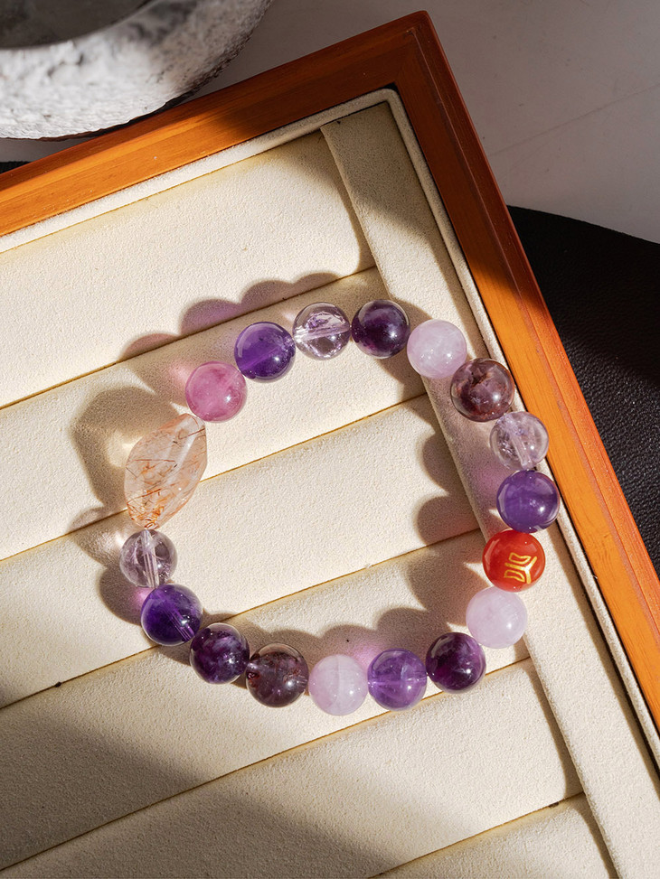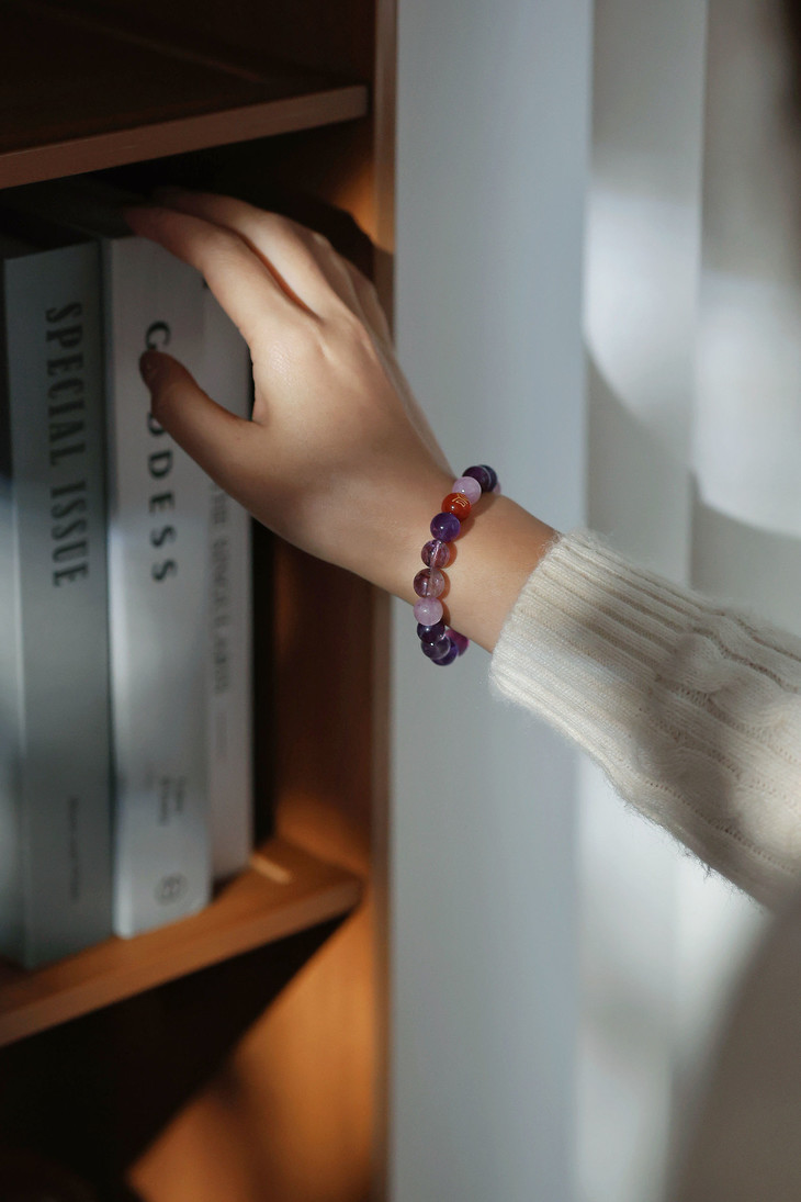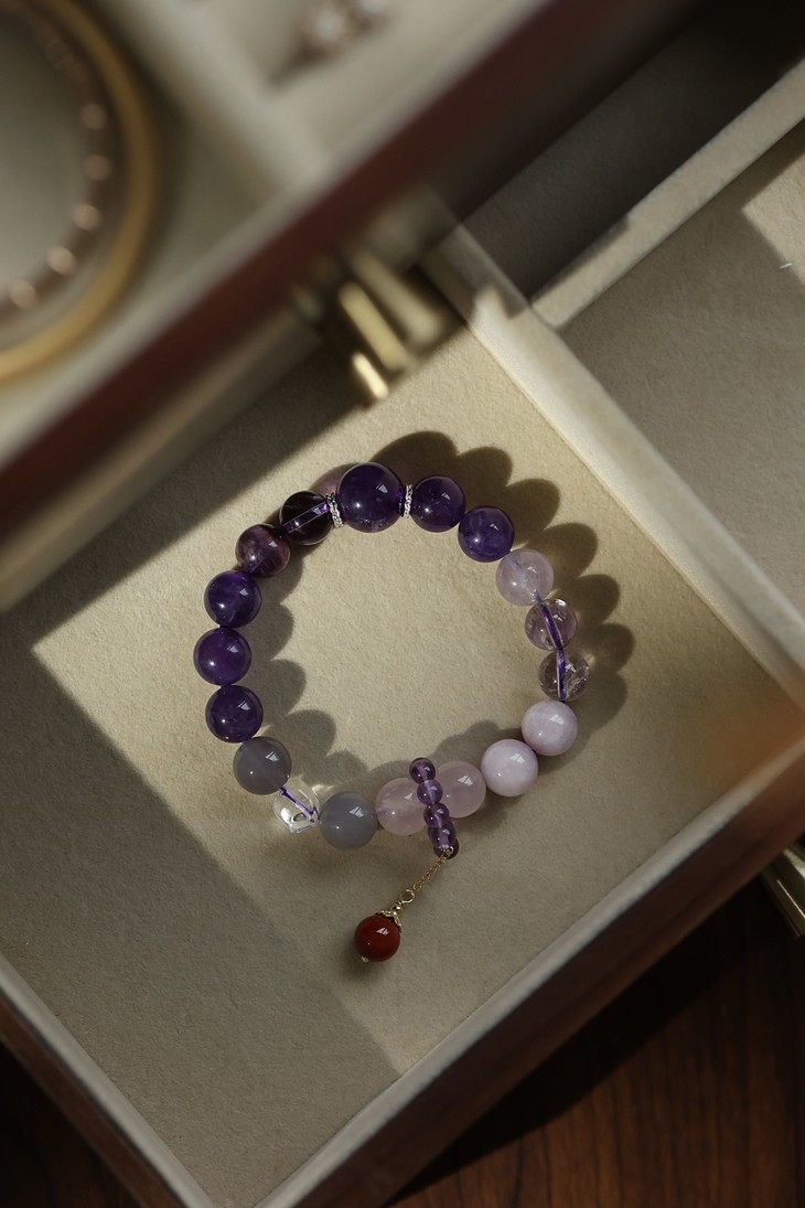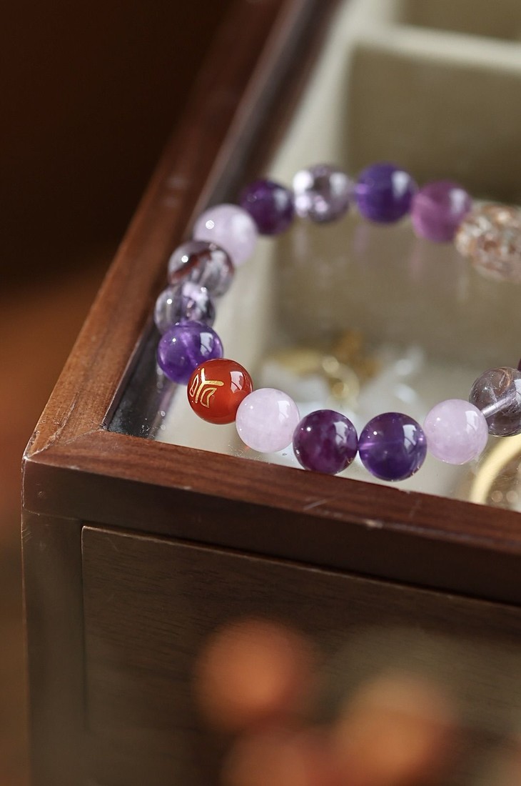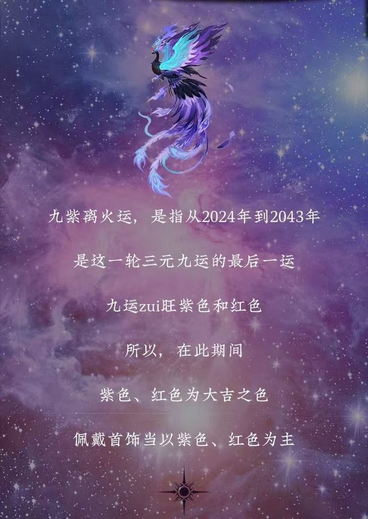 🔻强调了紫色和红色的重要性 认为这两种颜色在九运中最旺 象征着大吉和旺气 这种手串特别适合女性佩戴 被视为属于她们的大时代,寓意着泼天富贵