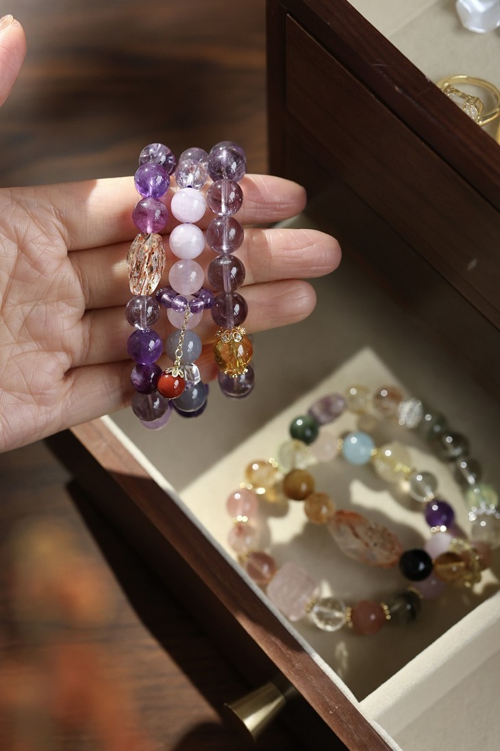 这两年戴水晶手串的人越来越多了 佩戴天然水晶具有灵性,可开运助财 经常佩带还有较好的保健和理疗作用 天然水晶手链是一种饰品 更是一种情感与愿望的寄托 它可以作为一份珍贵的礼物 送给亲朋好友,传递着深深的祝福 美国高奢独立设计师品牌NATURALLY JOJO 王府井百货、维多利亚、巴黎春天等都有专柜 品质和款式一点不输奢牌❗️❗️ 【天然水晶手链合集】 🔻白水晶: “水晶之王”,象征纯洁、清纯 🔻紫水晶:与灵性和智慧紧密相连 🔻粉水晶:温暖人心,吸引爱情与友情 🔻黄水晶:财富与成功的象征