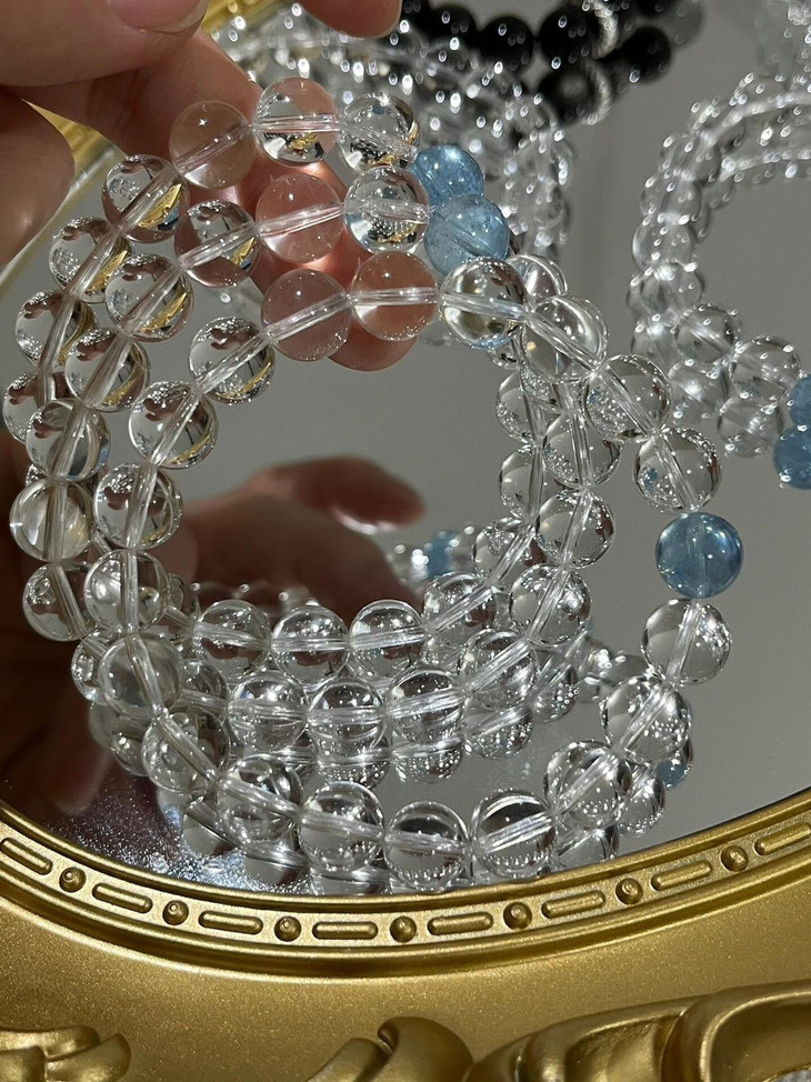 🔻佩戴白水晶手串不仅有助于净化思绪 增强记忆力,还能帮助建立和谐的人际关系 传递真诚与信任的正能量 它能够吸收和消除周围的负面能量 创造一个纯净、和谐的环境 帮助人们摆脱焦虑、恐惧和烦恼 让心灵得到片刻的安宁