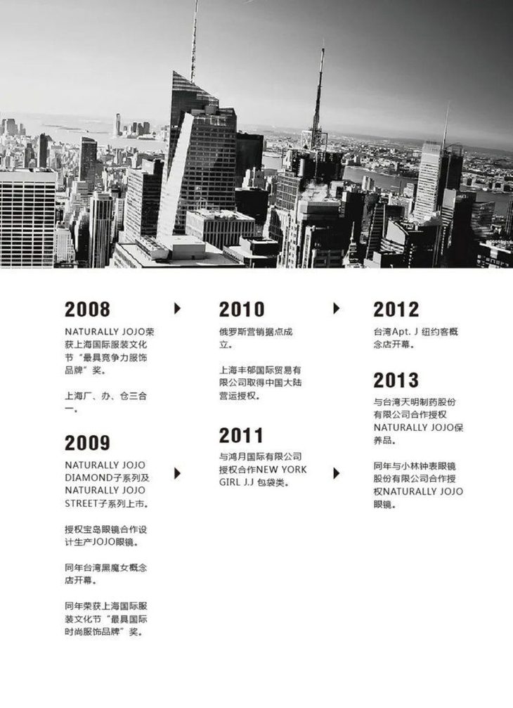 【NATURALLY JOJO】 美国大都市纽约的设计师品牌 创立于1993年 品牌汲取纽约市的自由和奔放 聚集世界流行焦点、艺术、人文、流行 风格大都会感十足 坚持以黑与白色阶谱出时装的流行 树立经典的黑白形象 主打时尚质感轻奢欧美风尚 产品涉及服装、背包、饰品、眼镜、 腕表等 行销遍布全球