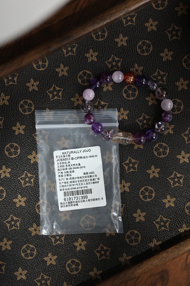 【情人节】NATURALLY JOJO天然水晶手串合集 【品牌】 NATURALLY JOJO 【款式】JZ001-B-CP 紫阿赛水晶手链、JA365A-B-CP黄塔晶+紫水晶、JS137-B-SR天然石草莓晶手链、JZ140-B-CP水晶蜜桃粉色手串、JZ141-B-CW海蓝宝白水晶手串、JC091-B-CY天然水晶手链黄阿塞斯手串、JOEA010-B-CPP九紫离火手串、JOEA017-B-CPP九紫离火手串、JOEA018-B-CG天然多宝水晶串珠、JOEA019-B-CG七脉轮水晶原石手串 【材质】见链接详情 【发货地】 广东 【合作快递】 申通、圆通、韵达 【发货时效】5-7天 【偏远地区】 新疆、西藏、内蒙古+15元/每个 【退换货标准】: 1.包装完好不影响二次销售支持7天无理由退货退款 2.如有质量问题,请把面单以及产品拍照反馈,请在签收后24小时内申请售后,超时不予处理。 3.取消订单需要拦截的,需要收费8元/单 【售后说明】不影响二次销售,支持7天元理由退换货