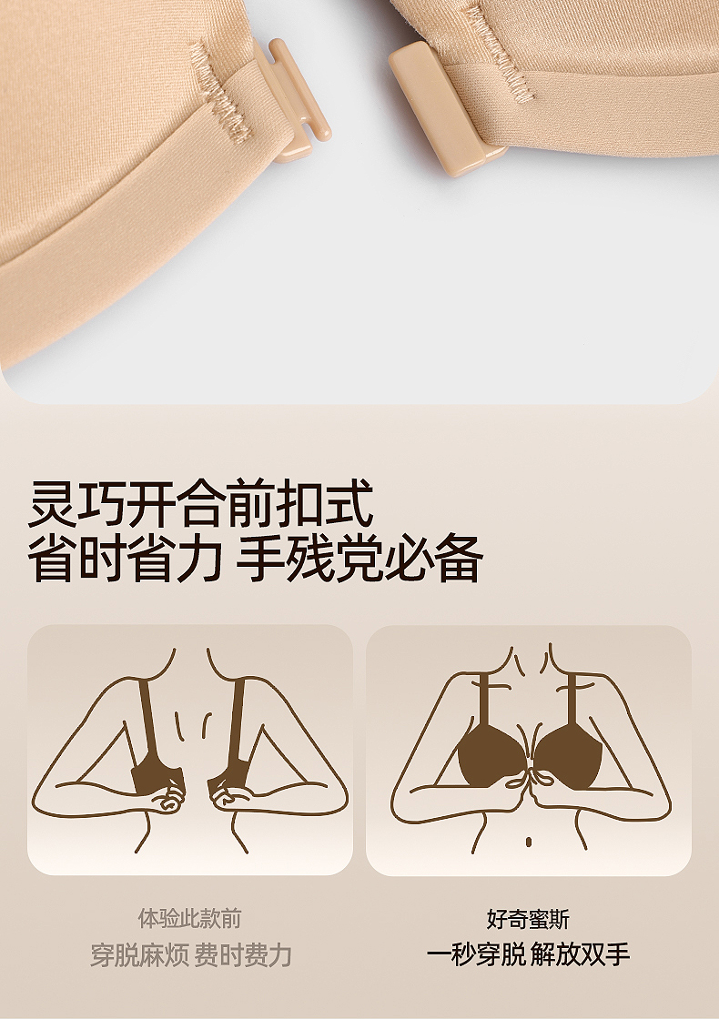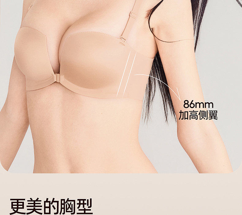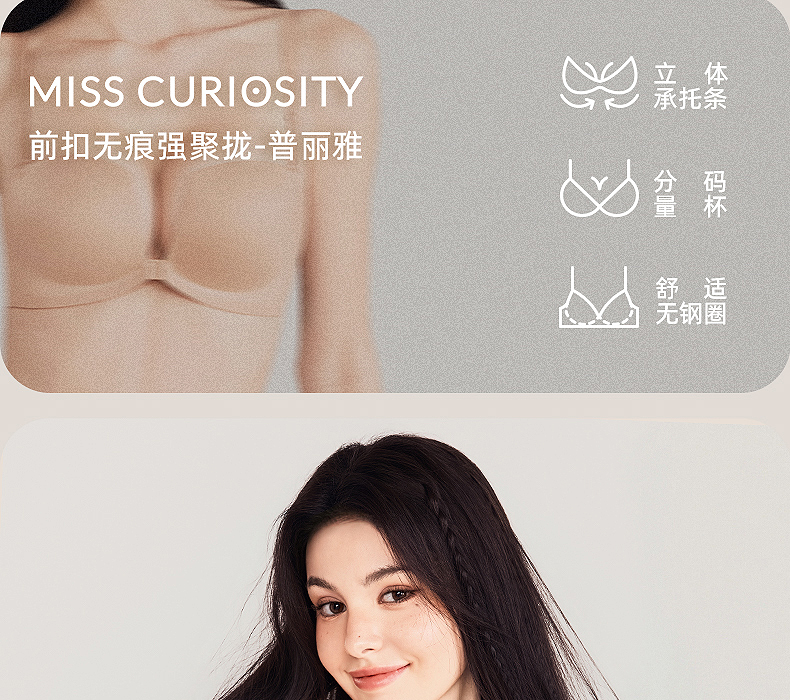 好奇蜜斯(Miss Curiosity)前扣性感美背光面无痕小胸聚拢内衣女文胸套装无钢圈胸罩新款-普丽雅