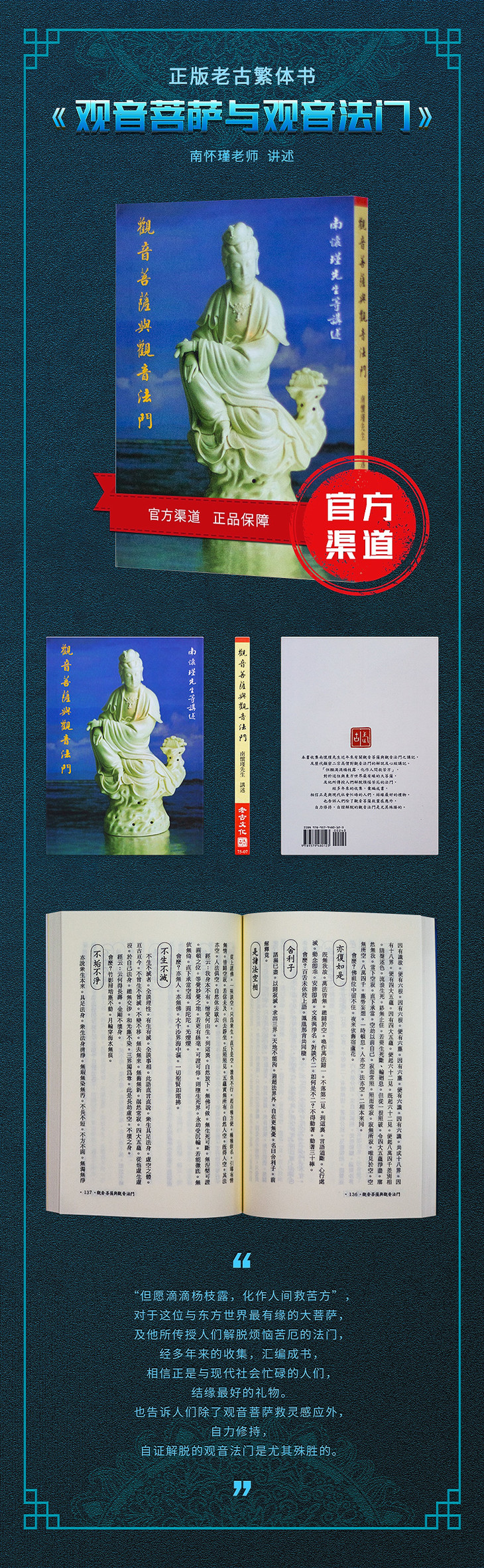 “但愿滴滴杨枝露,化作人间救苦方”,对于这位与东方世界最有缘的大菩萨,及他所传授人们解脱烦恼苦厄的法门,经多年来的收集,汇编成书,相信正是与现代社会忙碌的人们,结缘最好的礼物。也告诉人们除了观音菩萨救灵感应外,自力修持,自证解脱的观音法门是尤其殊胜的。