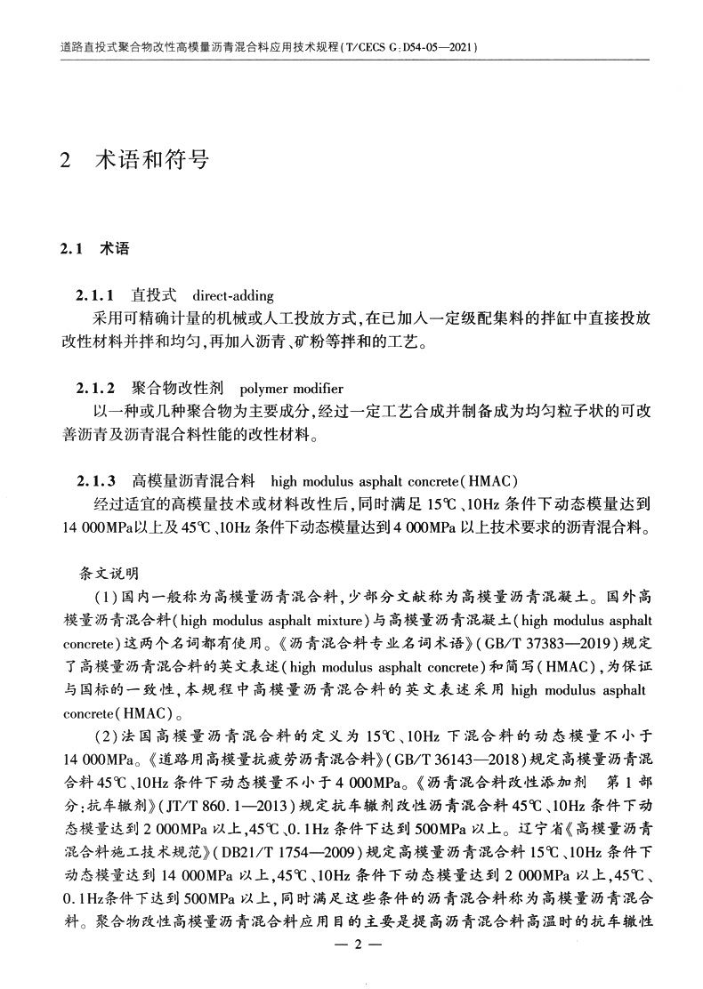 道路直投式聚合物改性高模量沥青混合料应用技术规程(T/CECS G:D54-05—2021)