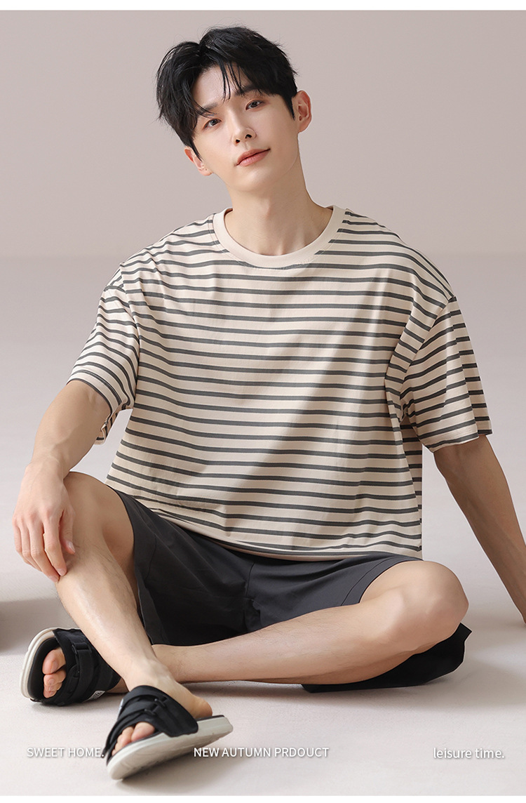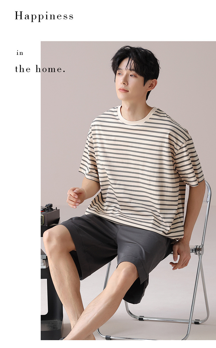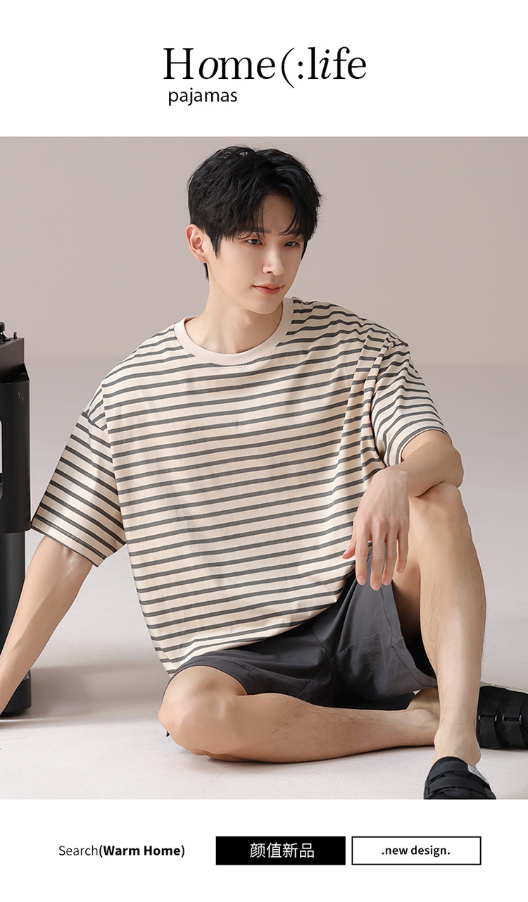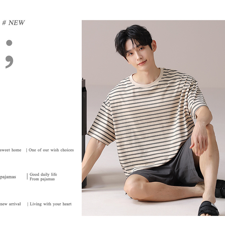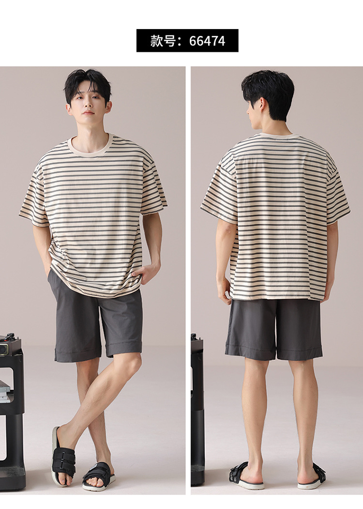 男士夏季纯棉薄款睡衣 休闲简约家居服套装