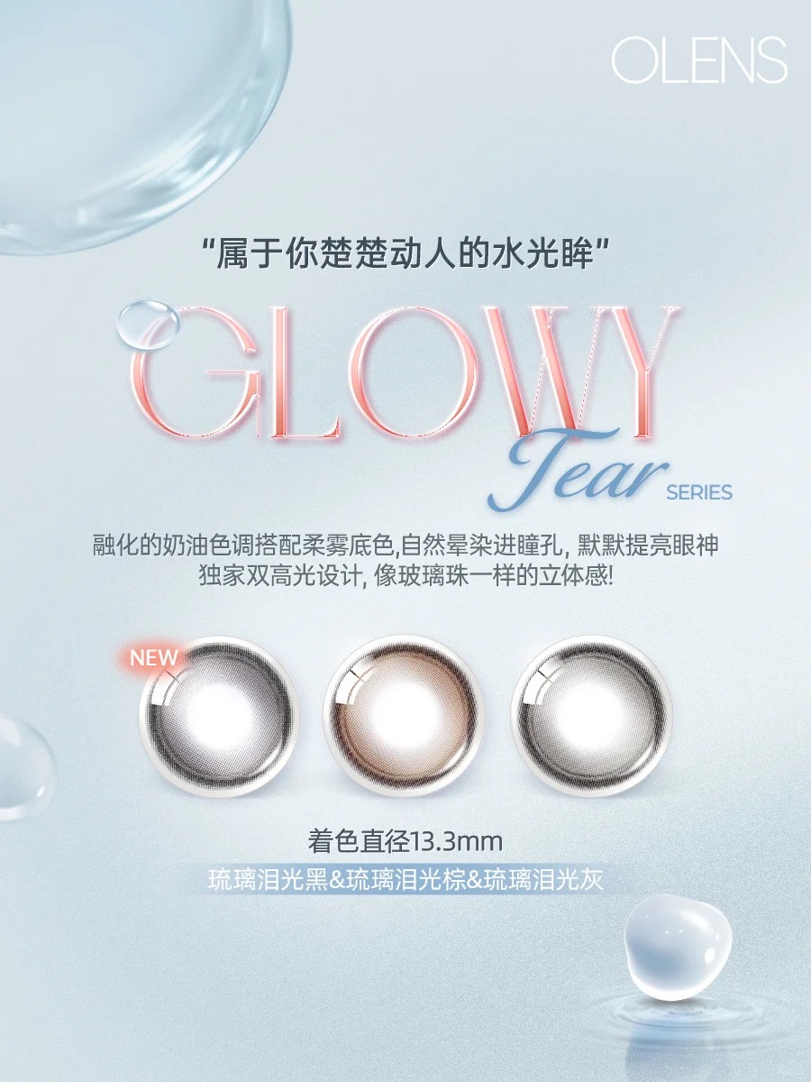 半年抛 Olens·Glowy Tear 琉璃泪光黑/琉璃泪光棕/琉璃泪光灰 着色直径13.3mm