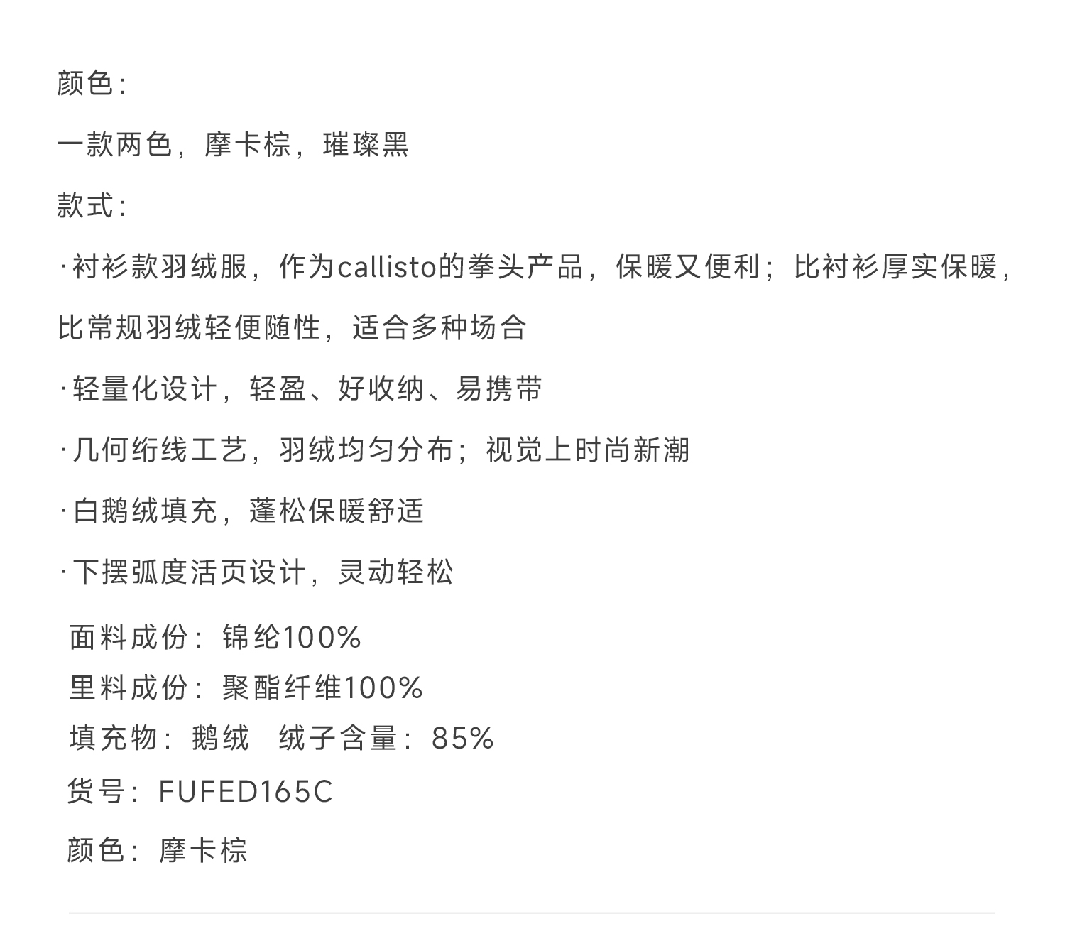 callisto摩卡棕衬衫款鹅绒羽绒服