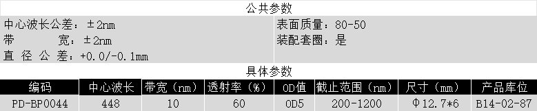 BP448/10k OD5 @200-1200 T>60% φ12.7*6带通滤光片 (带套圈)