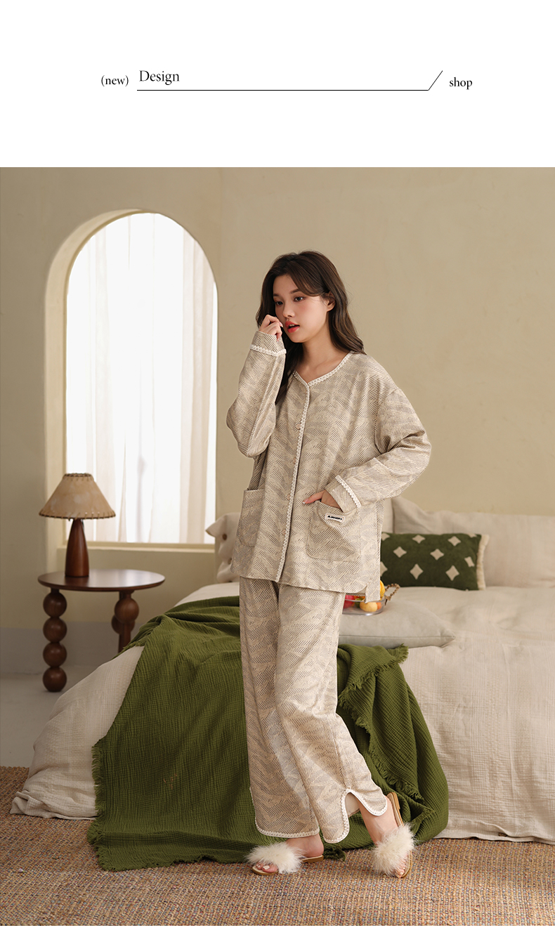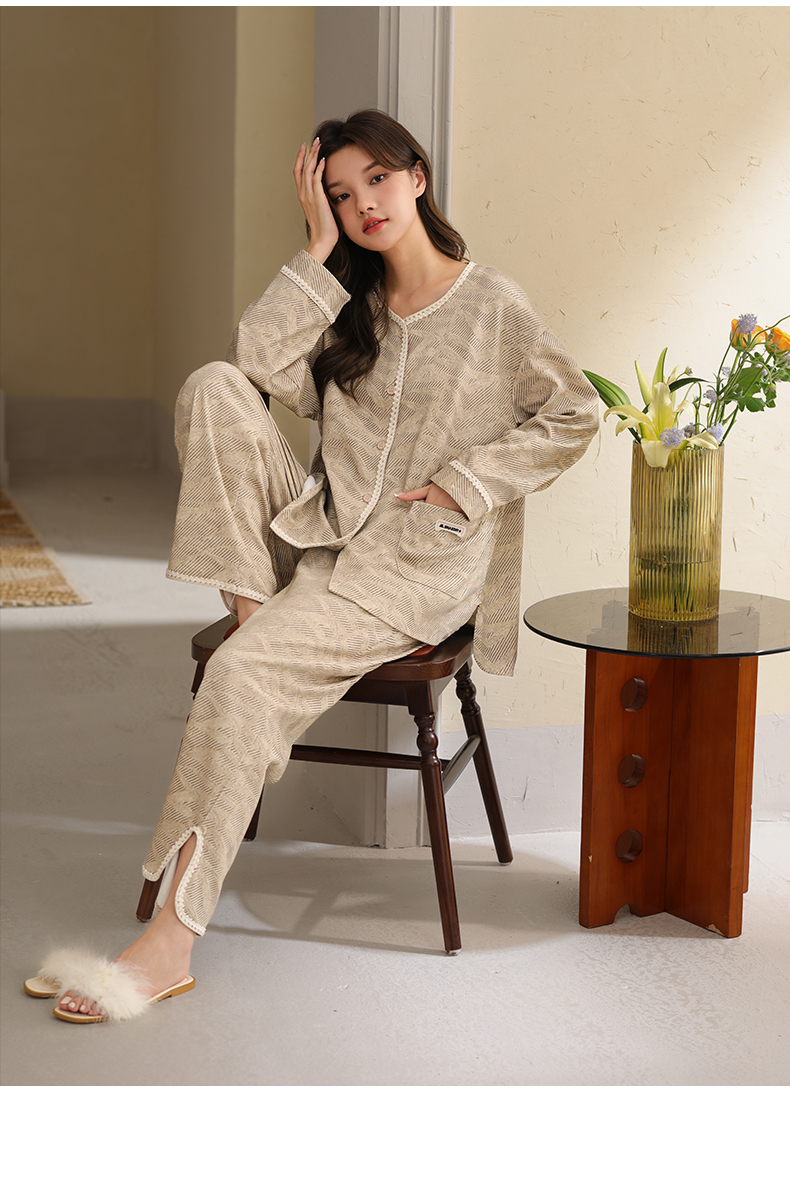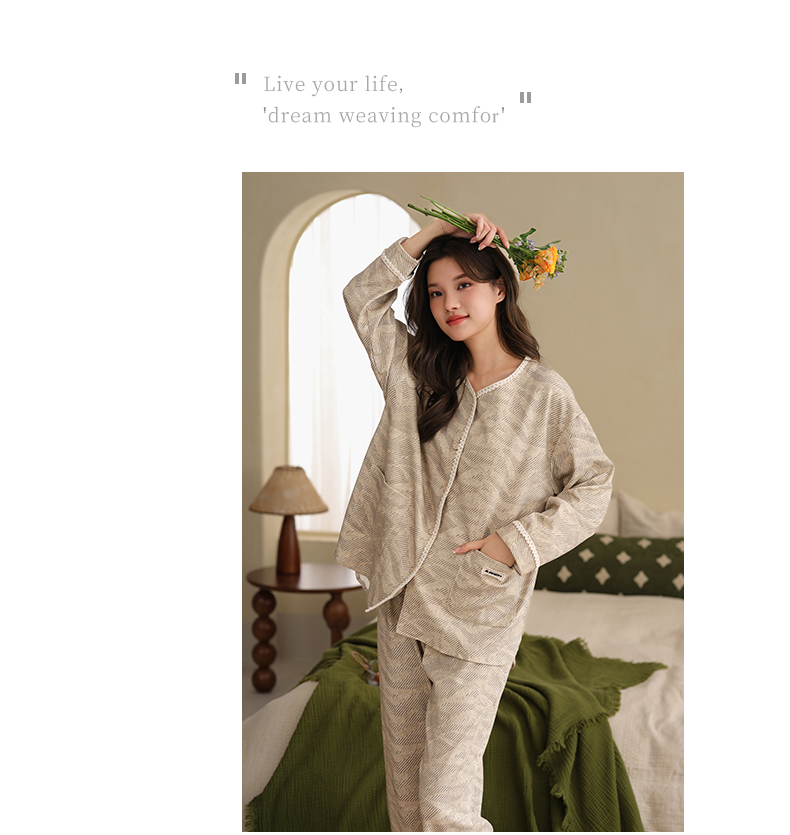 【可人儿&繁花似锦】春秋季纯棉家居服女士印花长袖全棉睡衣套装