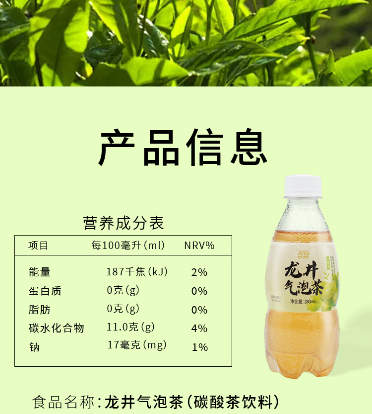 金汇源泉龙井气泡茶280ml*6瓶