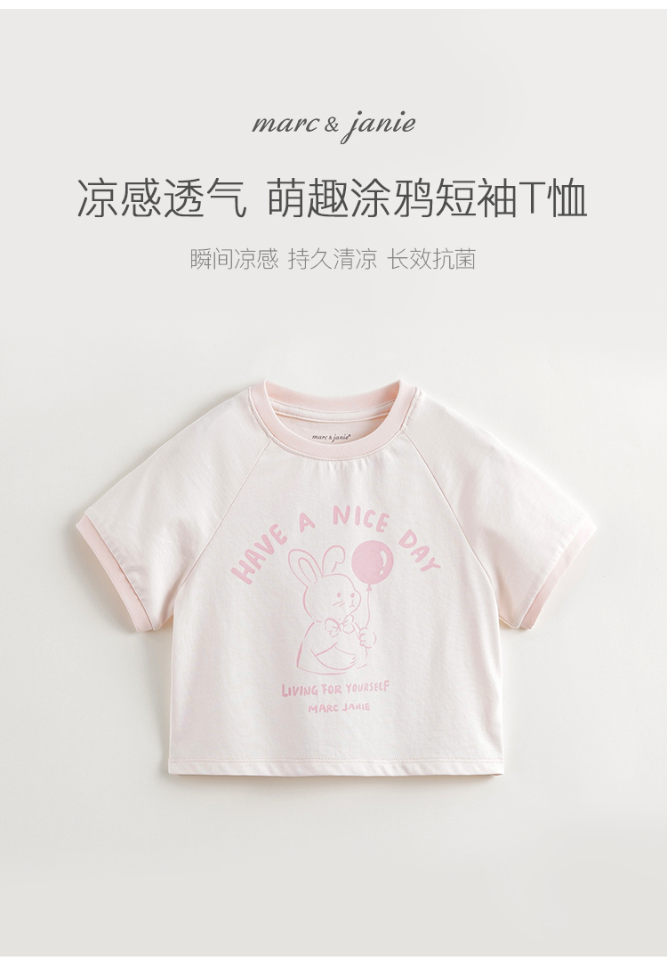 【凉感透气】马克珍妮女童萌趣动物涂鸦短袖T恤夏装新款240773
