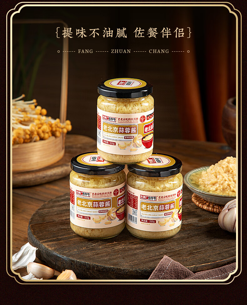 【闻之鲜香 馋涎欲滴】方砖厂69号 蒜蓉酱烧烤火锅调味酱蒜泥烤生蚝蘸料210g*3瓶