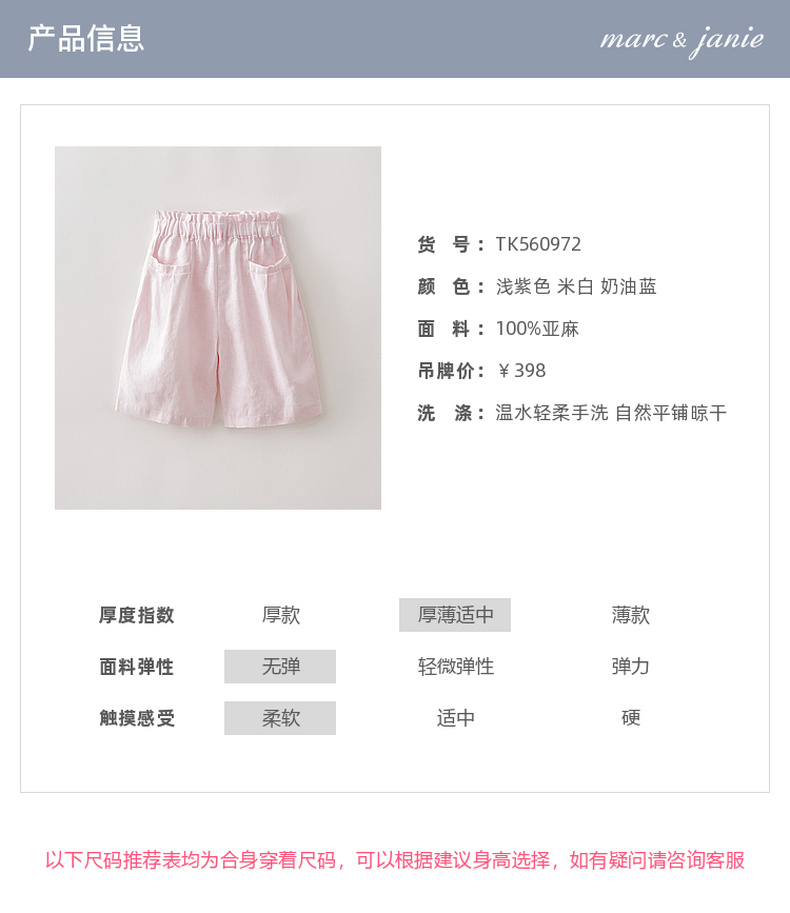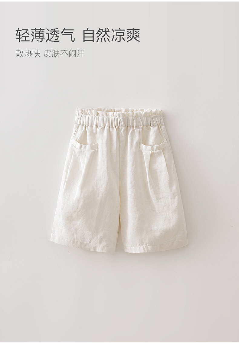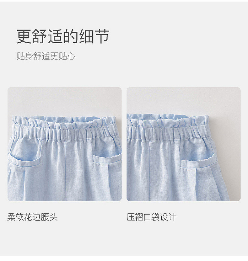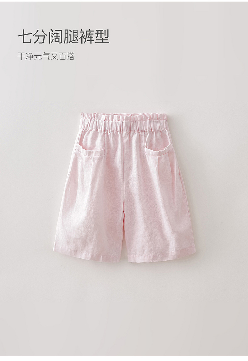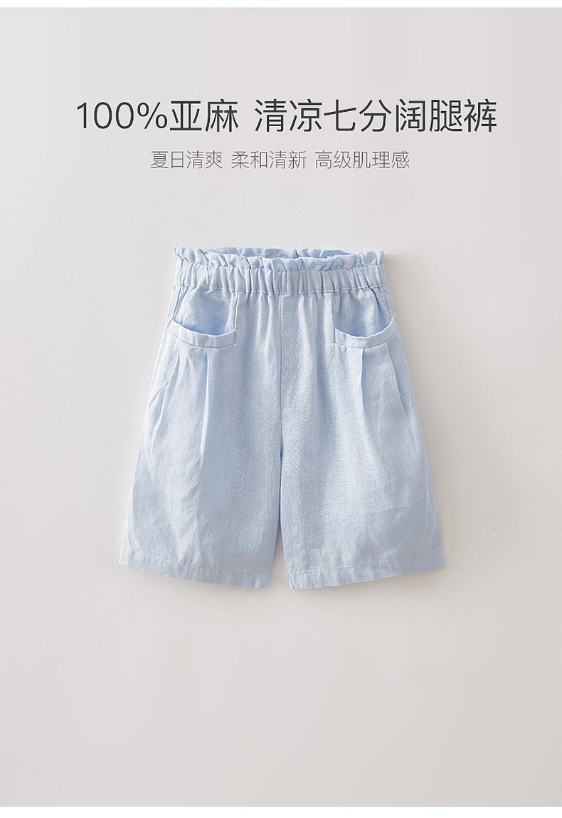 马克珍妮100%亚麻女童清凉七分阔腿裤2026年夏装新款560972