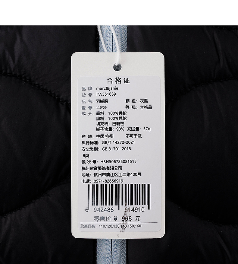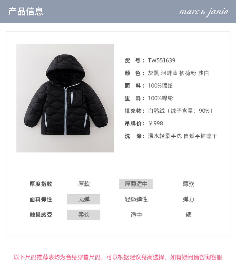 【无氟防泼水】马克珍妮男女童超轻加厚拼色羽绒服2025年冬装新款551639