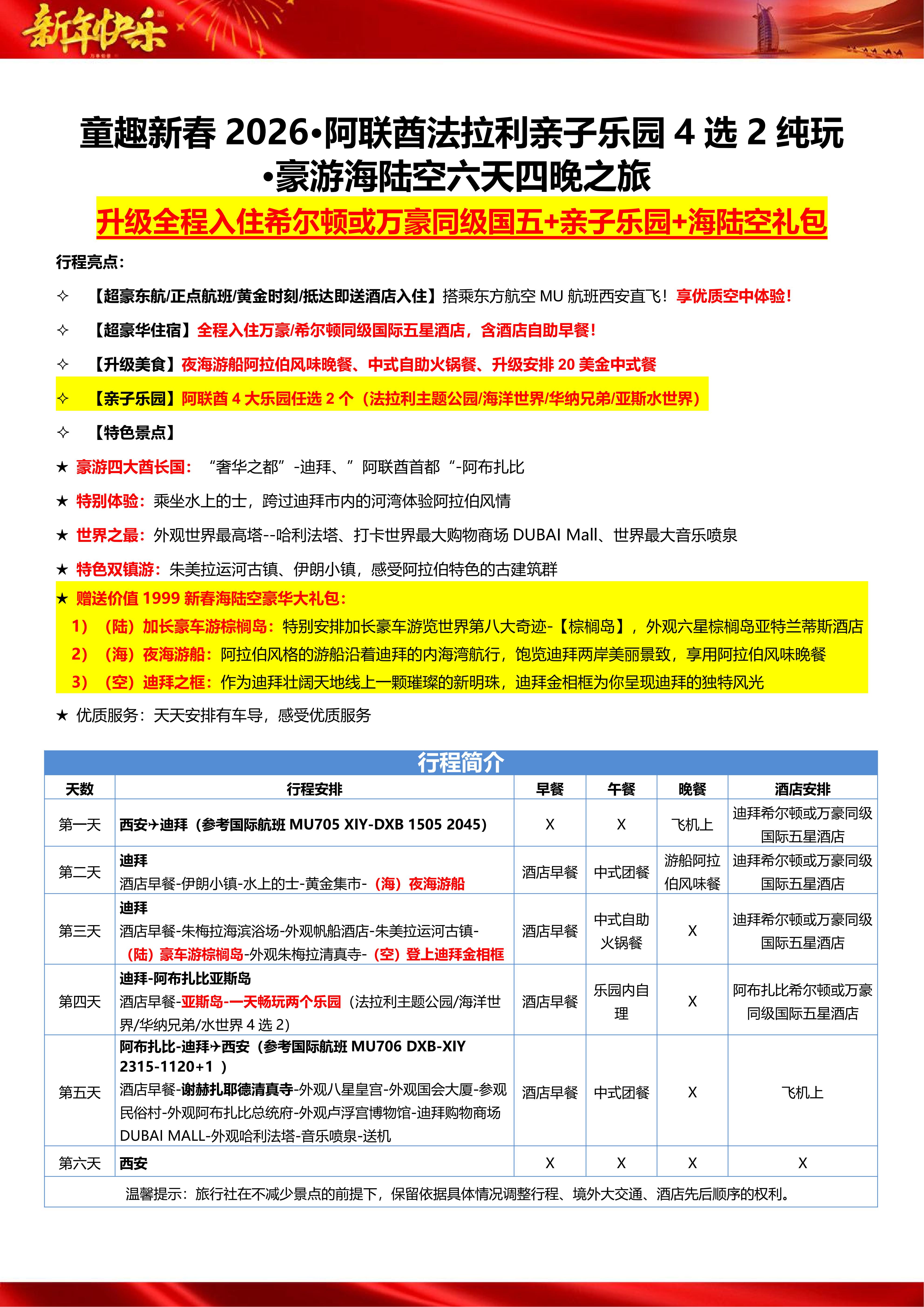 【童趣新春阿联酋】豪游海陆空6/7天