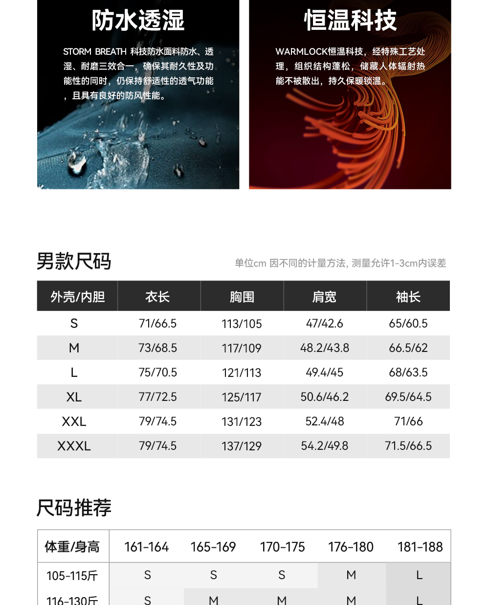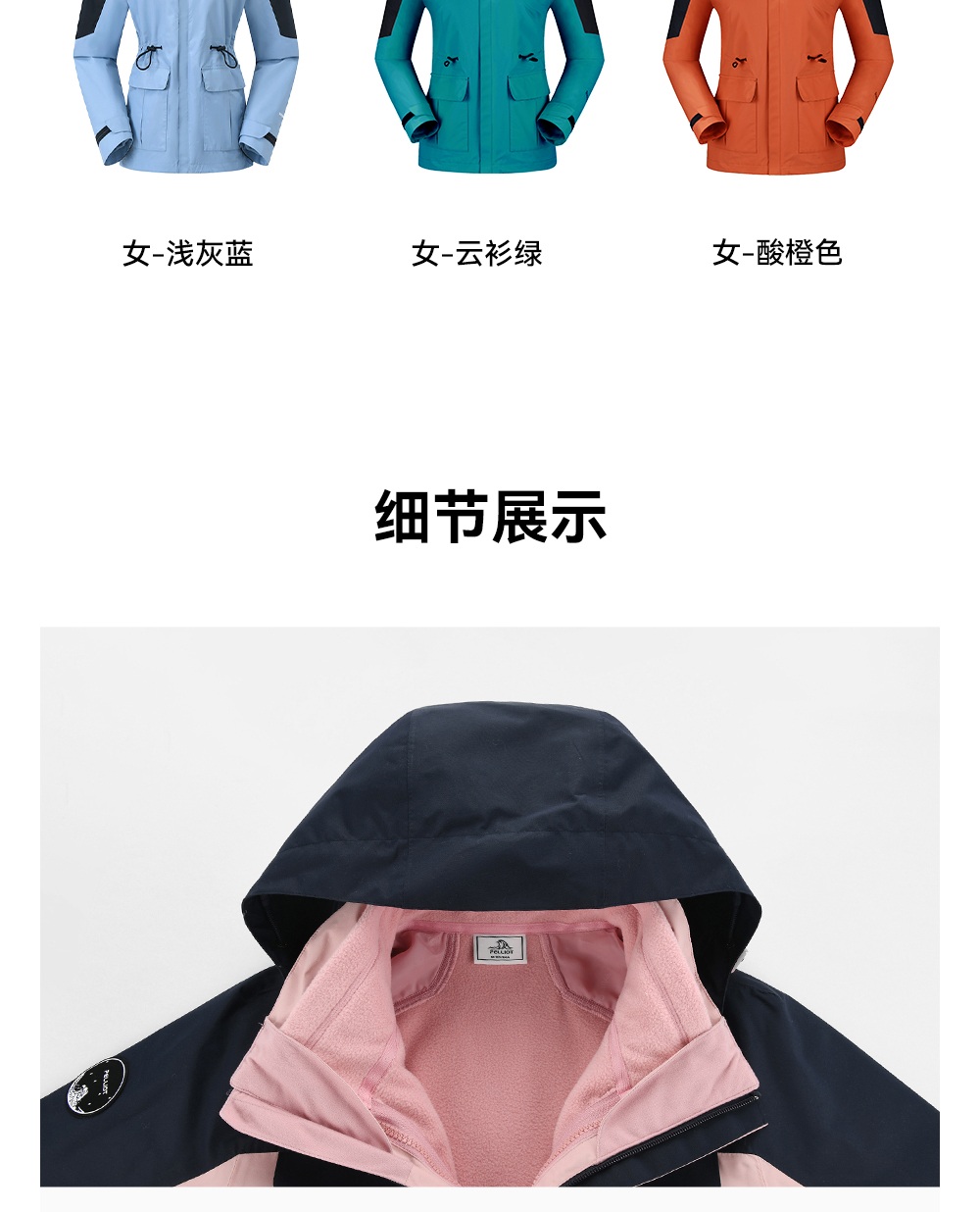 【山色】伯希和户外冲锋衣男2025新款三合一防风徒步登山服外套女