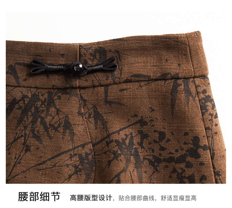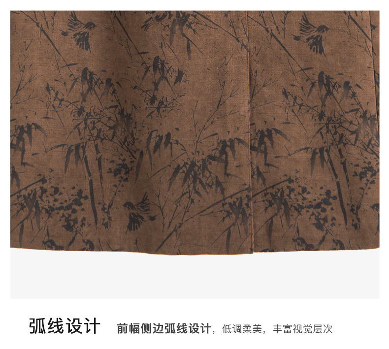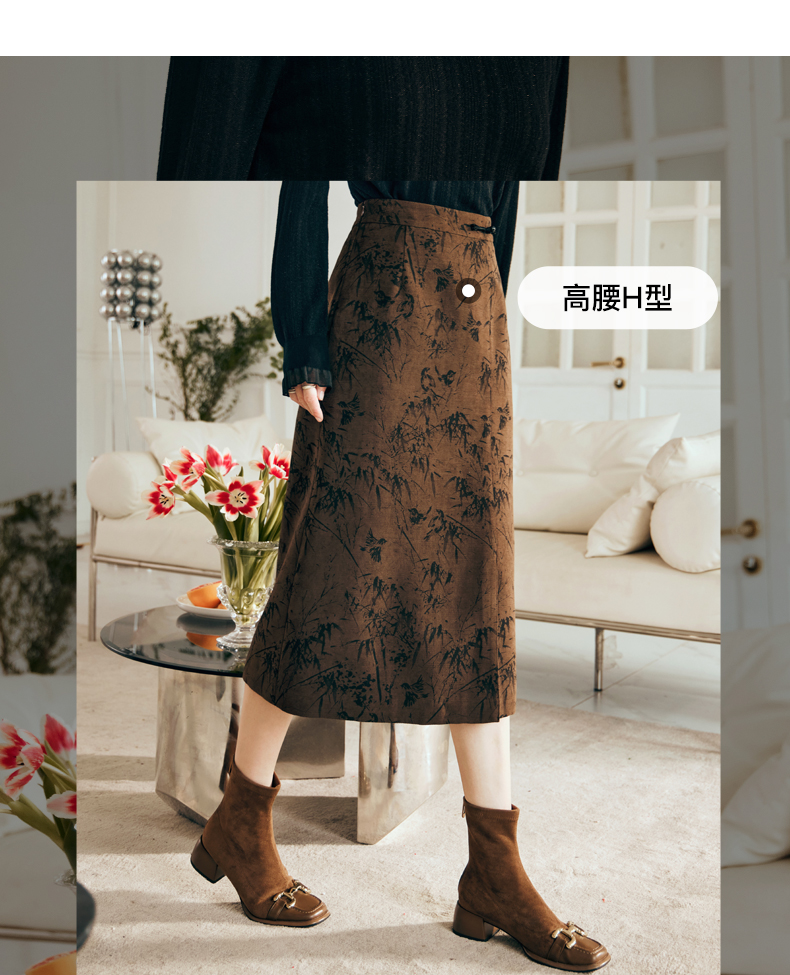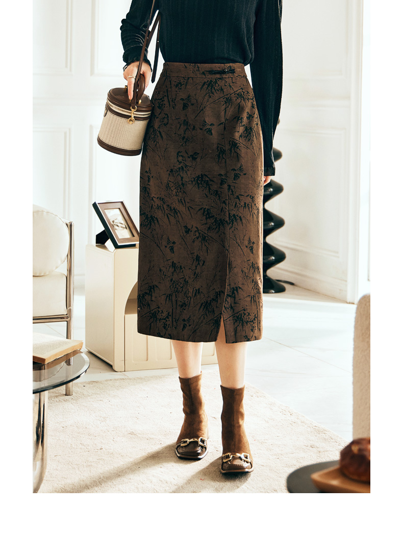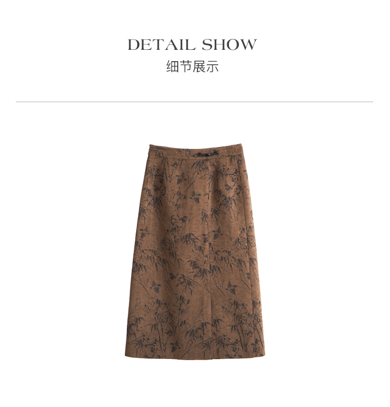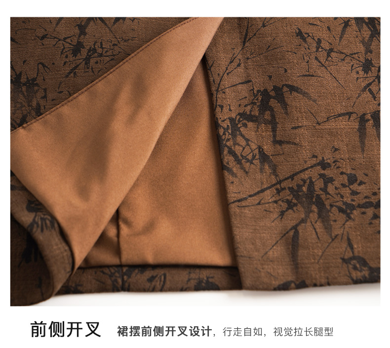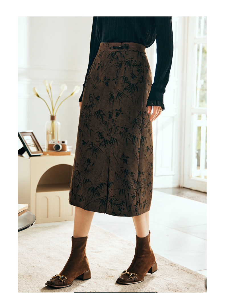 OLrain欧芮儿棕色半身裙女秋冬2023新款复古竹影新中式气质半裙