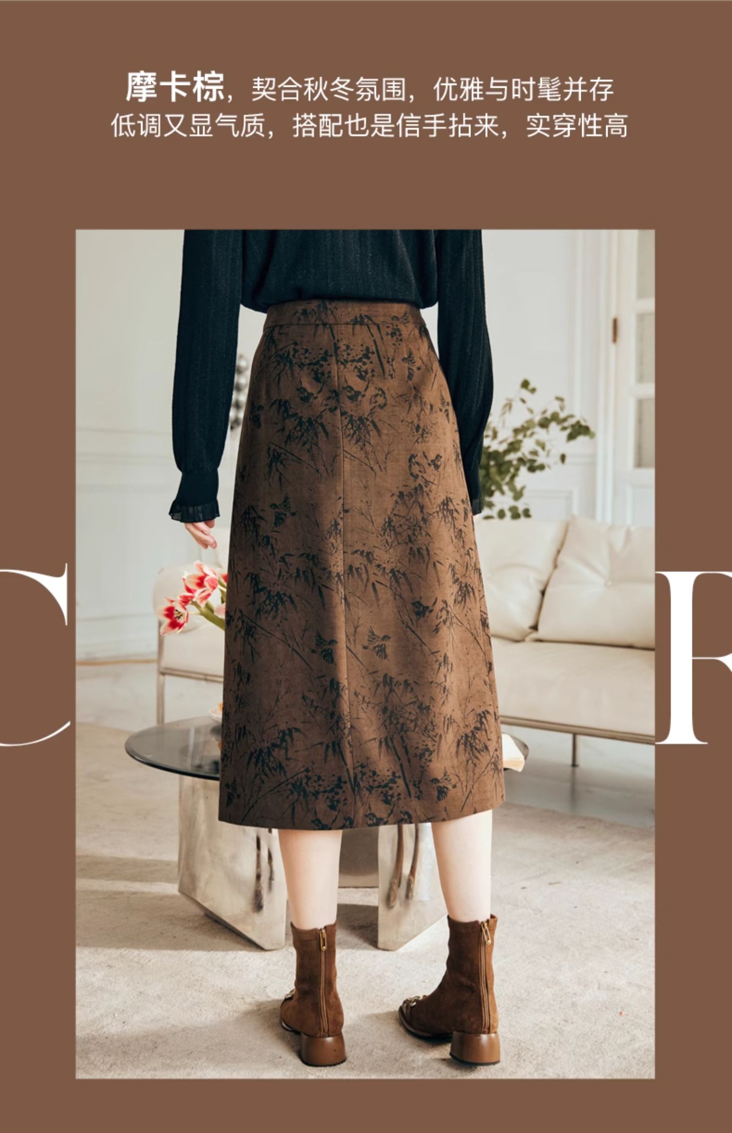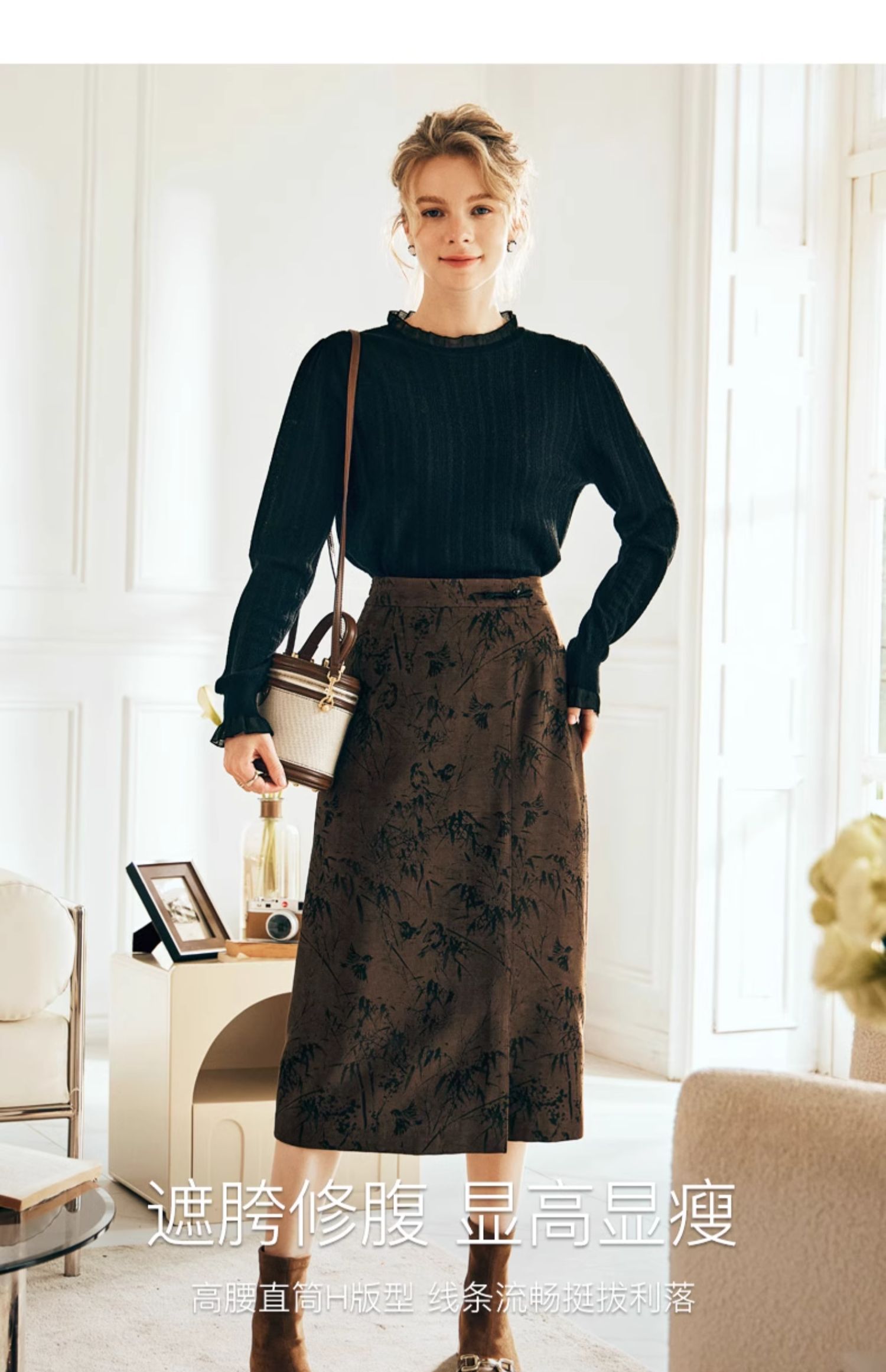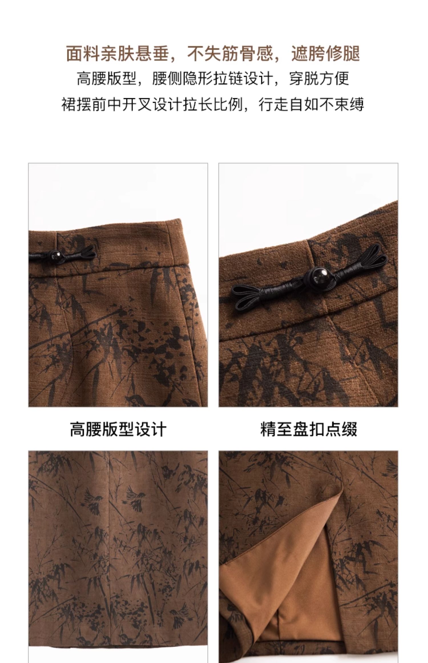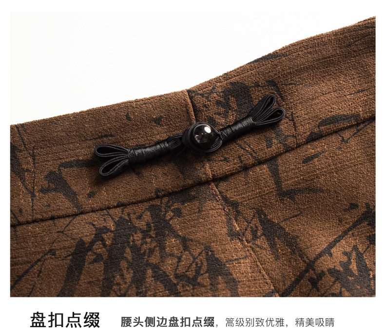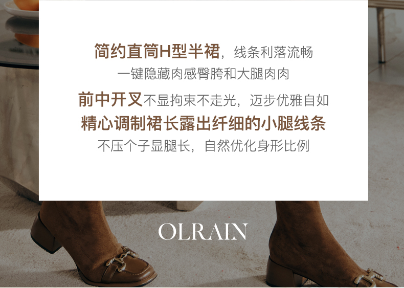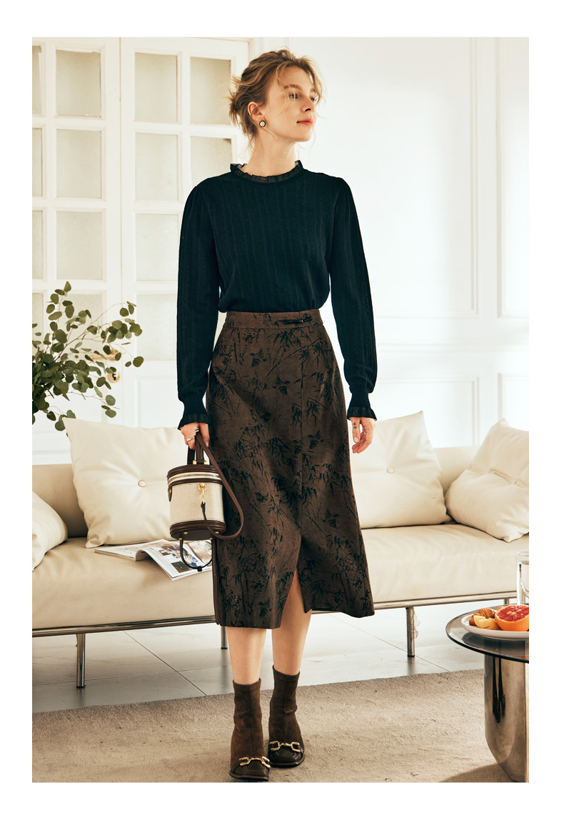 OLrain欧芮儿棕色半身裙女秋冬2023新款复古竹影新中式气质半裙