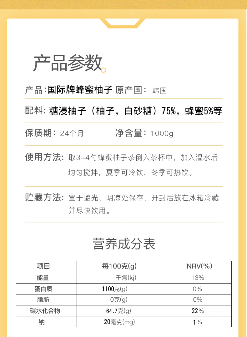 KJ国际牌蜂蜜柚子饮品 1Kg 560g两种规格可选 蜂蜜柚子茶冲饮 即食果味茶