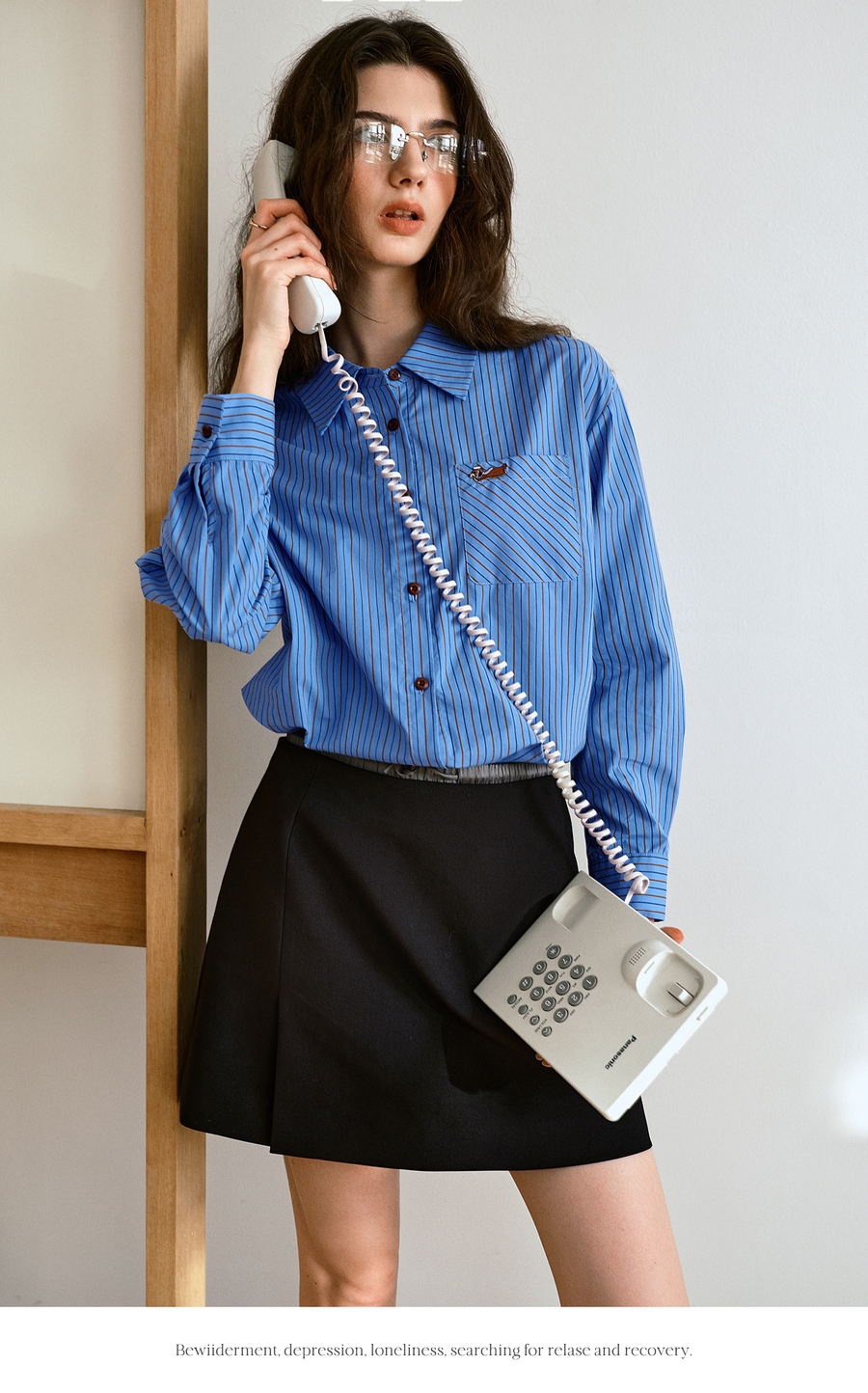 OLrain欧芮儿2025新款女秋季复古通勤蓝色条纹衬衣翻领长袖衬衫