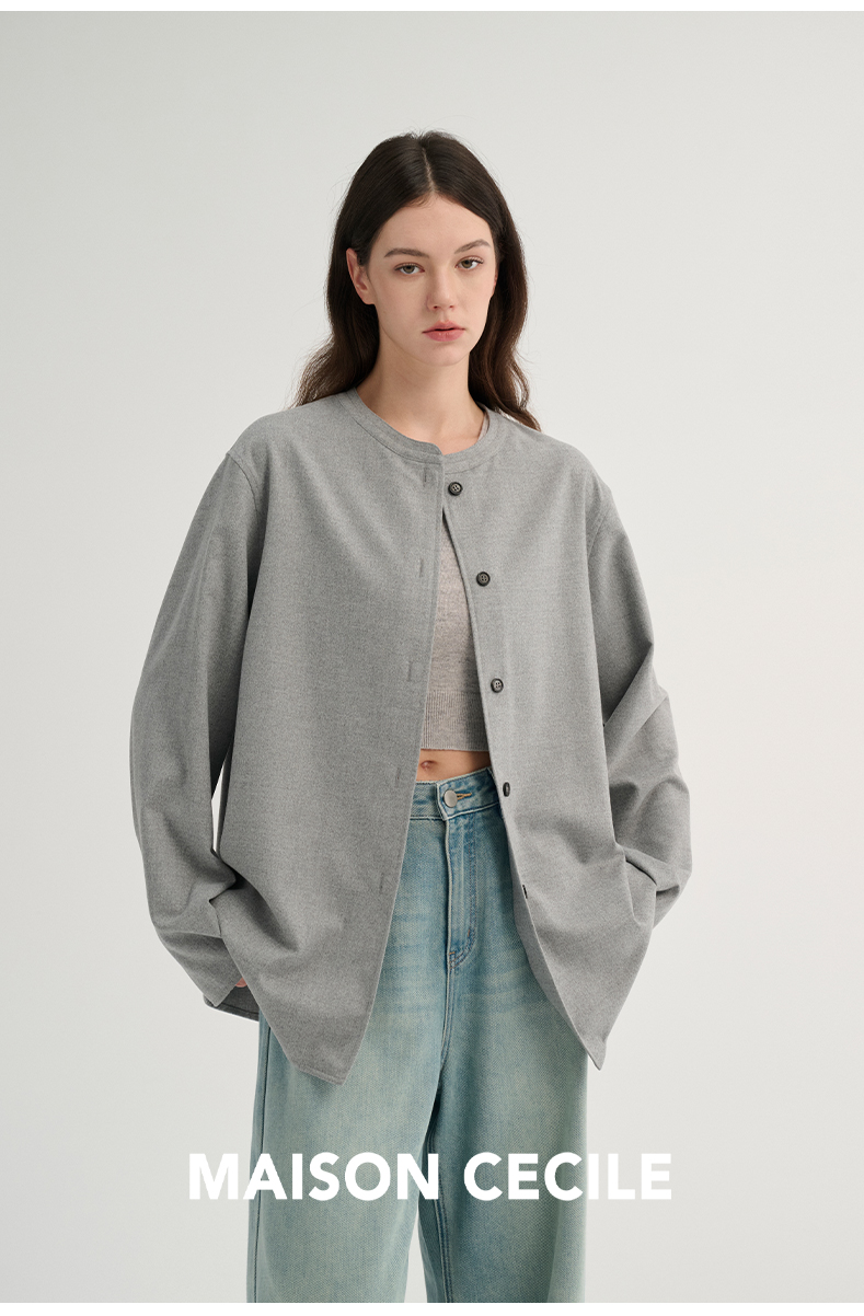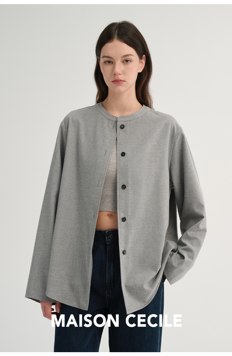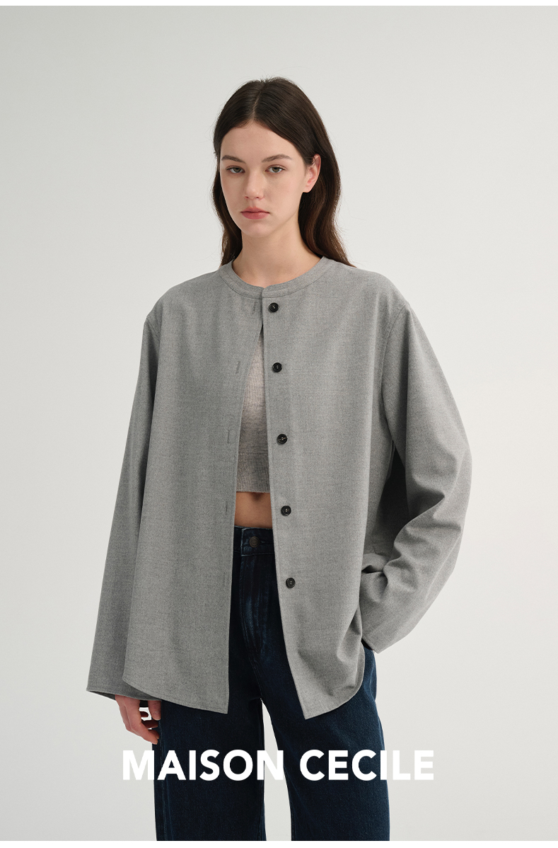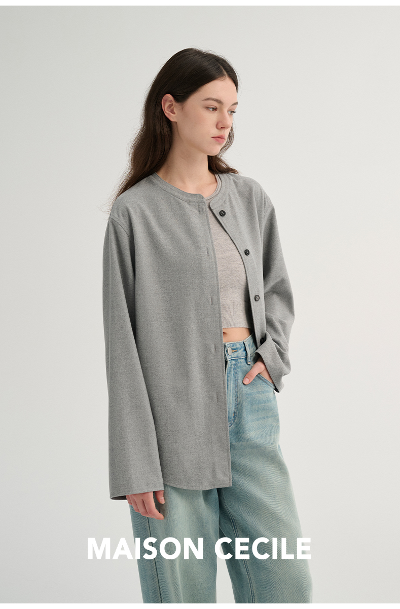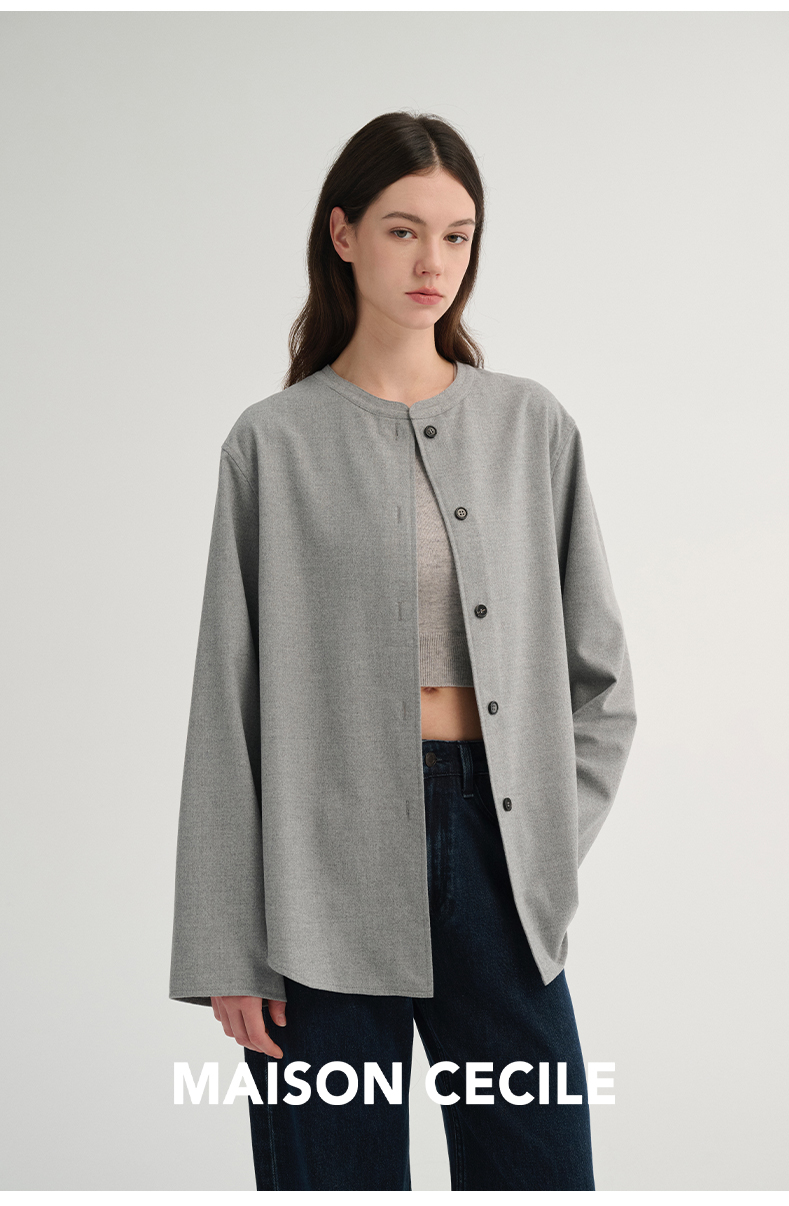 MAISON CECILE 复古羊毛软糯亲肤休闲通勤圆领随性风衬衫
