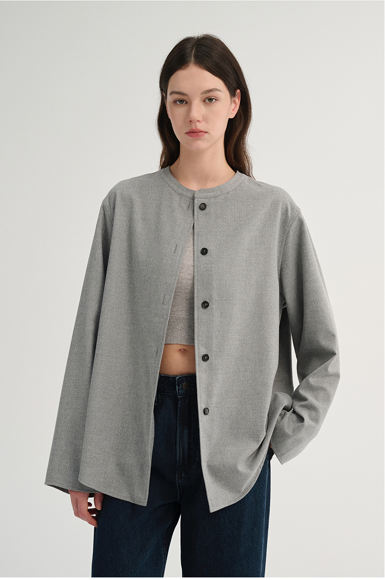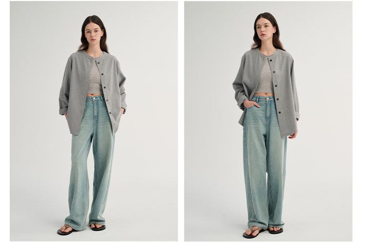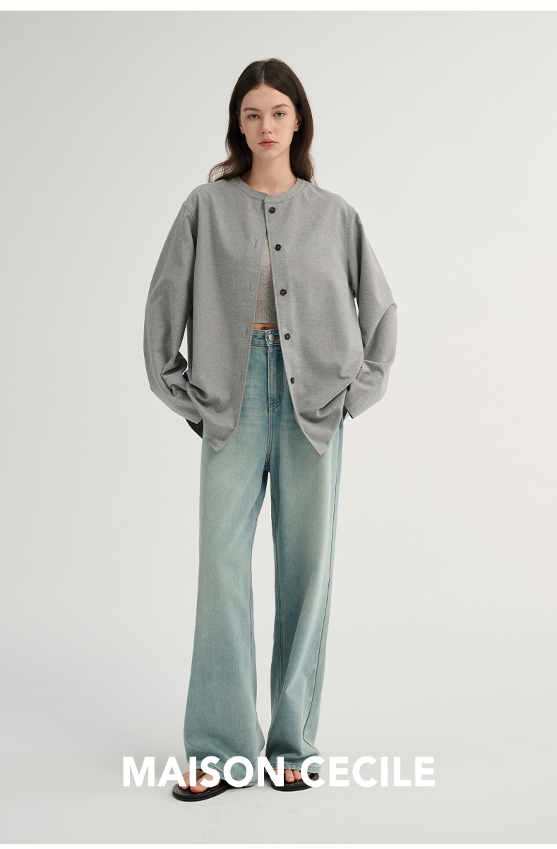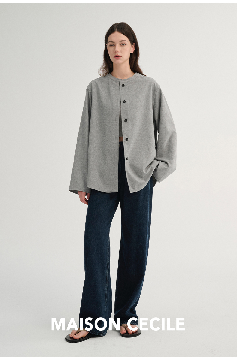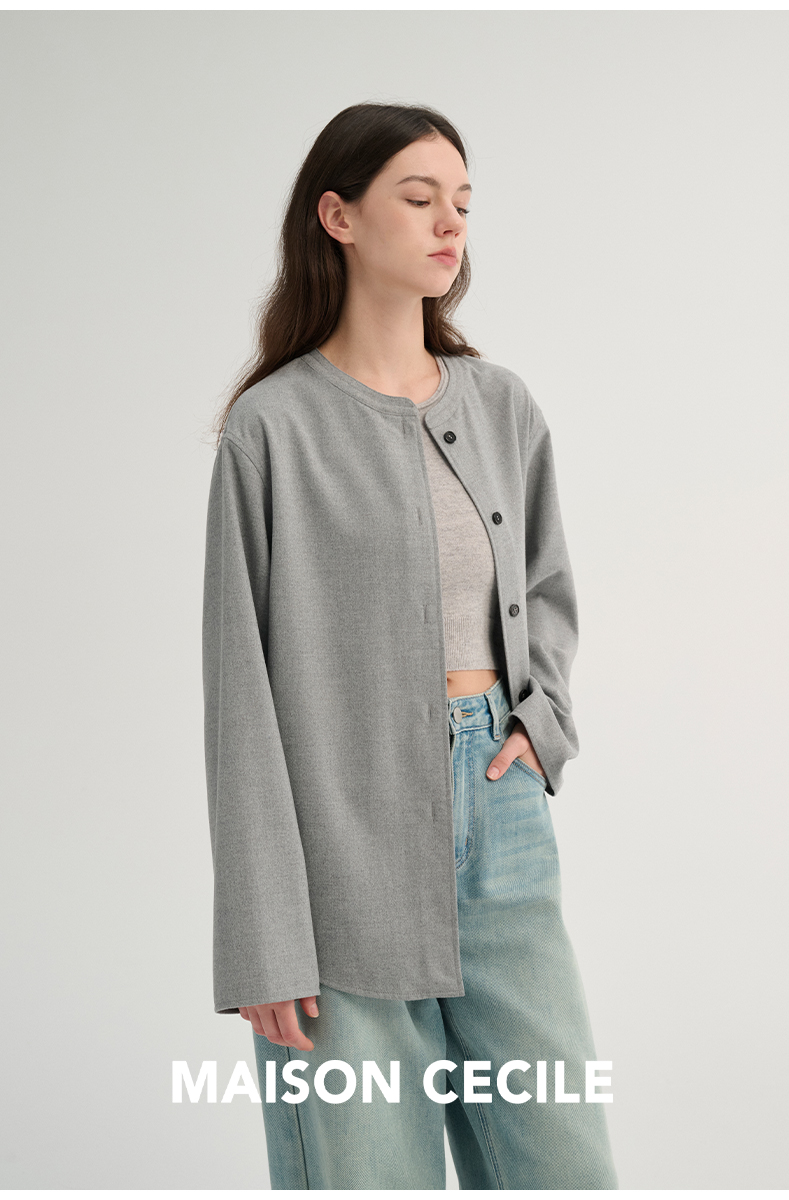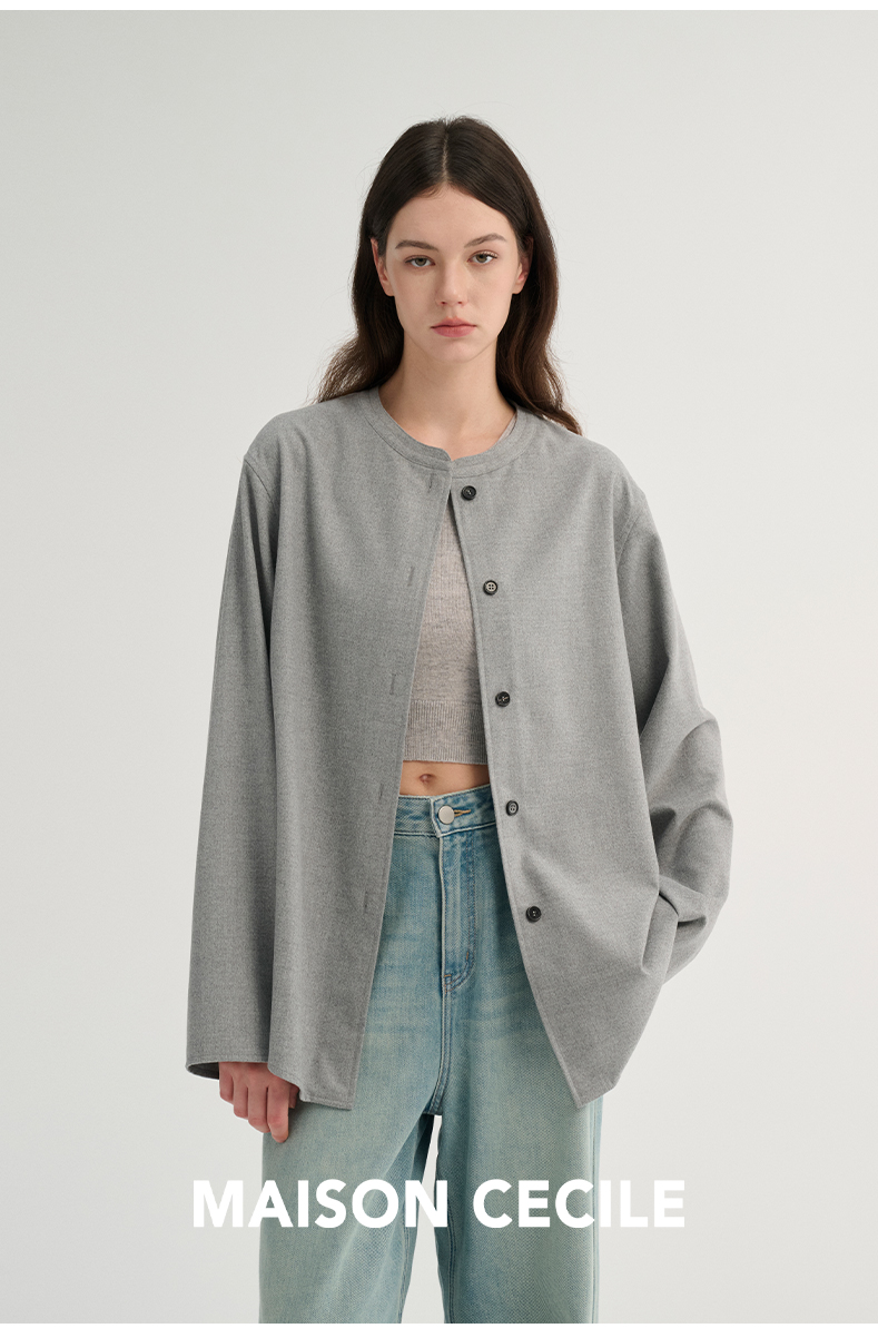MAISON CECILE 复古羊毛软糯亲肤休闲通勤圆领随性风衬衫