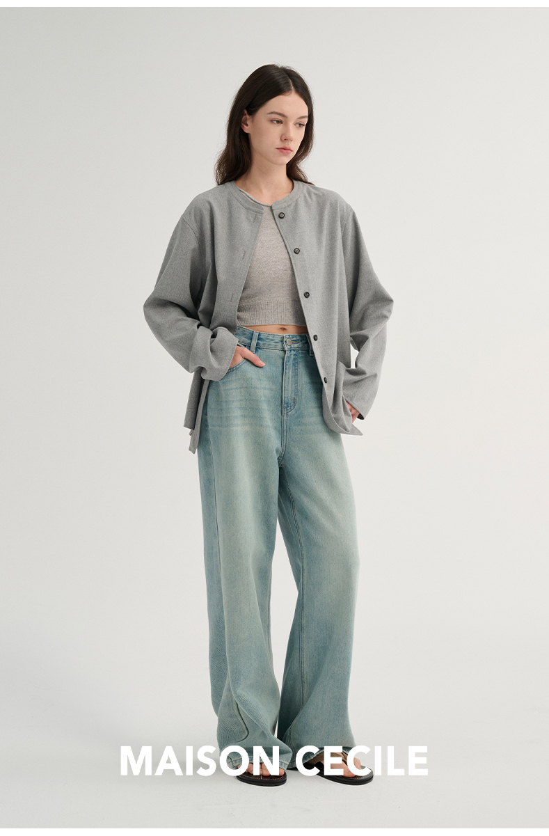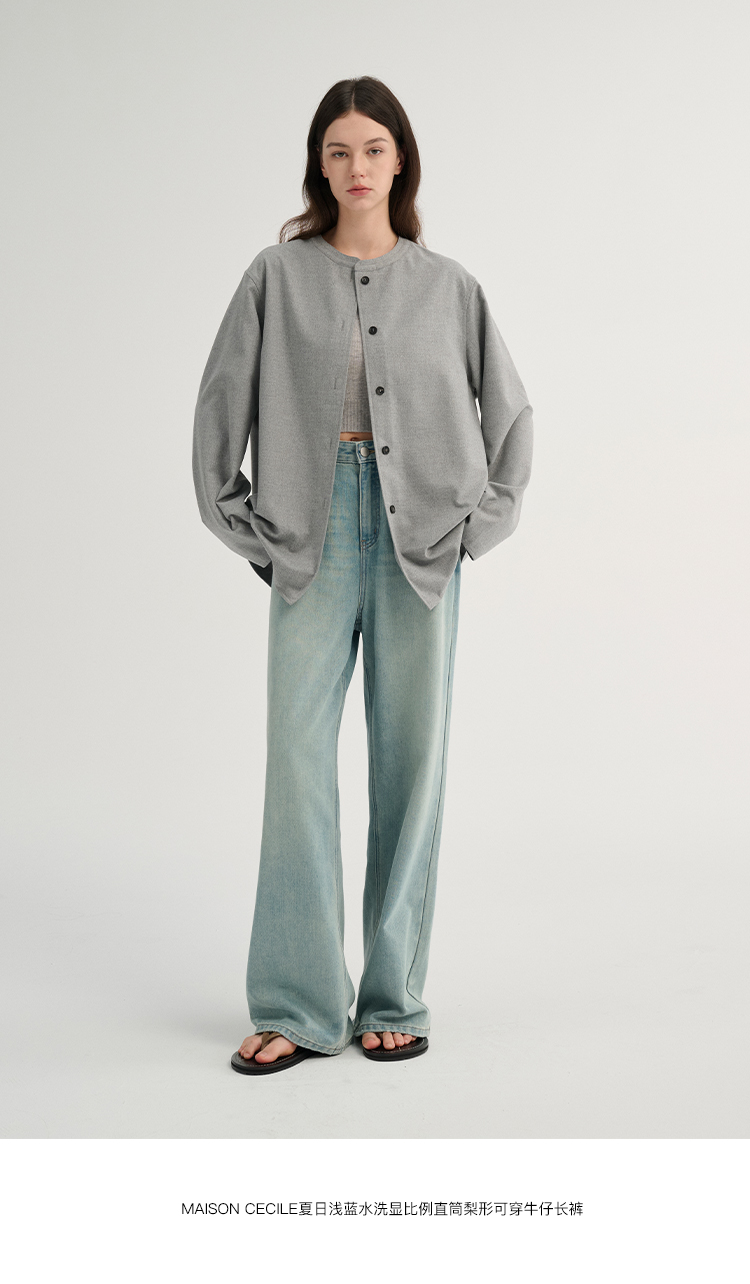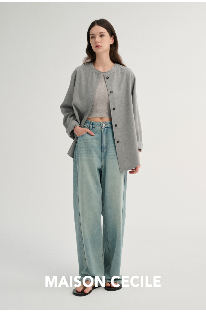MAISON CECILE雅痞街头风格阔腿牛仔高腰直筒裤