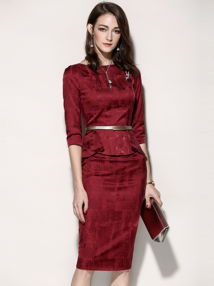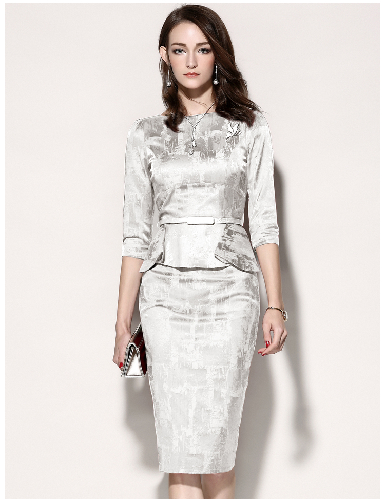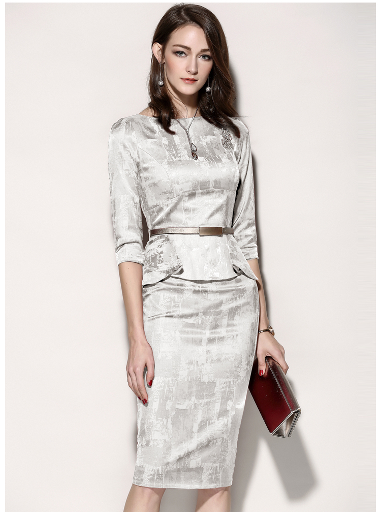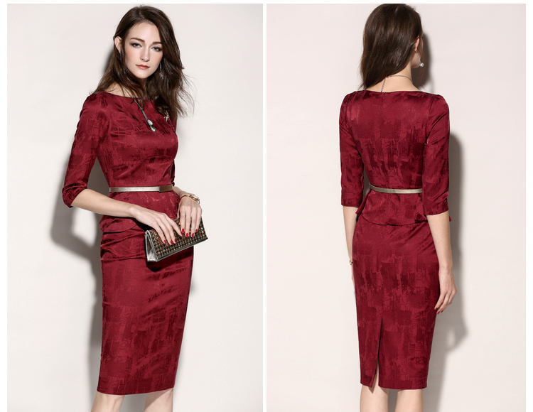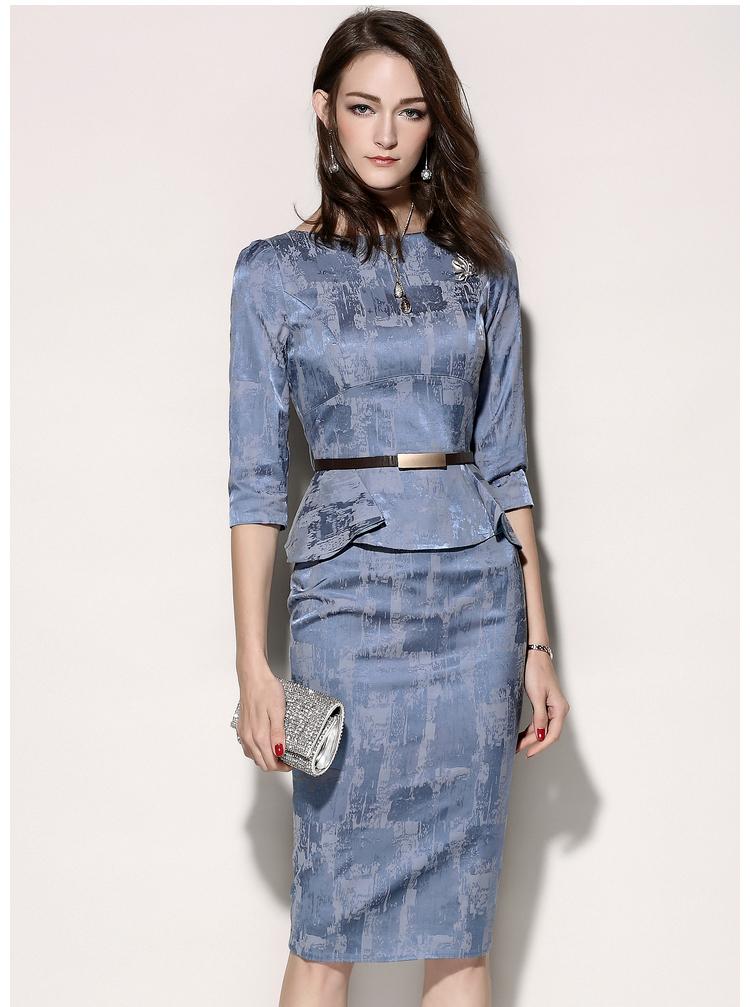 孤品 7381513颈袖添香秋季新款时尚五分袖职业装包臀裙修身显瘦女士连衣裙J7381513()不退可换