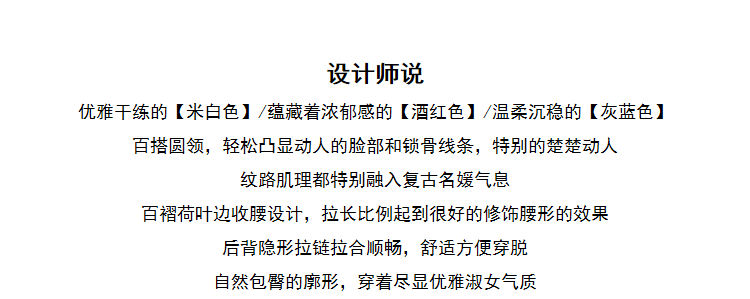 我们的产品:全网最具“质价比”的精英女装,只为有场合的“三高”女性打造,高知,高姿,高资。