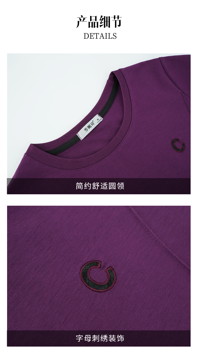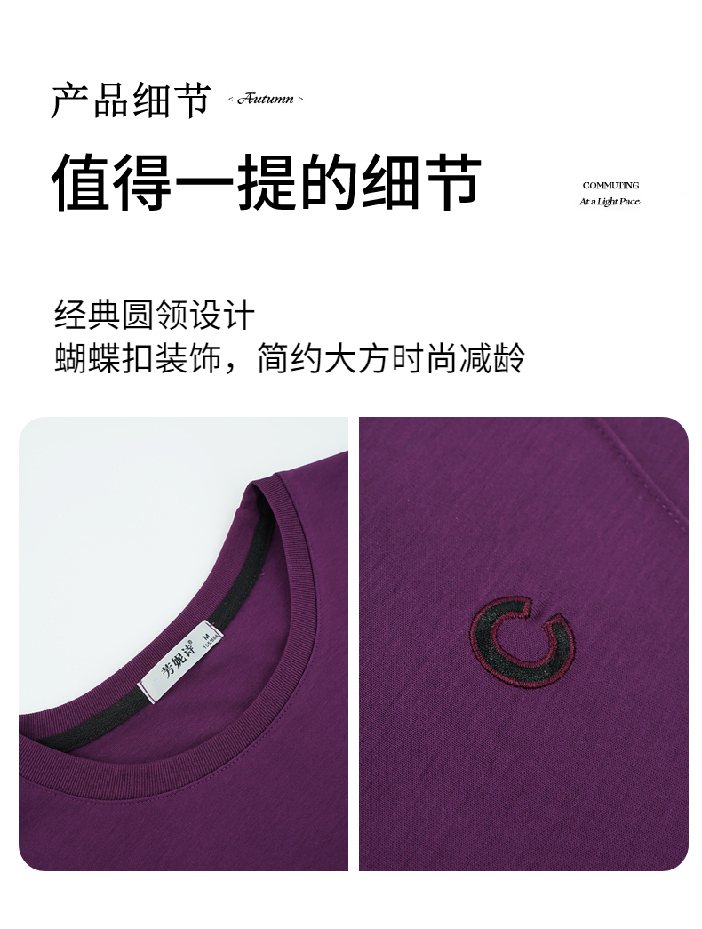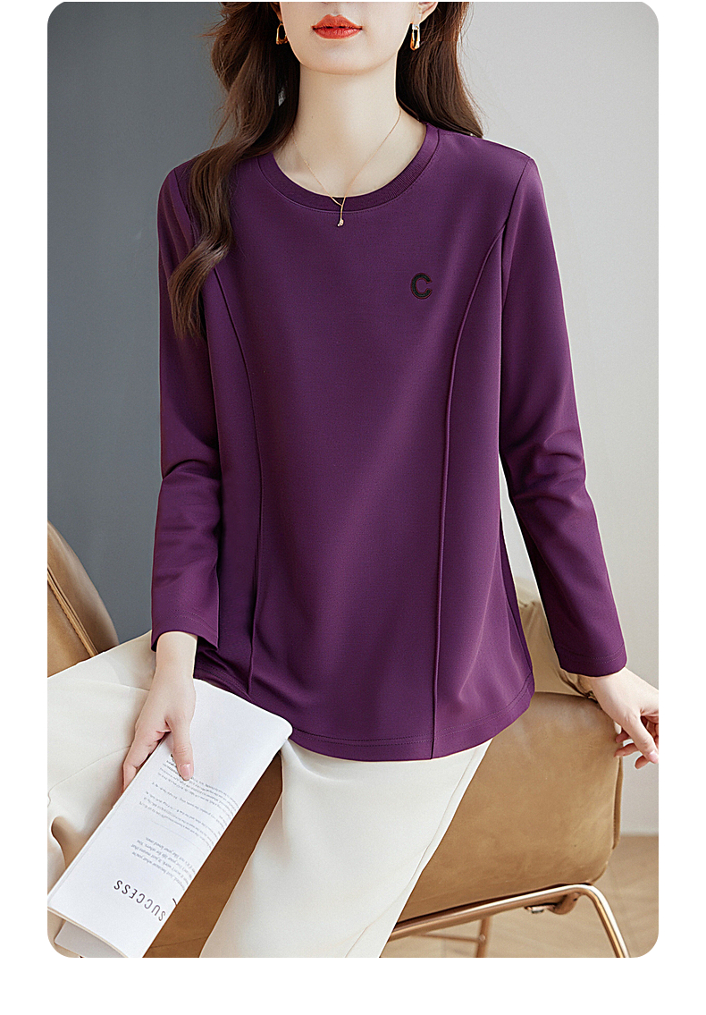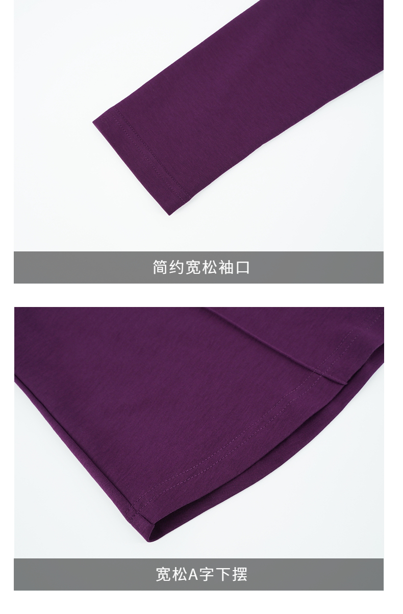 大码长袖T恤女士秋季新款薄款正肩紫色上衣遮肚子显瘦女装打底衫