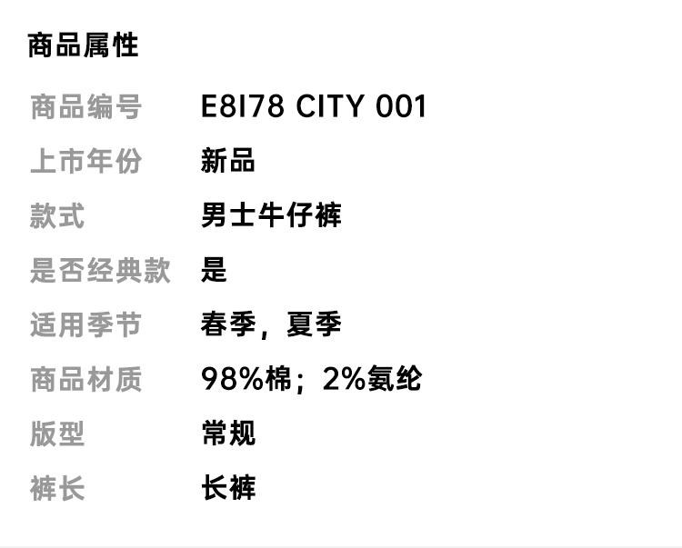 【二】ZEGNA 杰尼亚 男士弹力棉质 Roccia 休闲牛仔裤 深蓝色 E8I78 CITY 001
