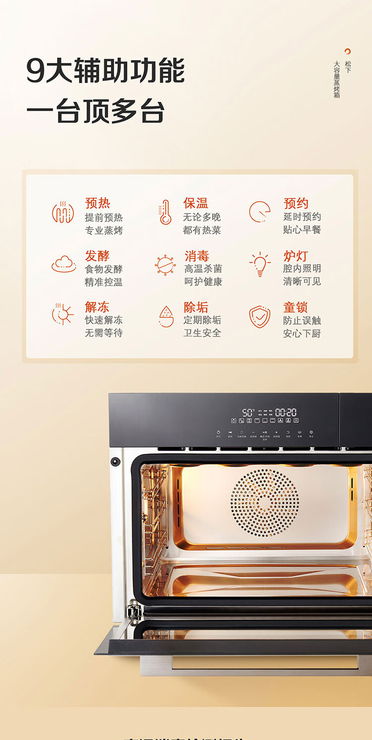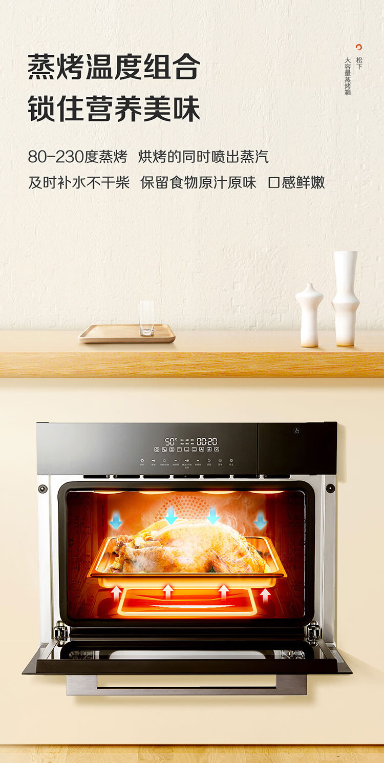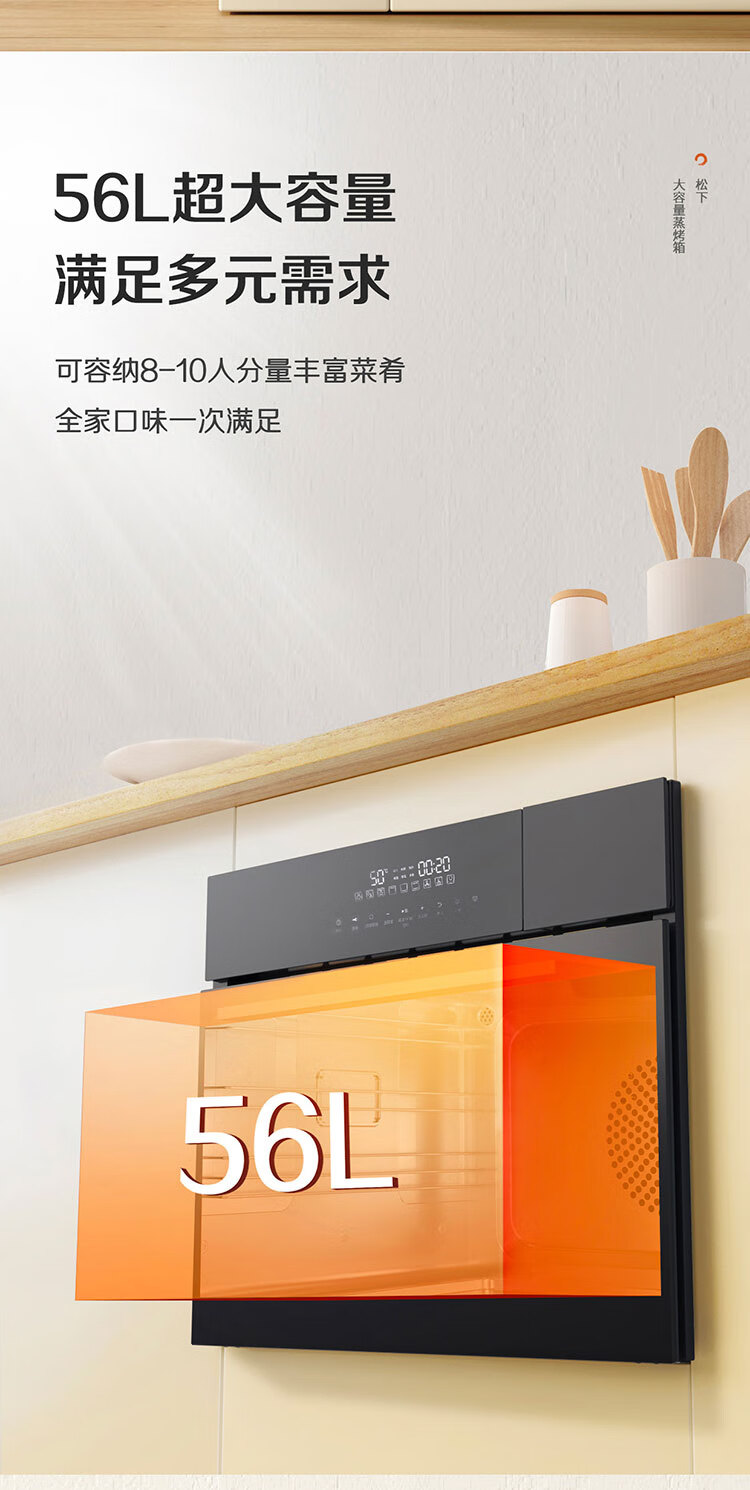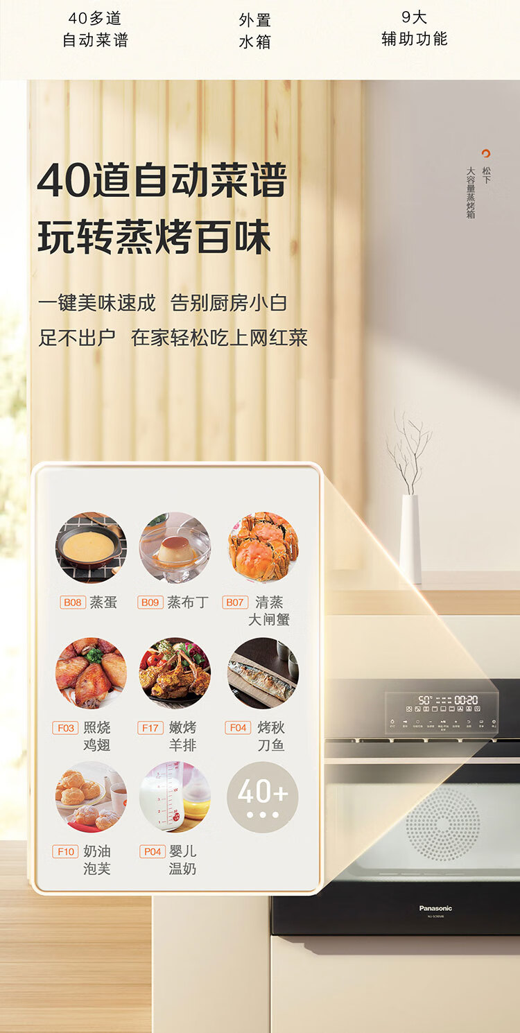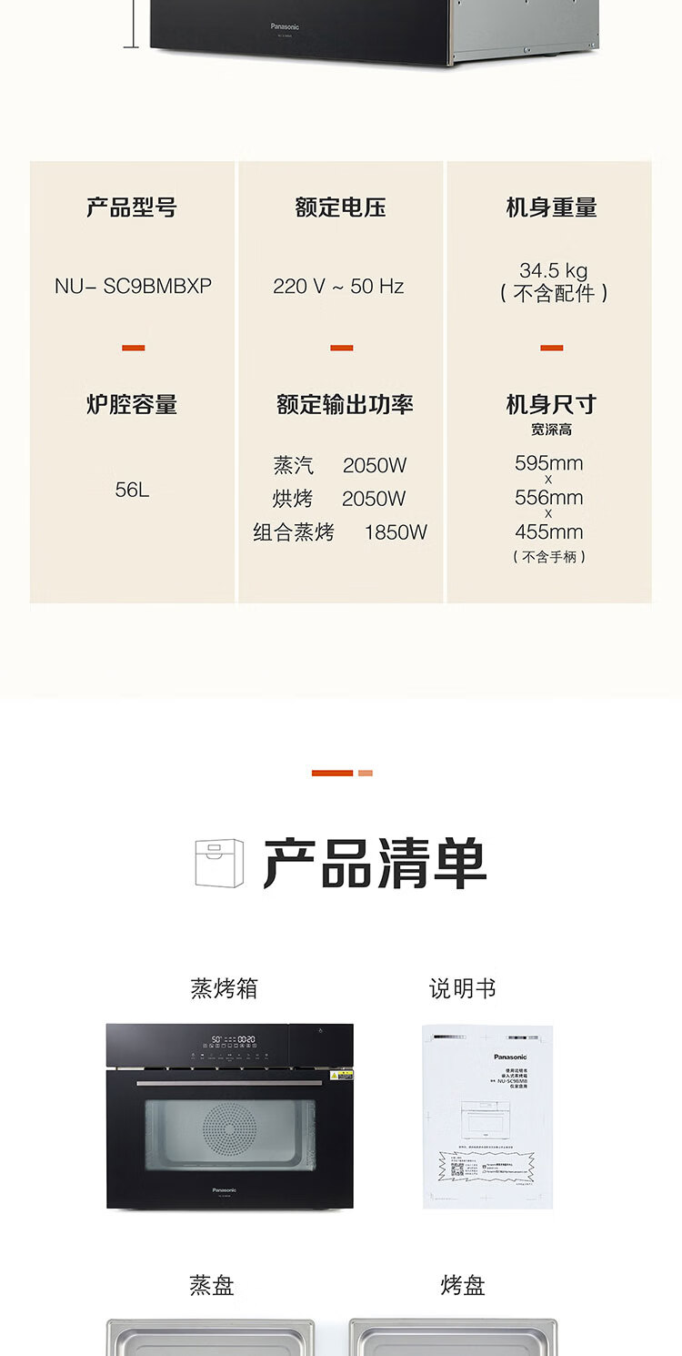 松下(Panasonic)嵌入式56L大容量蒸烤一体机多功能家用蒸烤箱外置水箱自动菜单延时预约NU-SC9BMBXPE 嵌入式蒸烤一体机SC9B(56L)