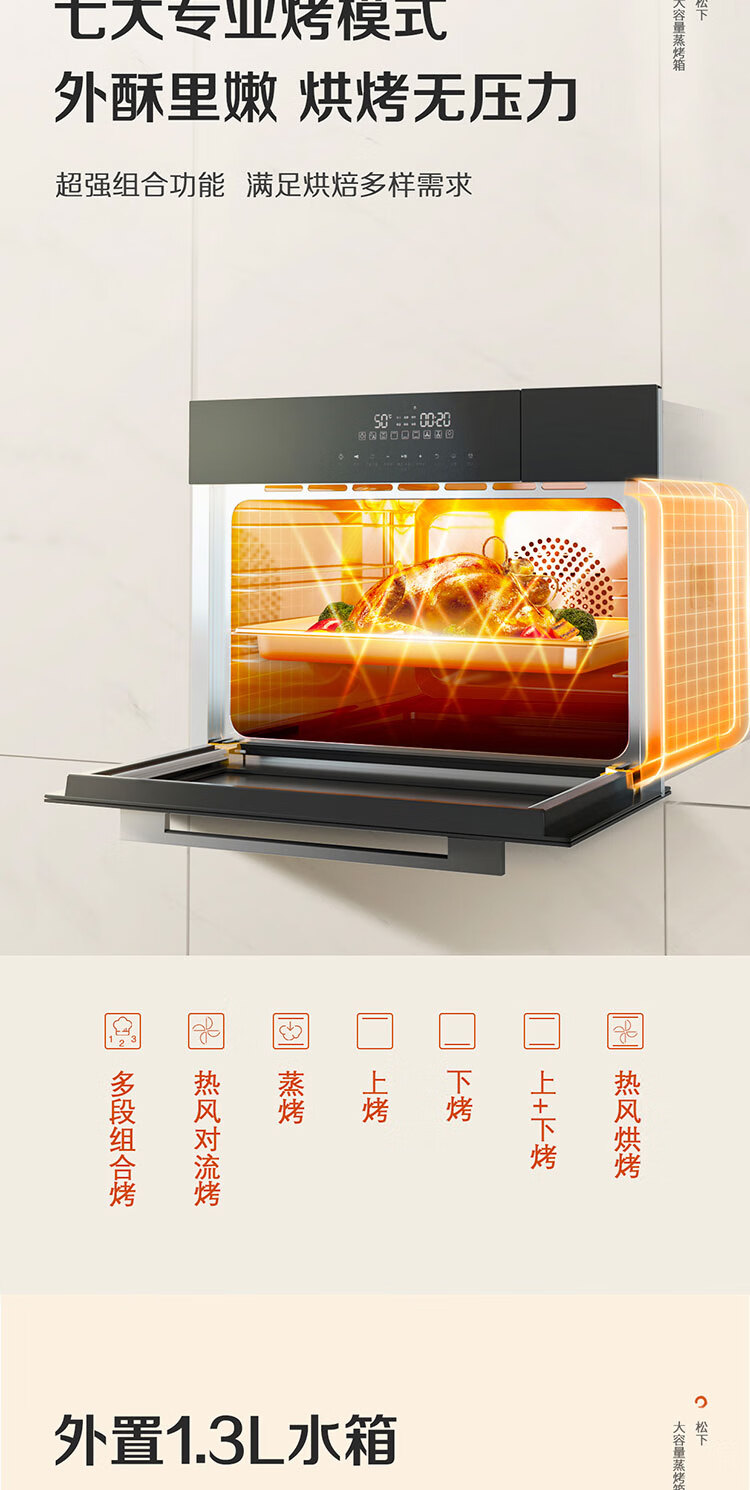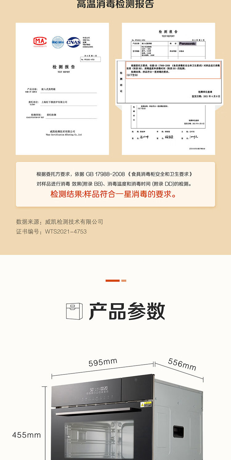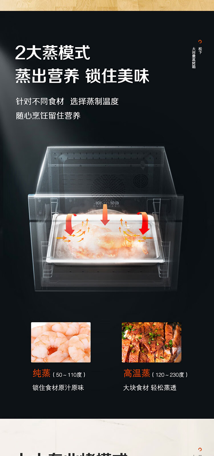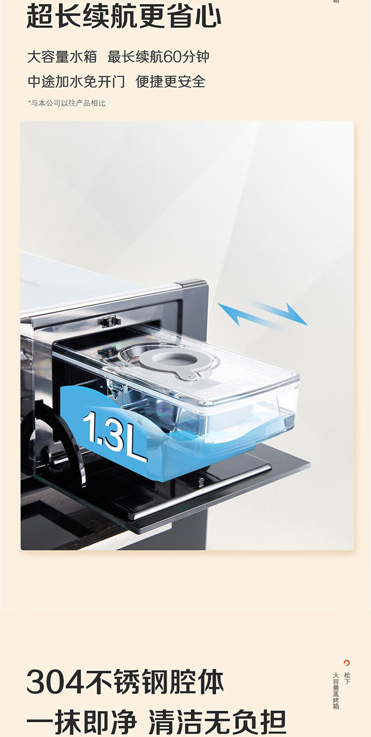 松下(Panasonic)嵌入式56L大容量蒸烤一体机多功能家用蒸烤箱外置水箱自动菜单延时预约NU-SC9BMBXPE 嵌入式蒸烤一体机SC9B(56L)