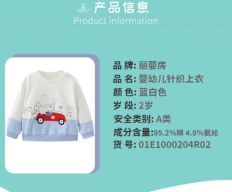 丽婴房-童衣类(春)E1上衣\背心式上衣中蓝\湖蓝