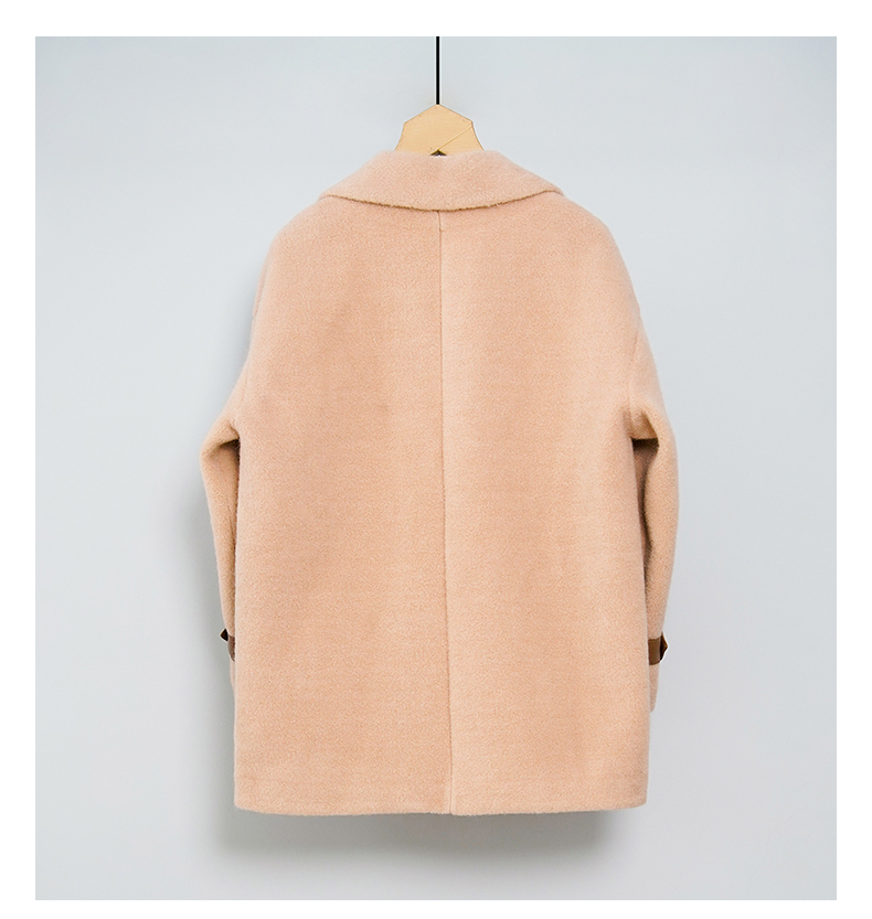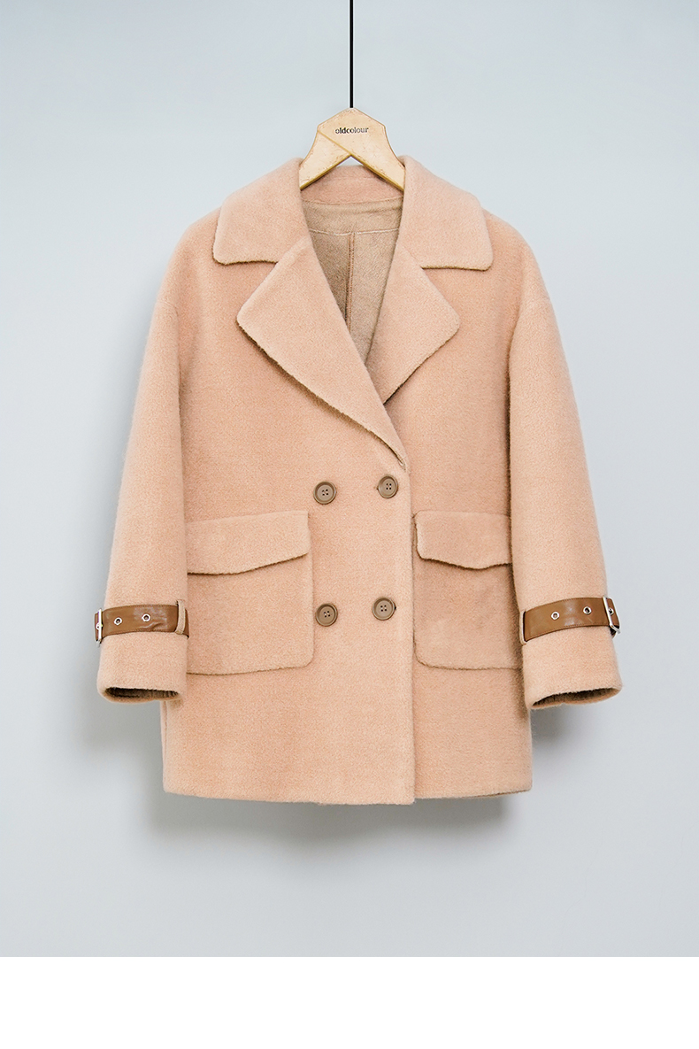 oldcolour冬款大衣复古卡其色毛绒短外套女DM46041063
