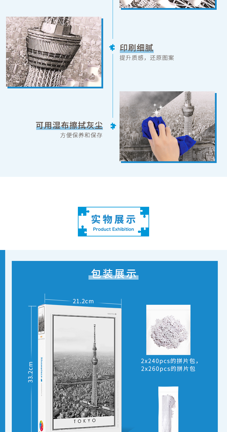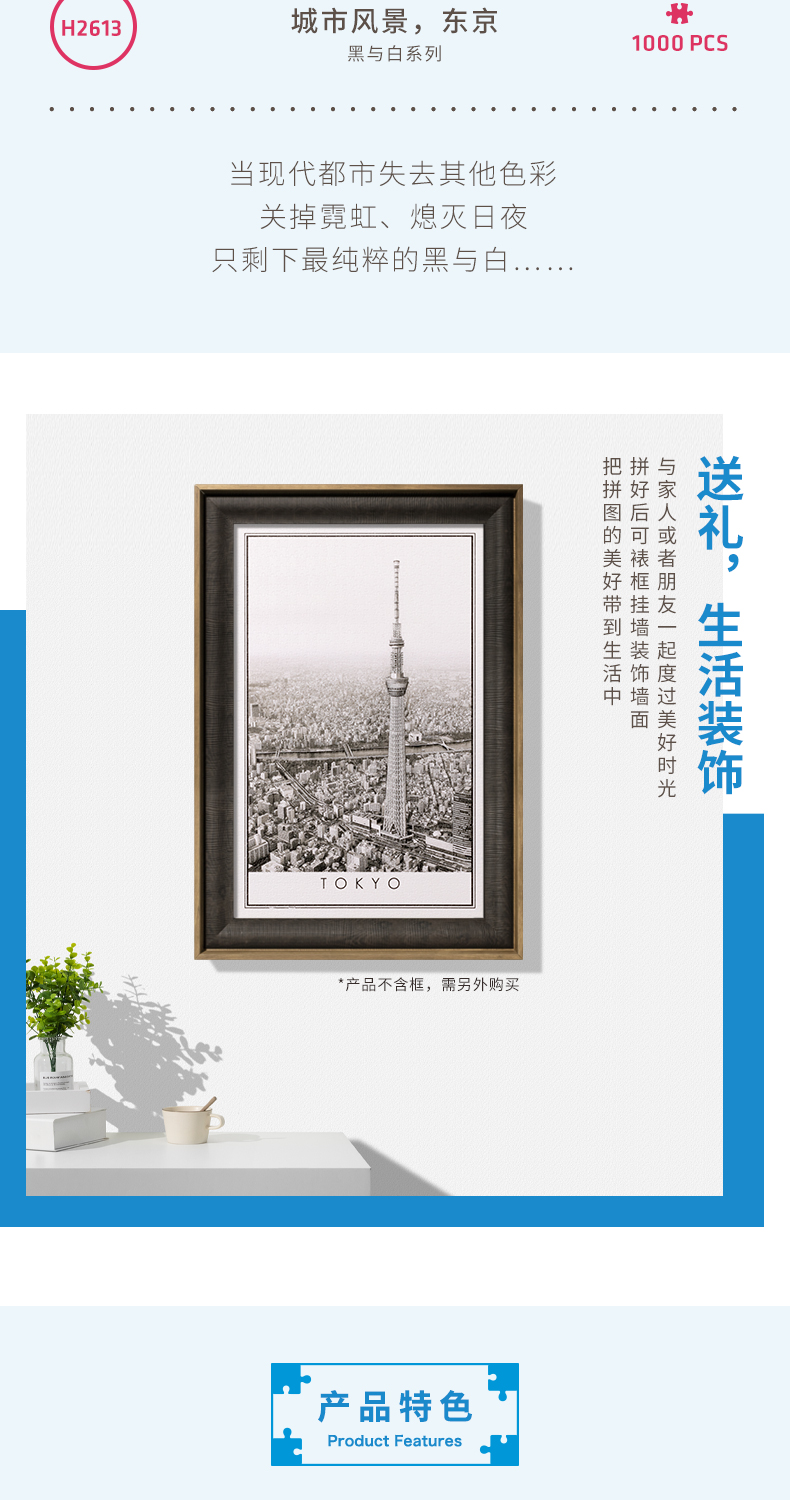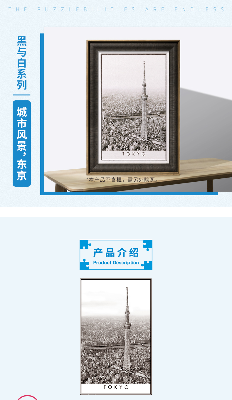 【折扣商品 不退不换】1000片平面拼图 塑料拼图 H2613 黑与白系列-城市风景,东京