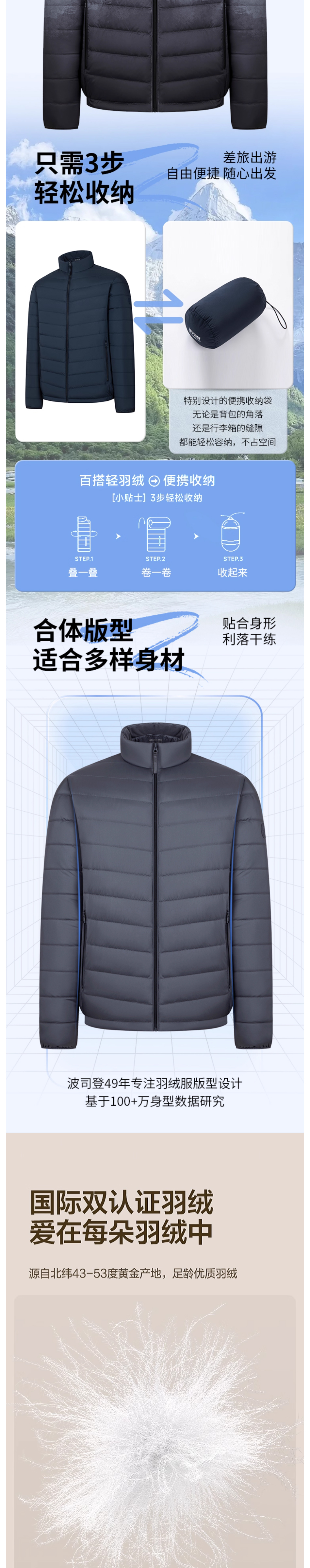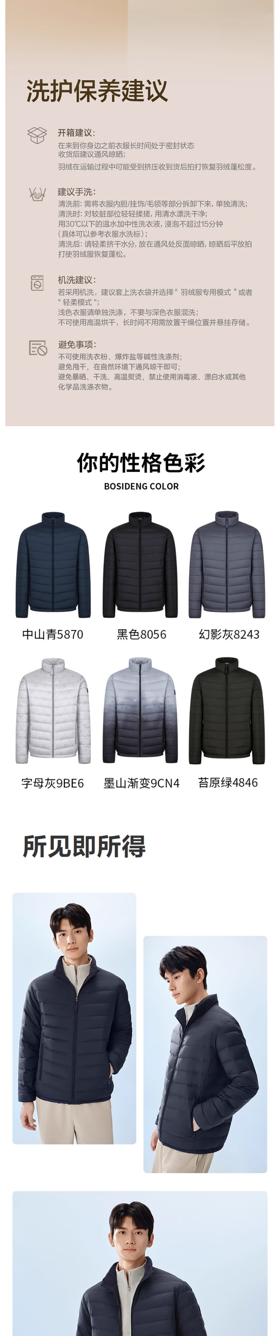 波司登2025新款秋季短款立领轻薄款排骨羽绒服男士外套B250131005