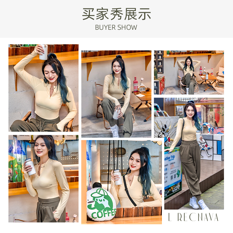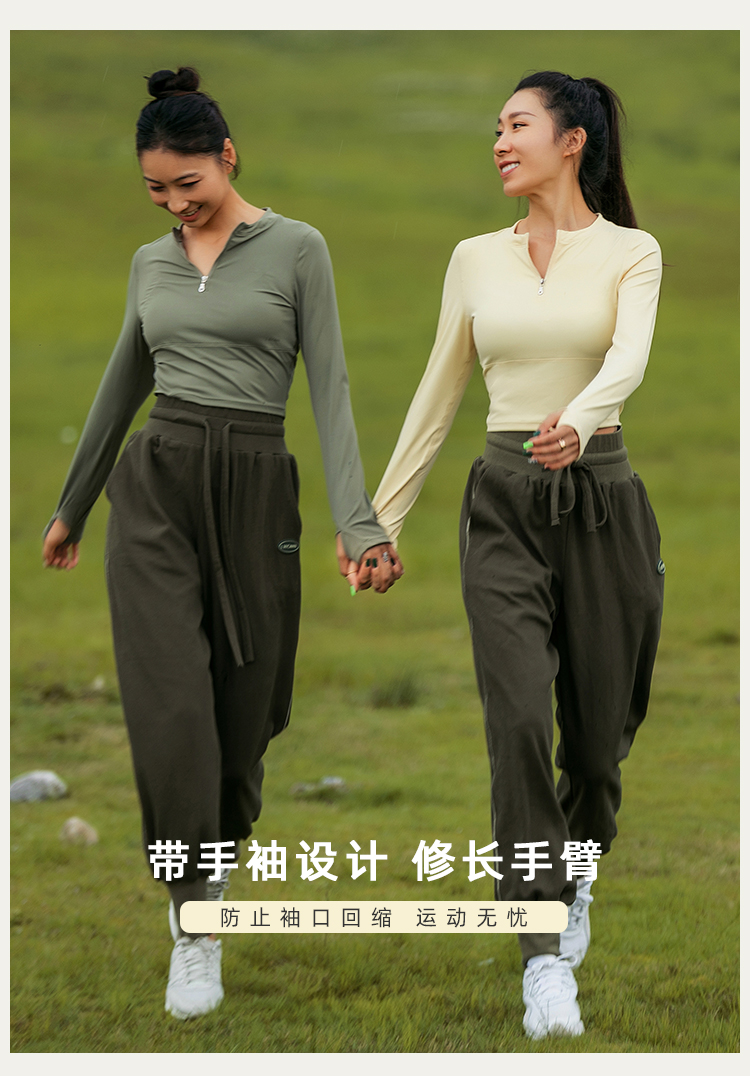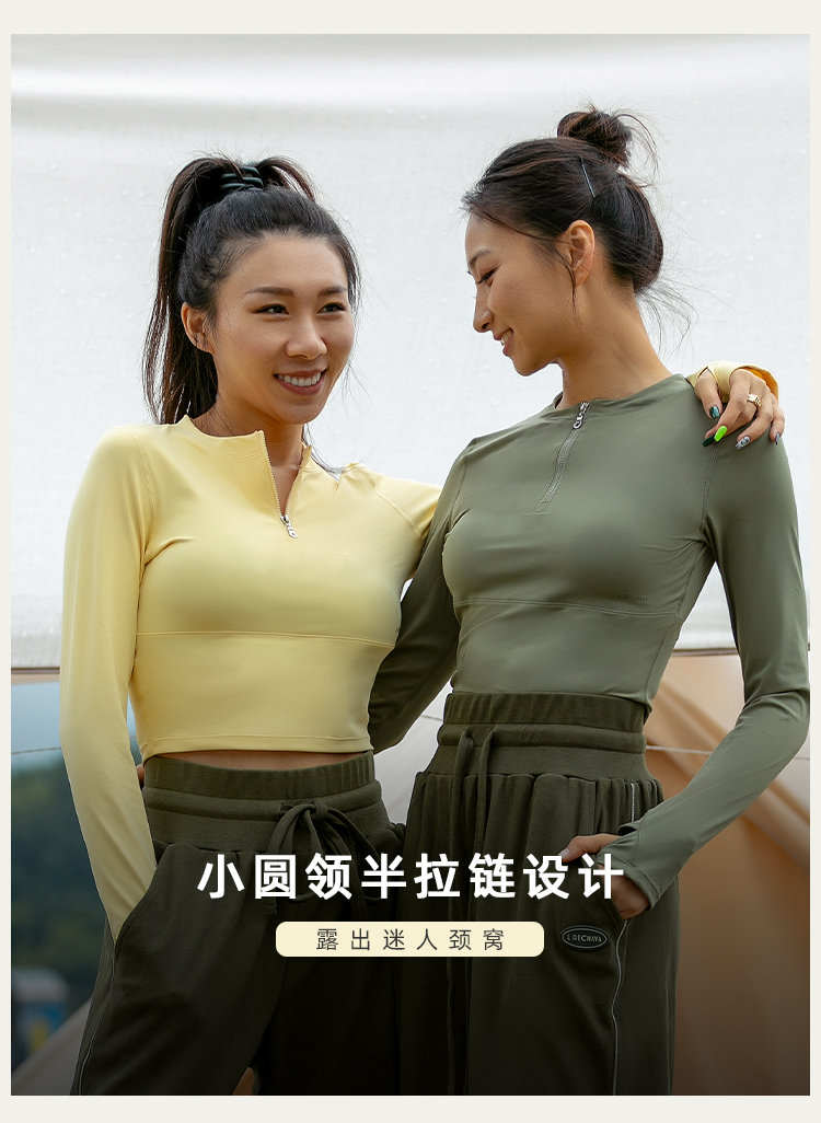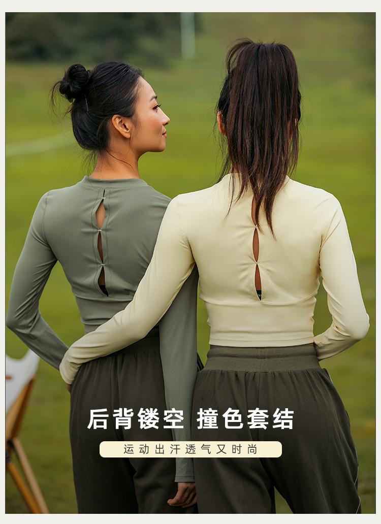 【裸感高弹】半拉链后镂空长袖上衣-不带胸垫