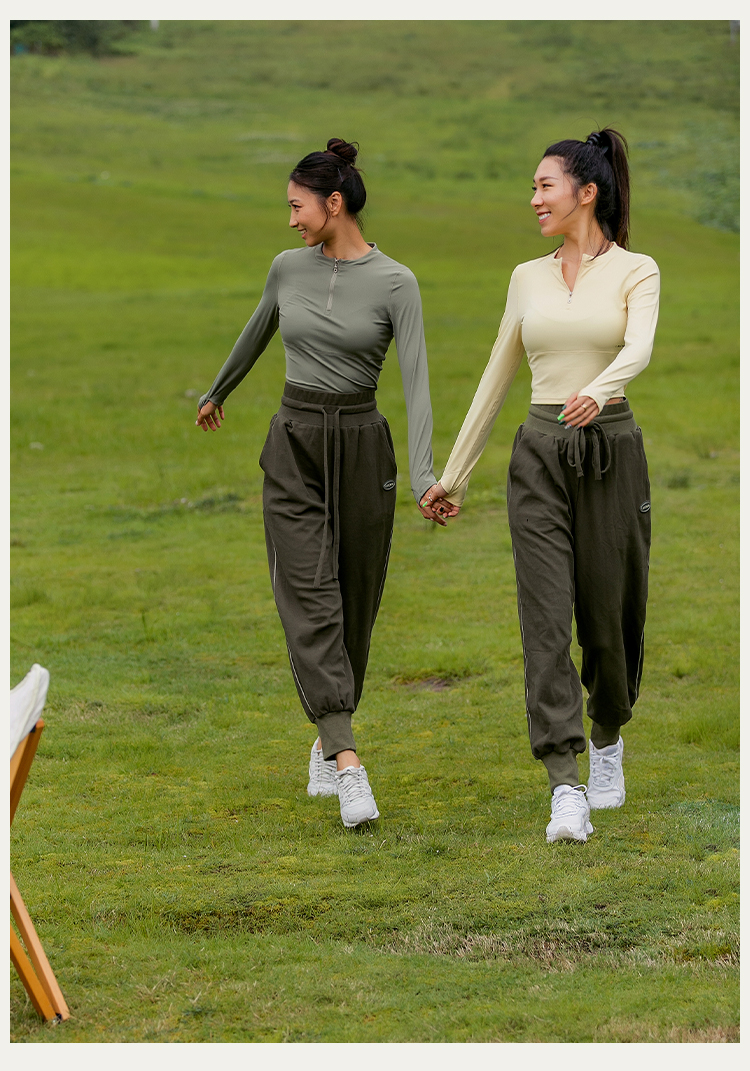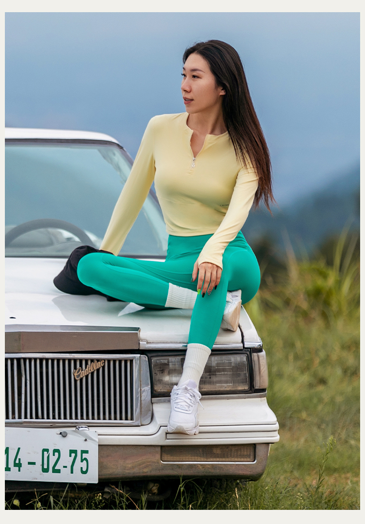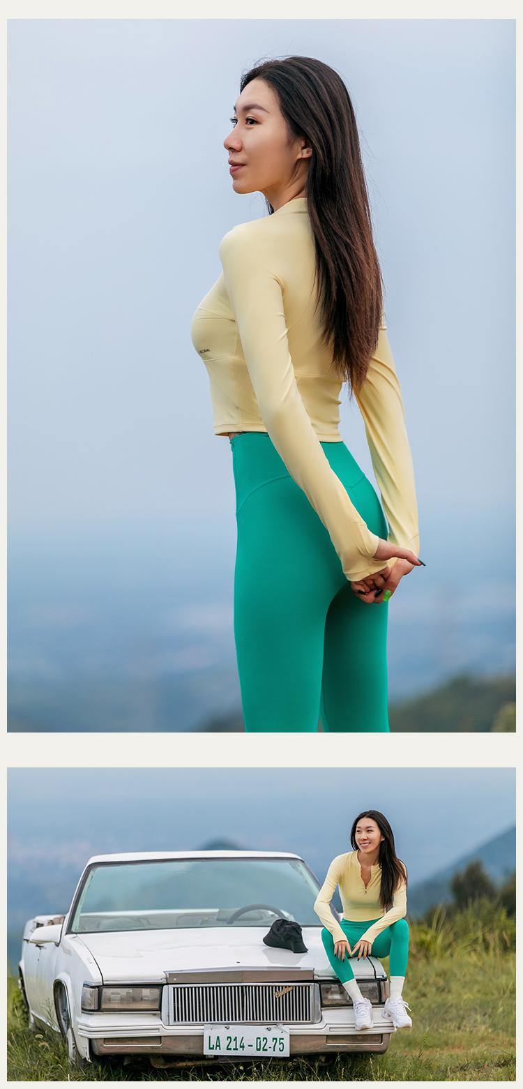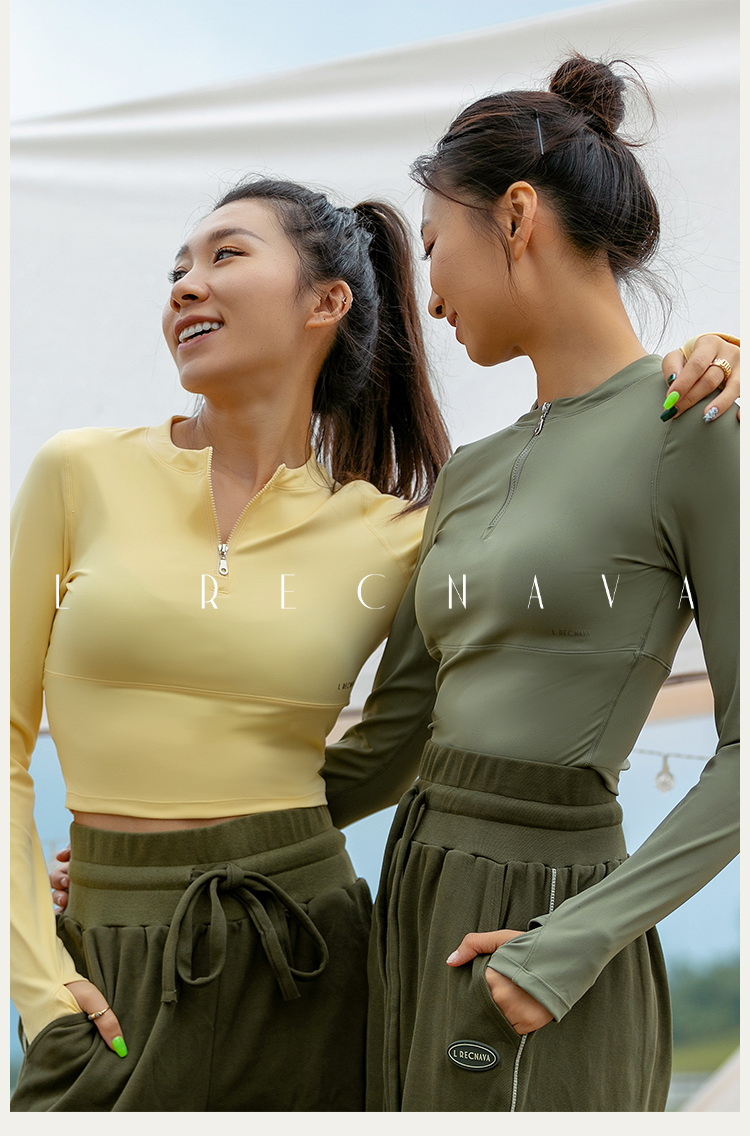 【裸感高弹】半拉链后镂空长袖上衣-不带胸垫