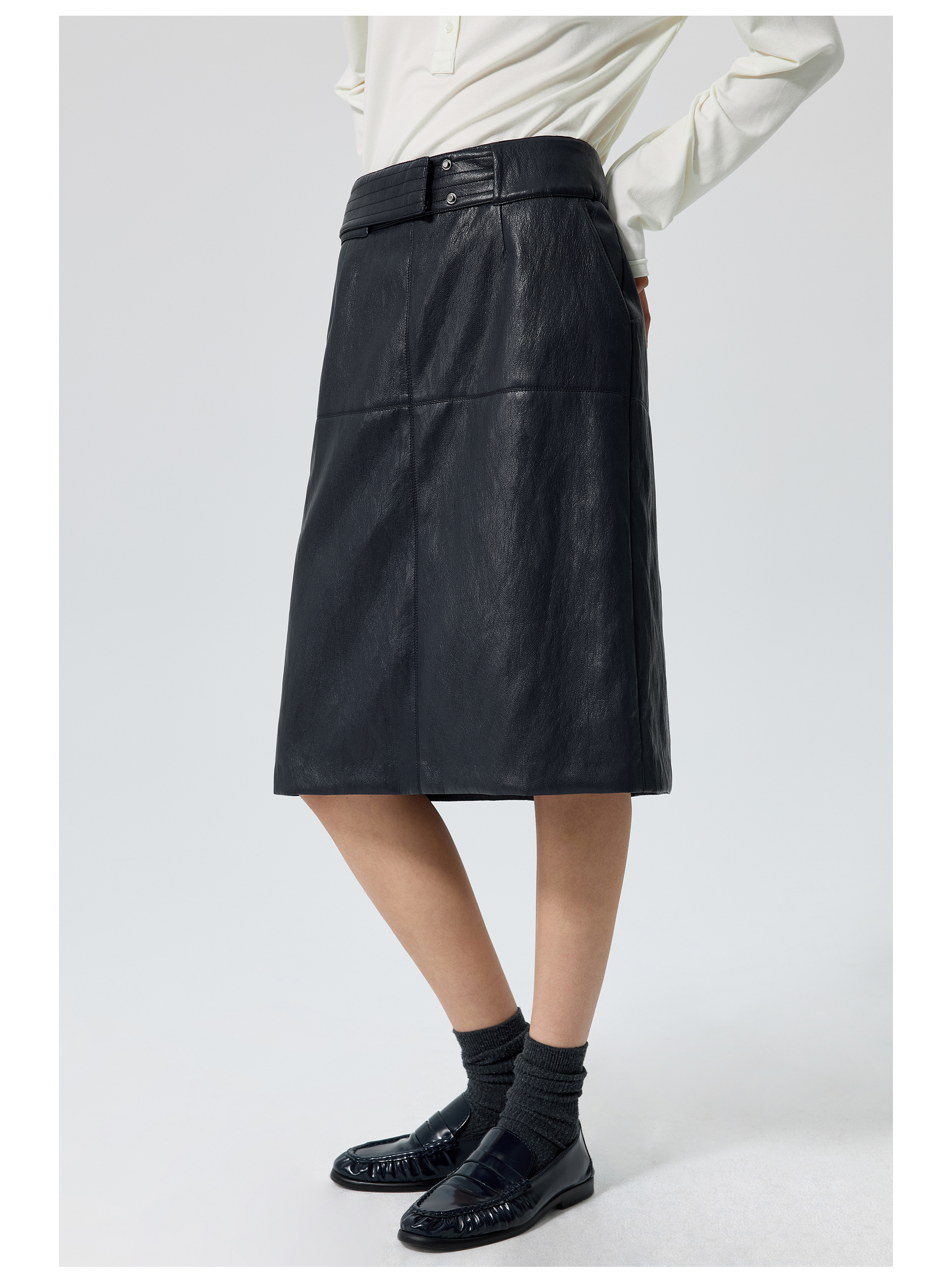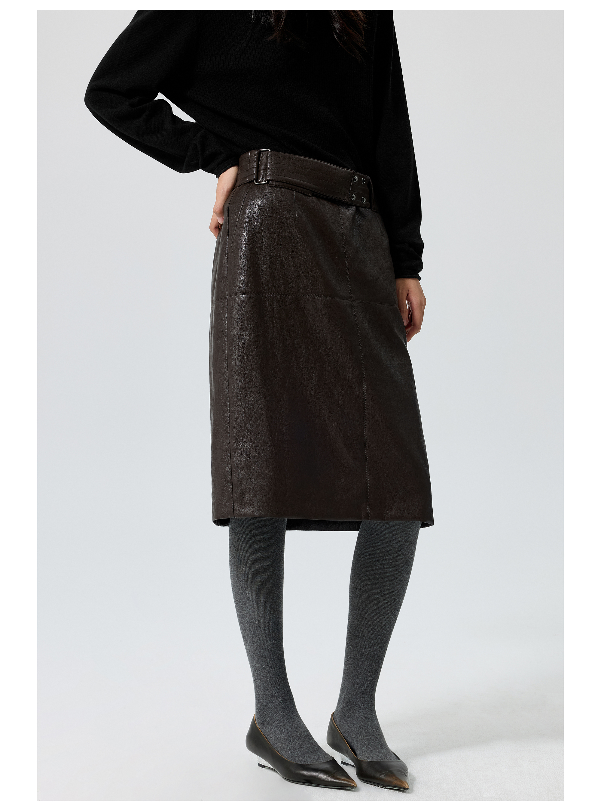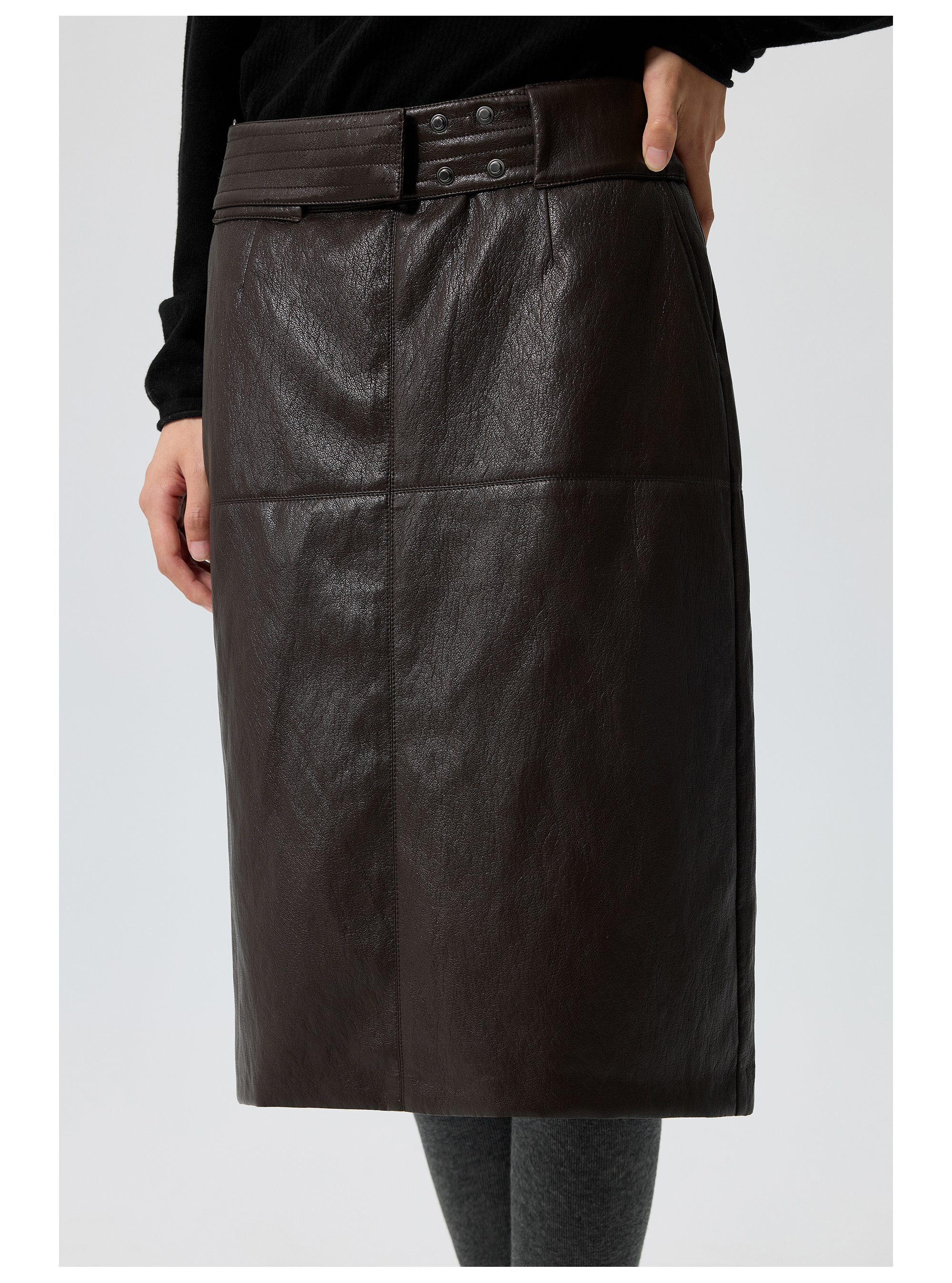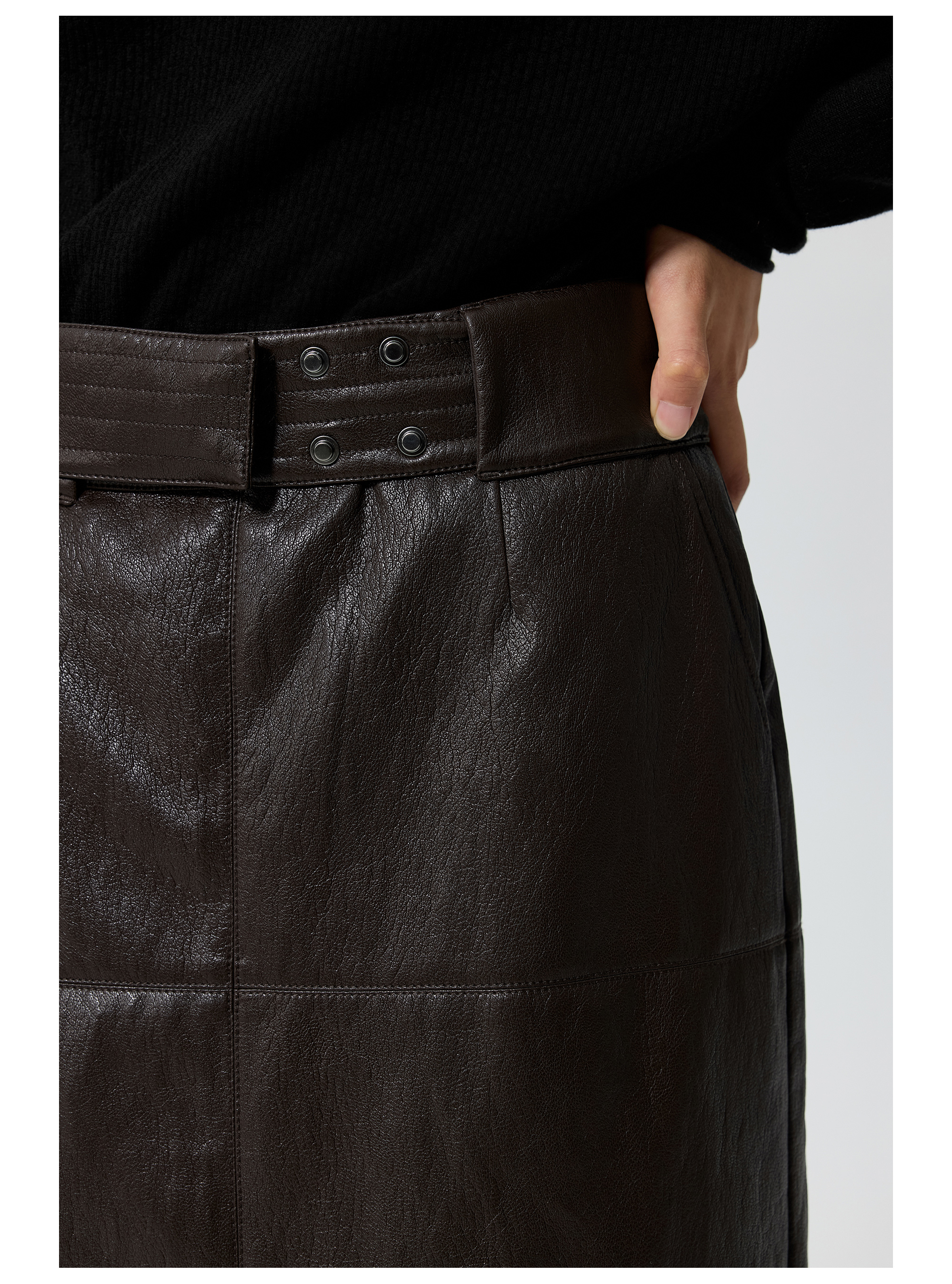 Simple Projetc/K25258/宽腰带金属丝皮裙
