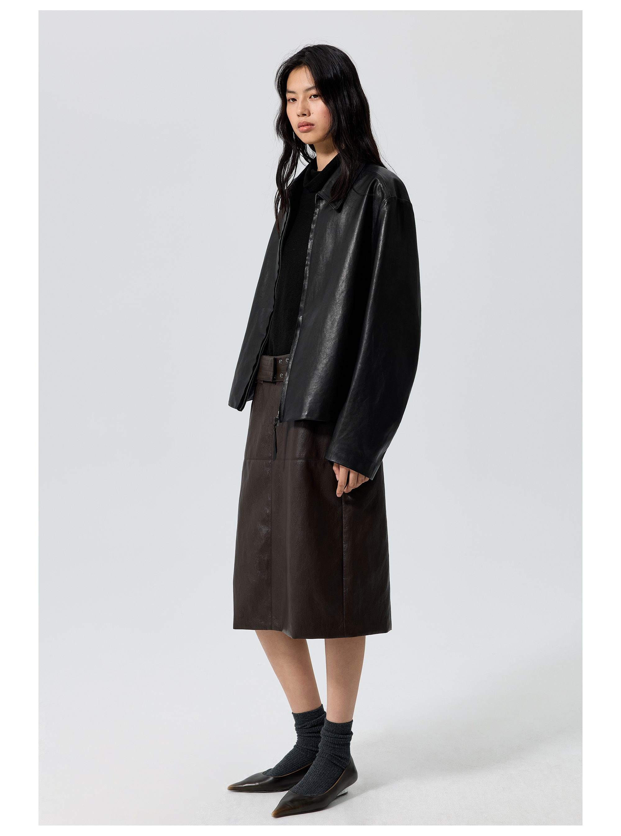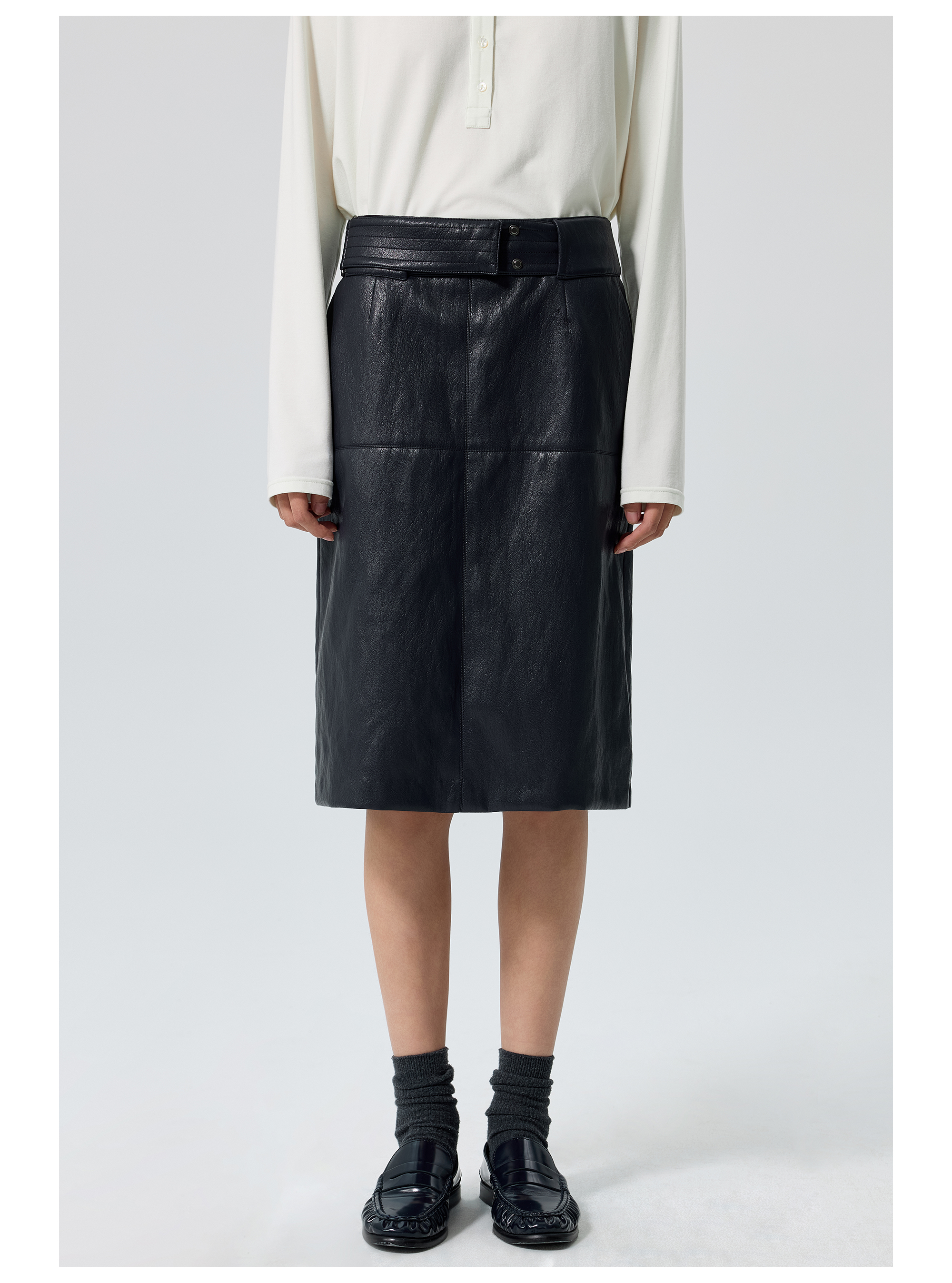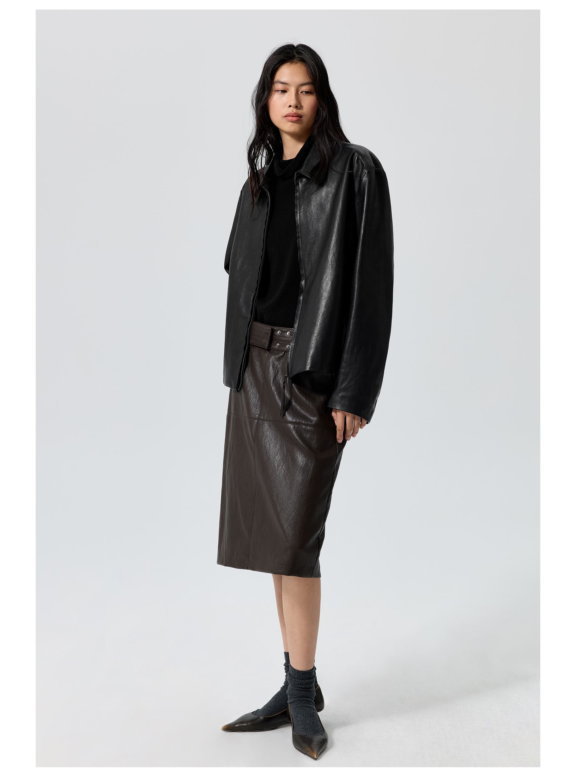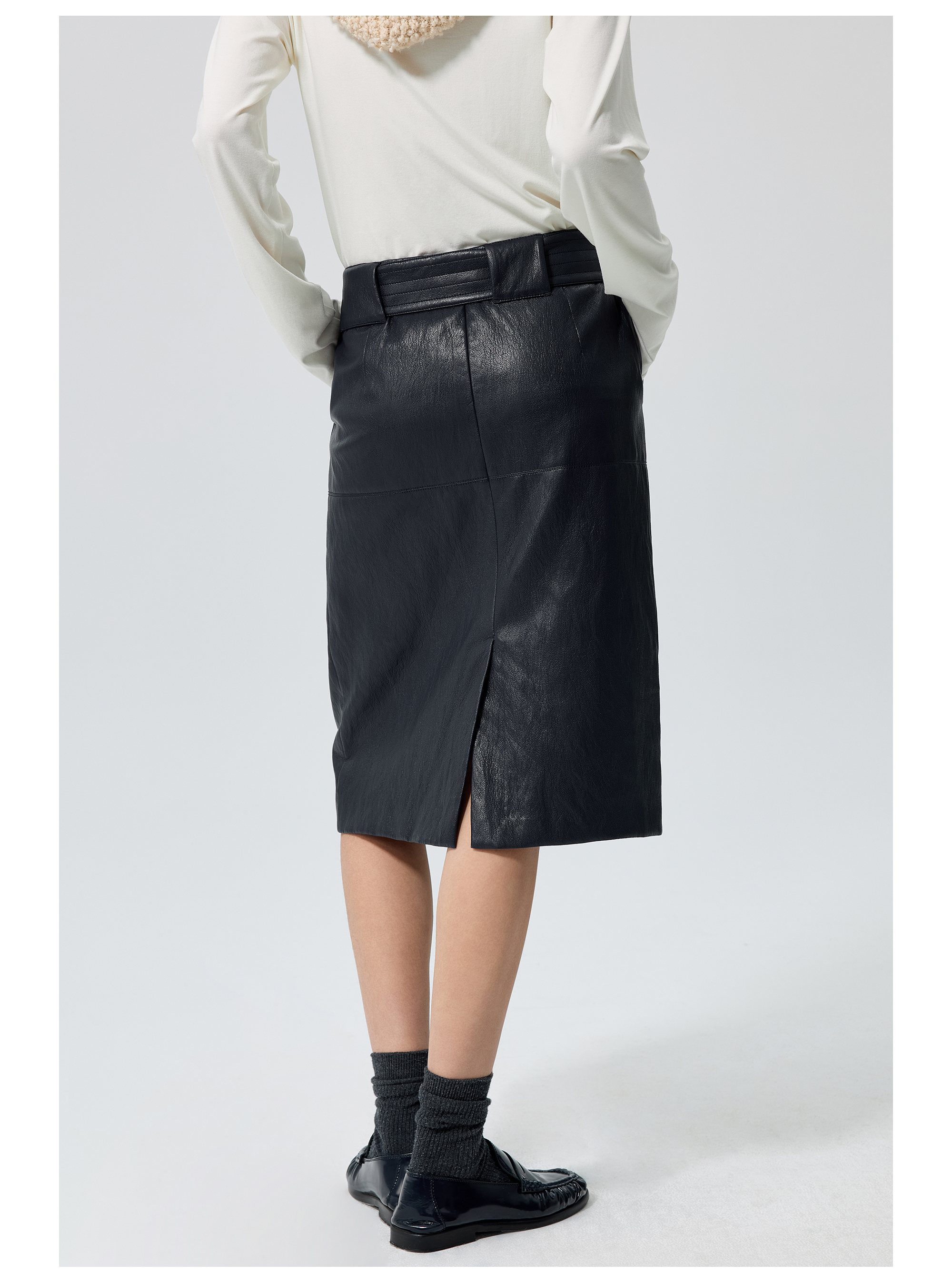 Simple Projetc/K25258/宽腰带金属丝皮裙