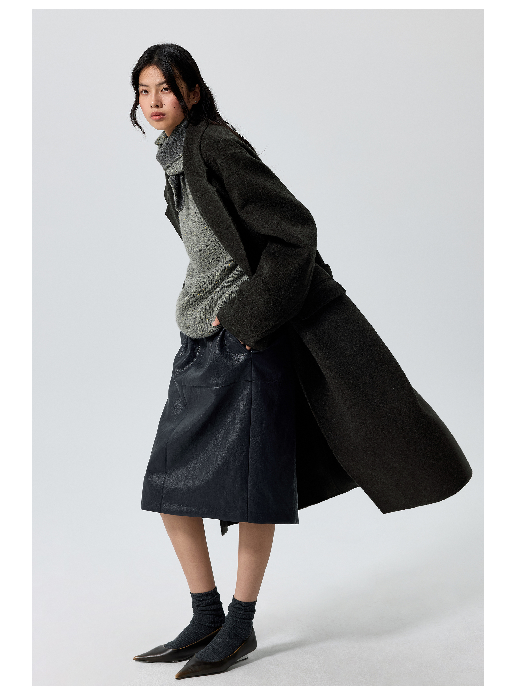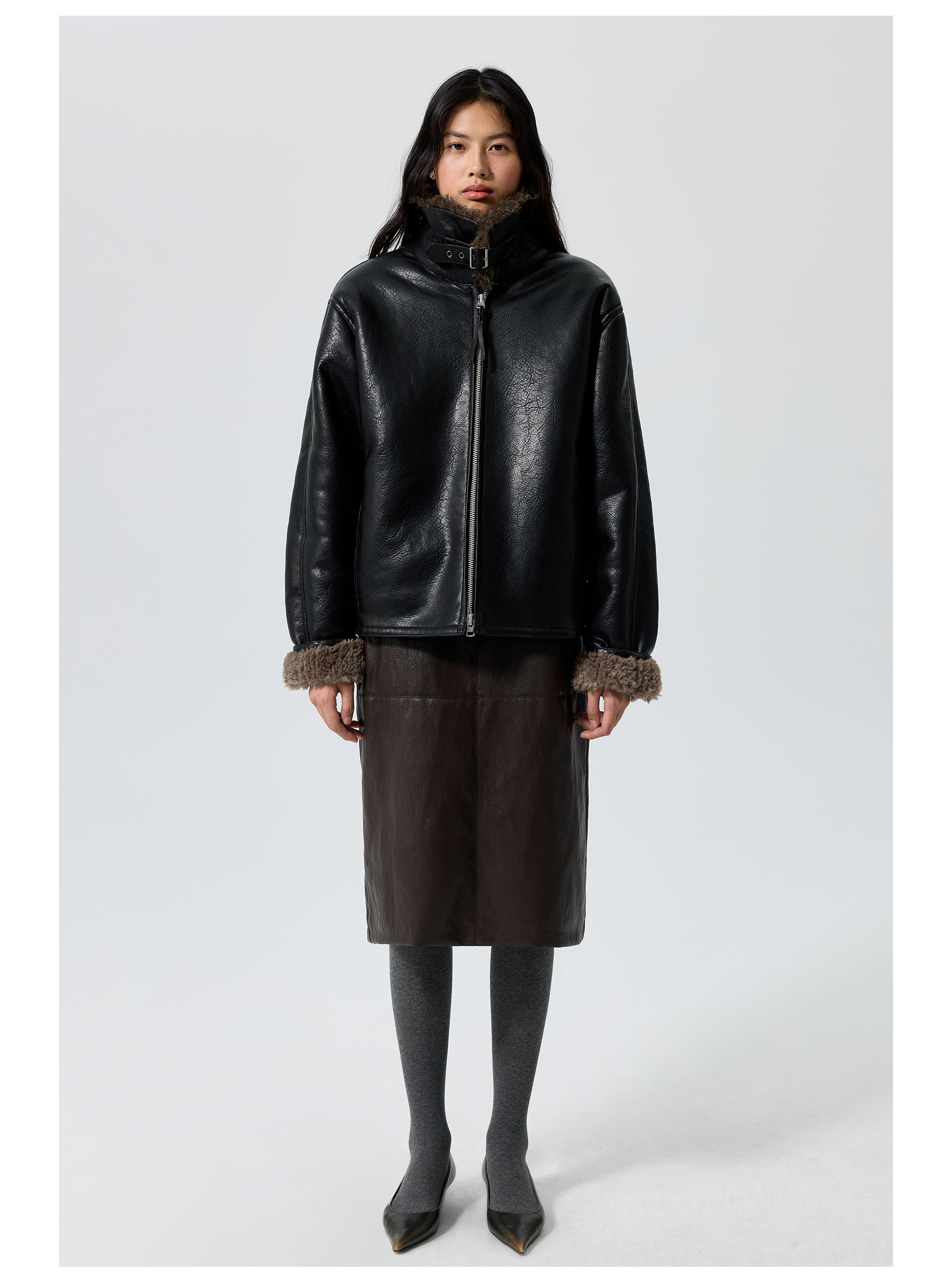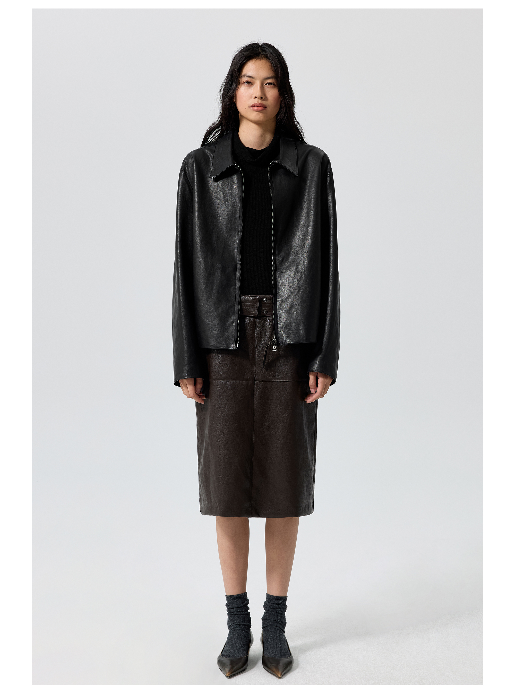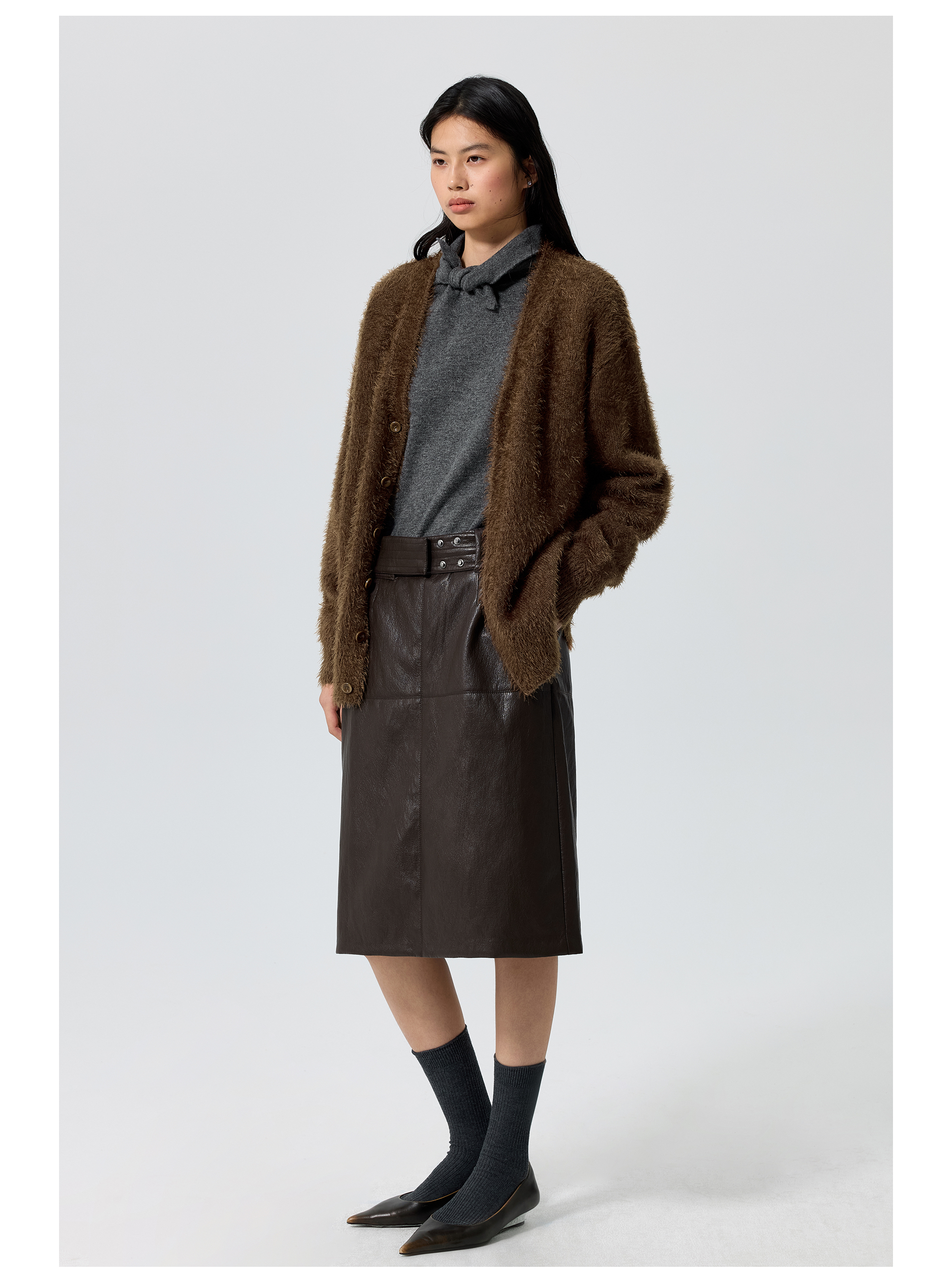 Simple Projetc/K25258/宽腰带金属丝皮裙