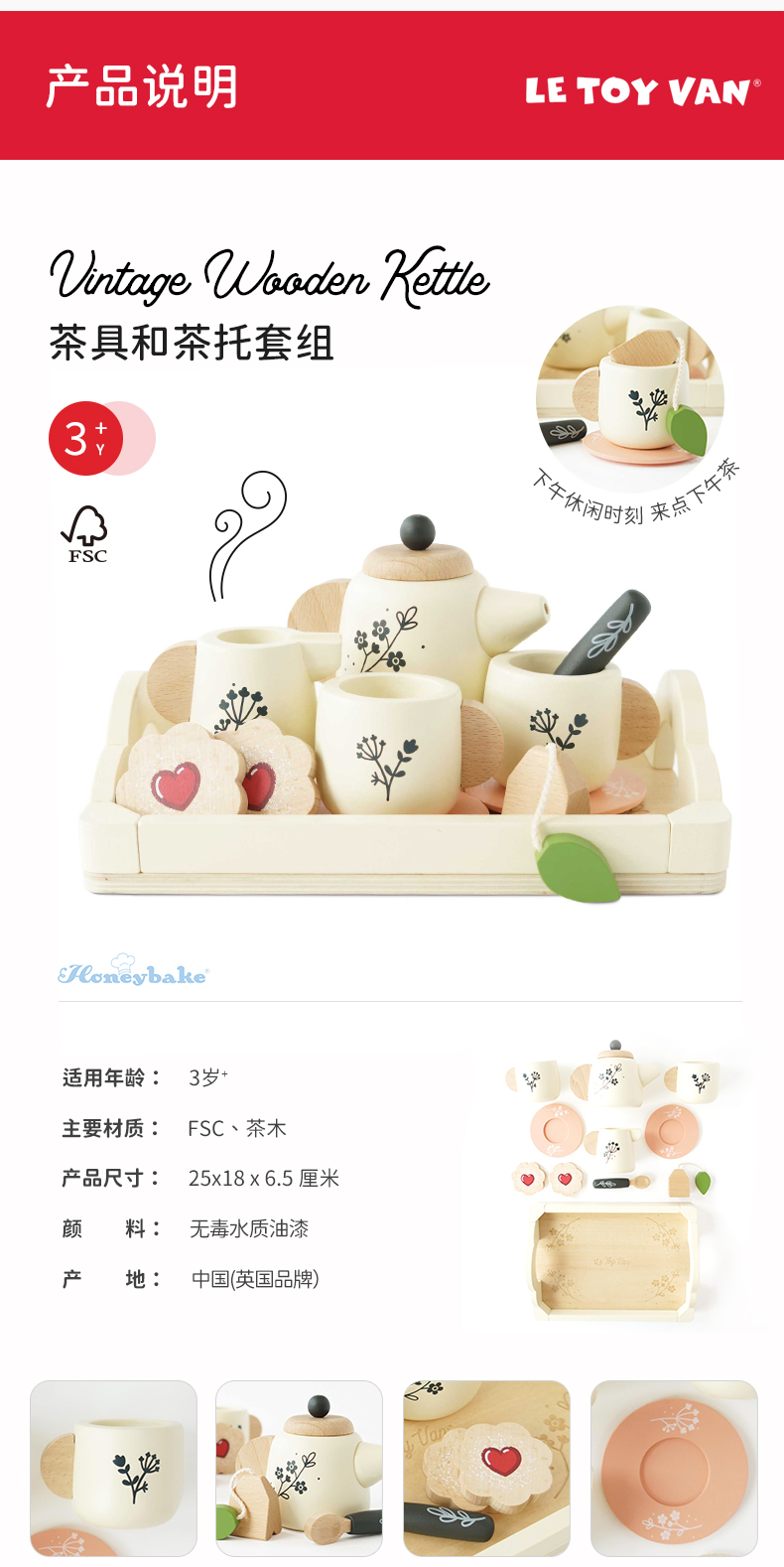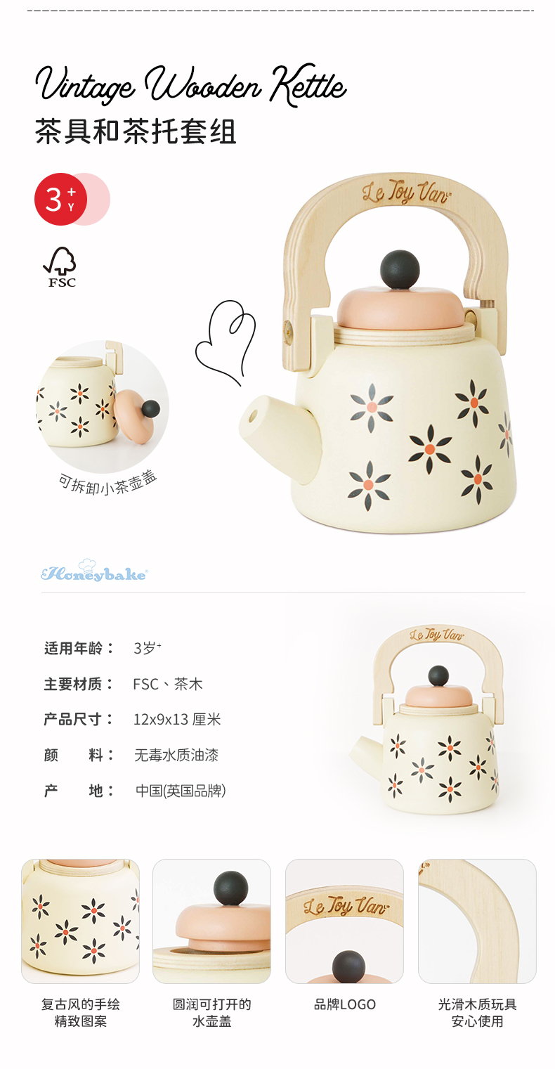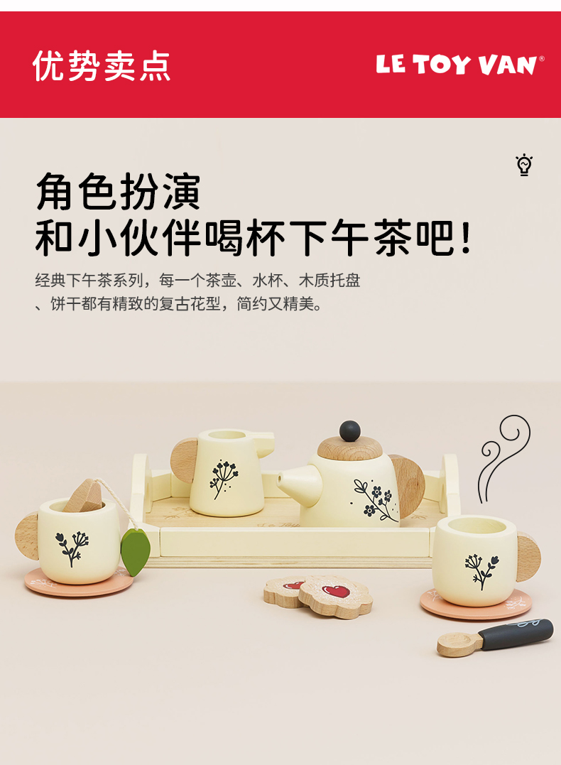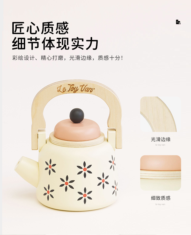 英国le toy van茶壶茶具套装过家家玩具厨房仿真儿童英式复古水壶 2岁+
