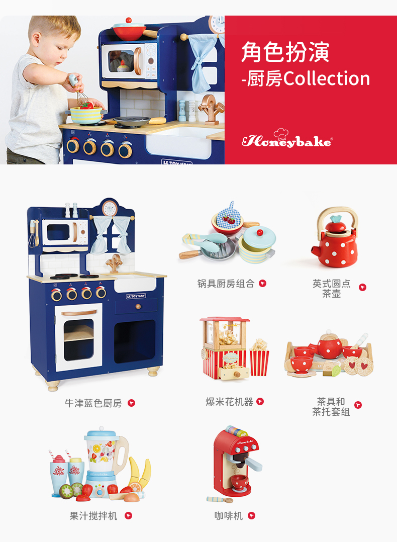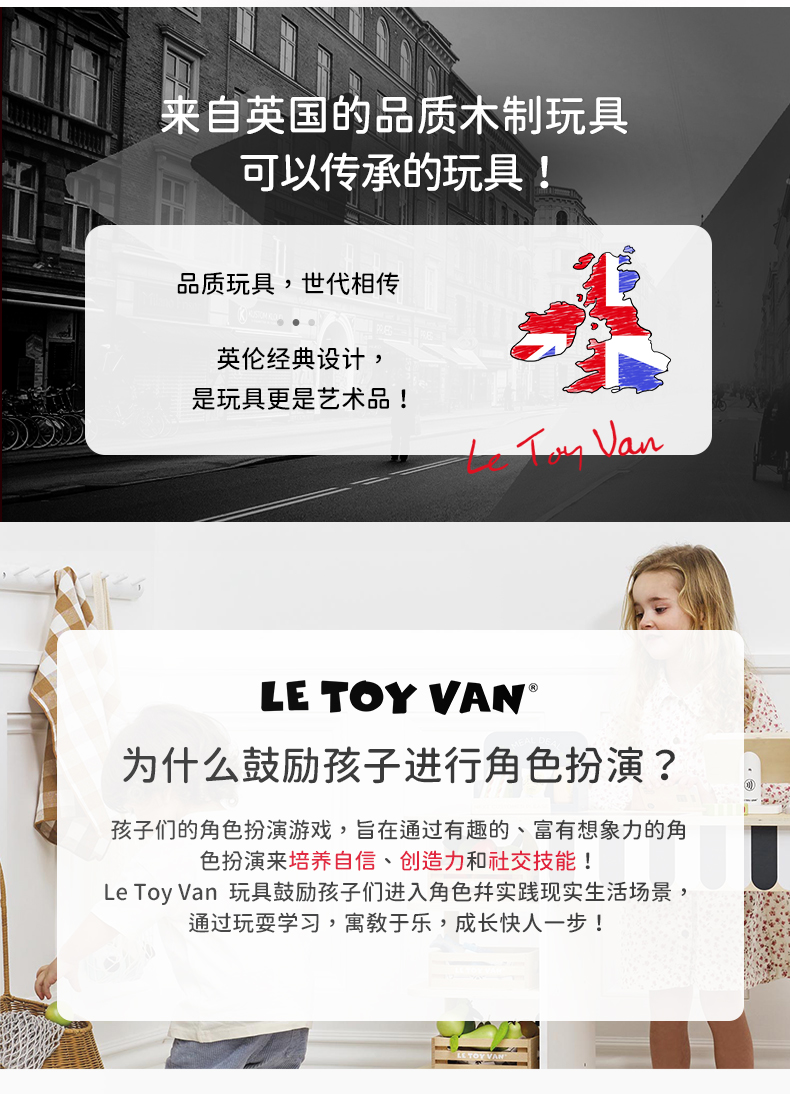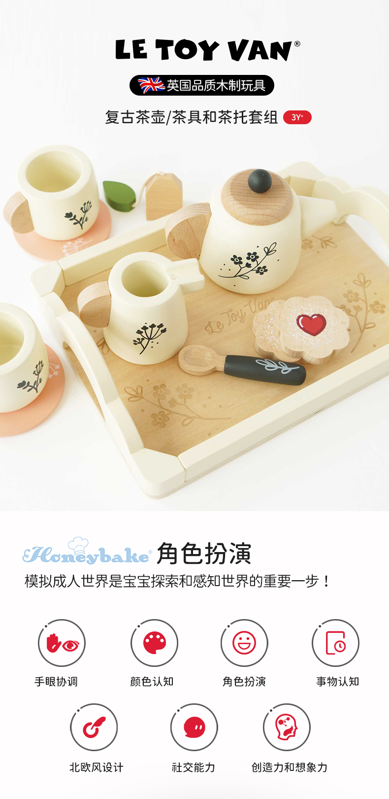 英国le toy van茶壶茶具套装过家家玩具厨房仿真儿童英式复古水壶 2岁+