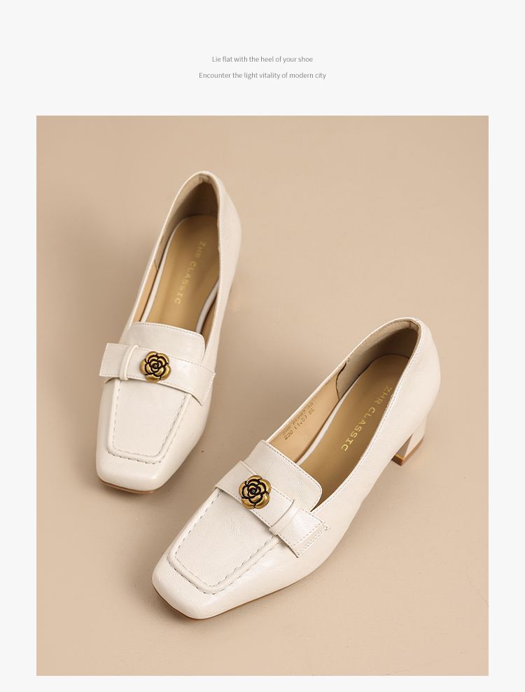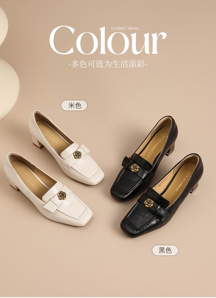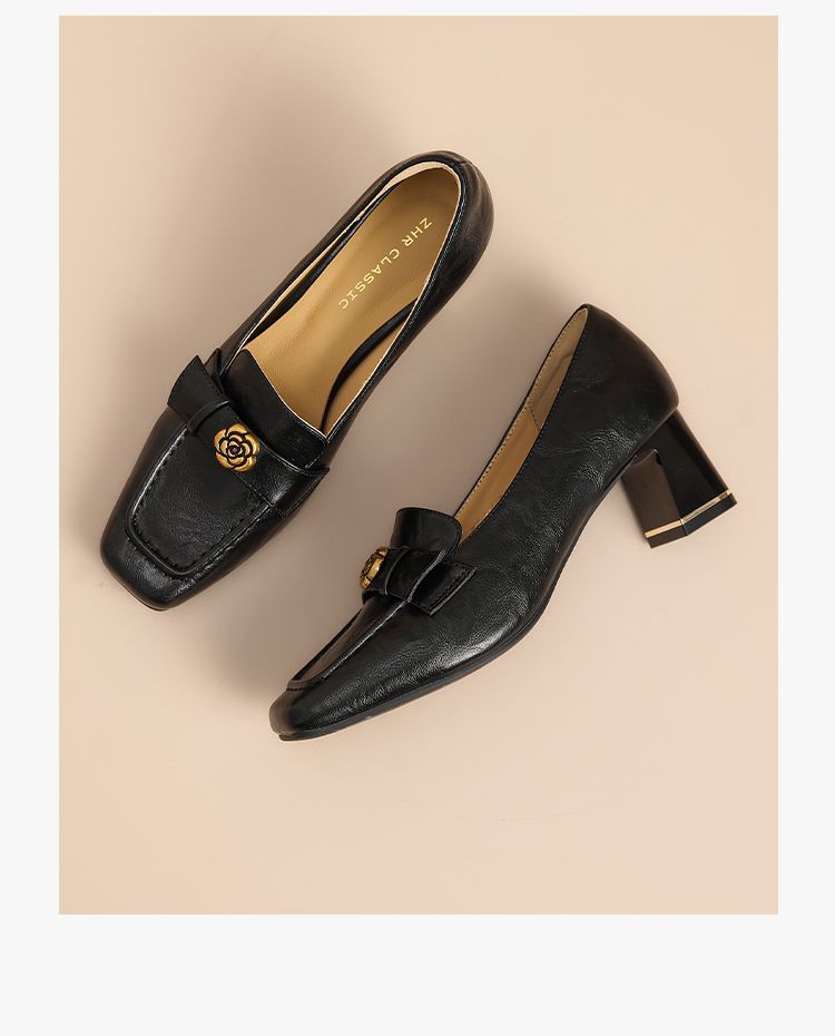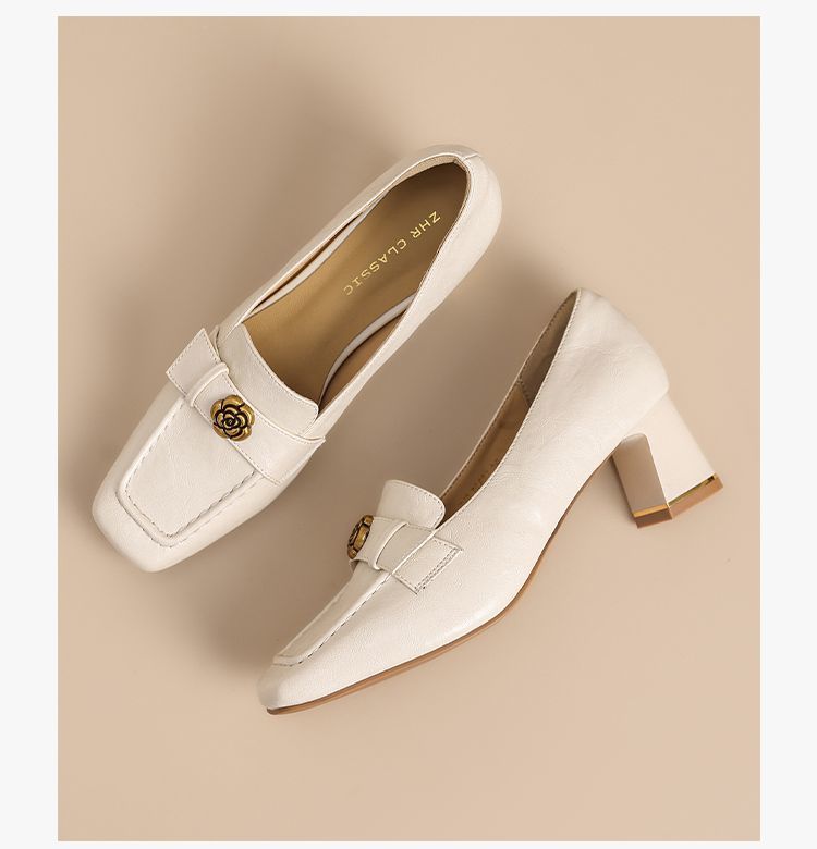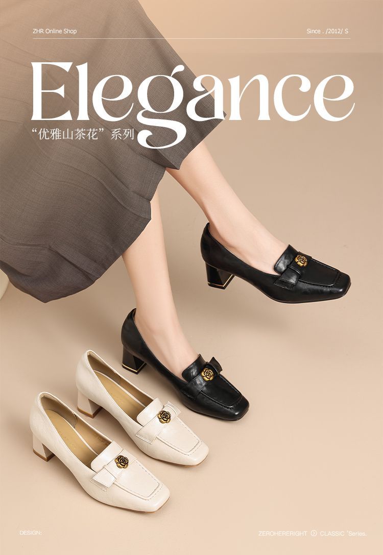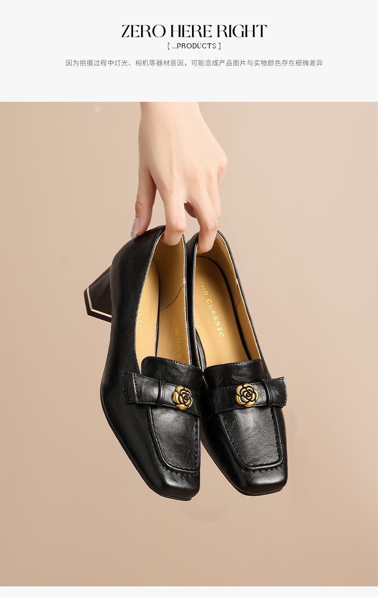 ZHR则则山茶花优雅浅口单鞋女2026新款时髦百搭复古方头粗跟单鞋