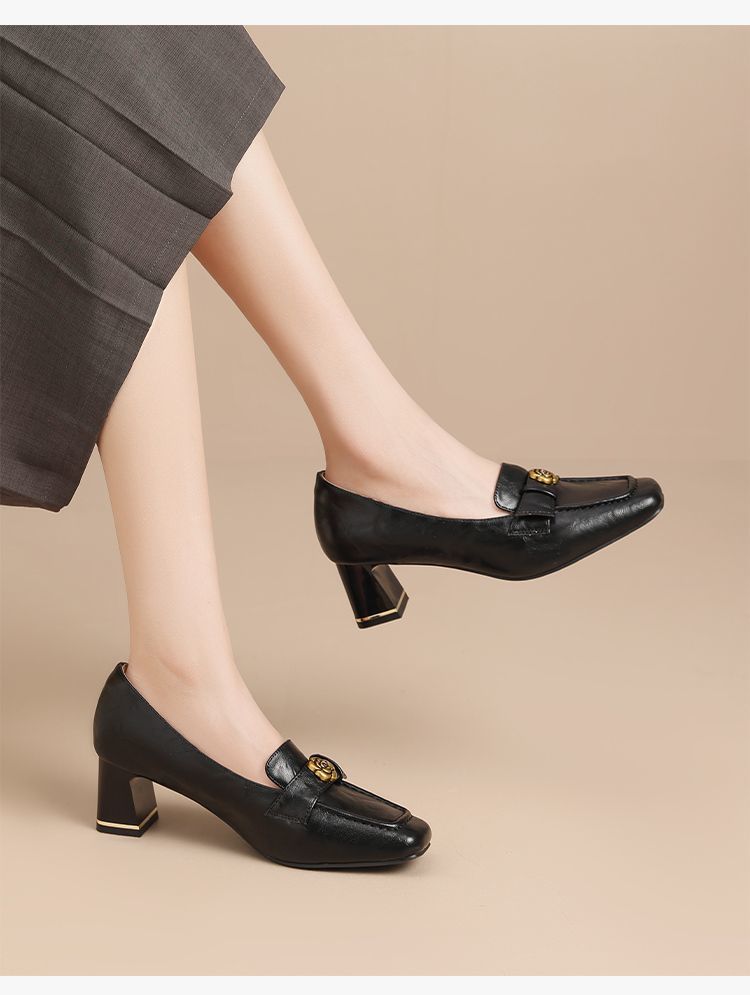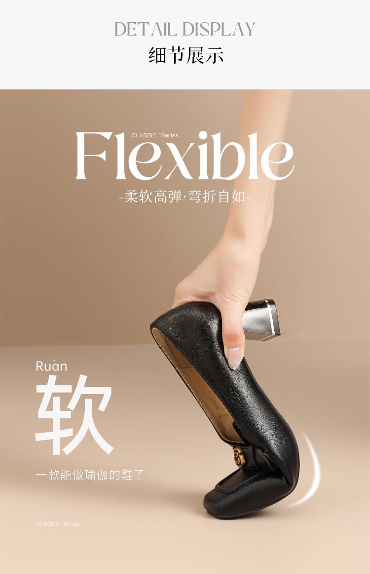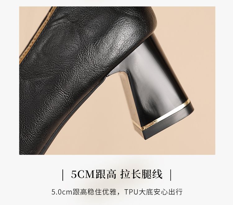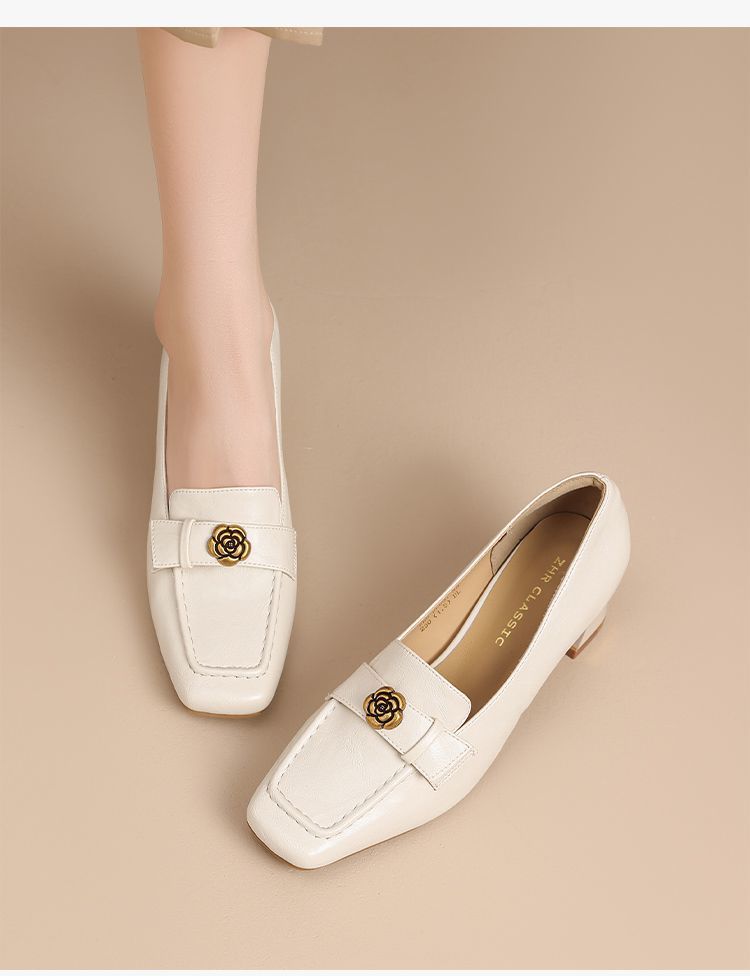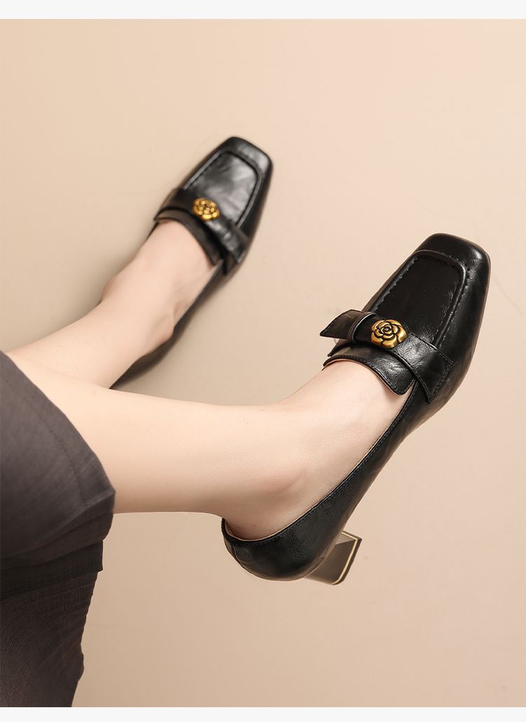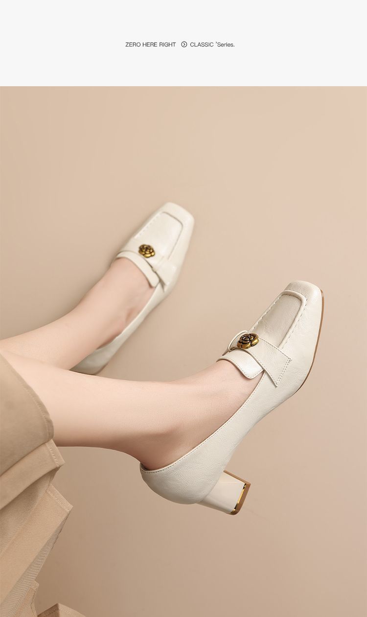 ZHR则则山茶花优雅浅口单鞋女2026新款时髦百搭复古方头粗跟单鞋