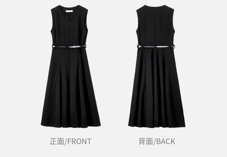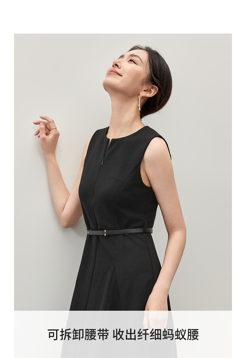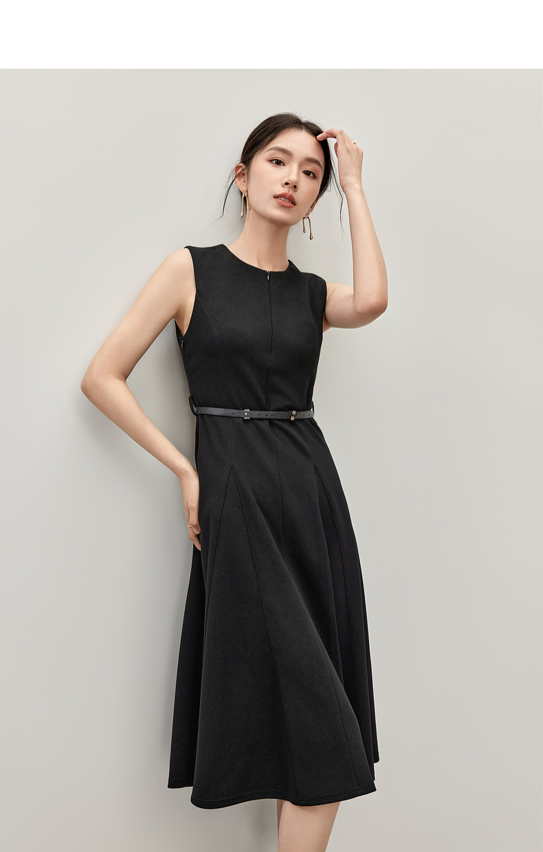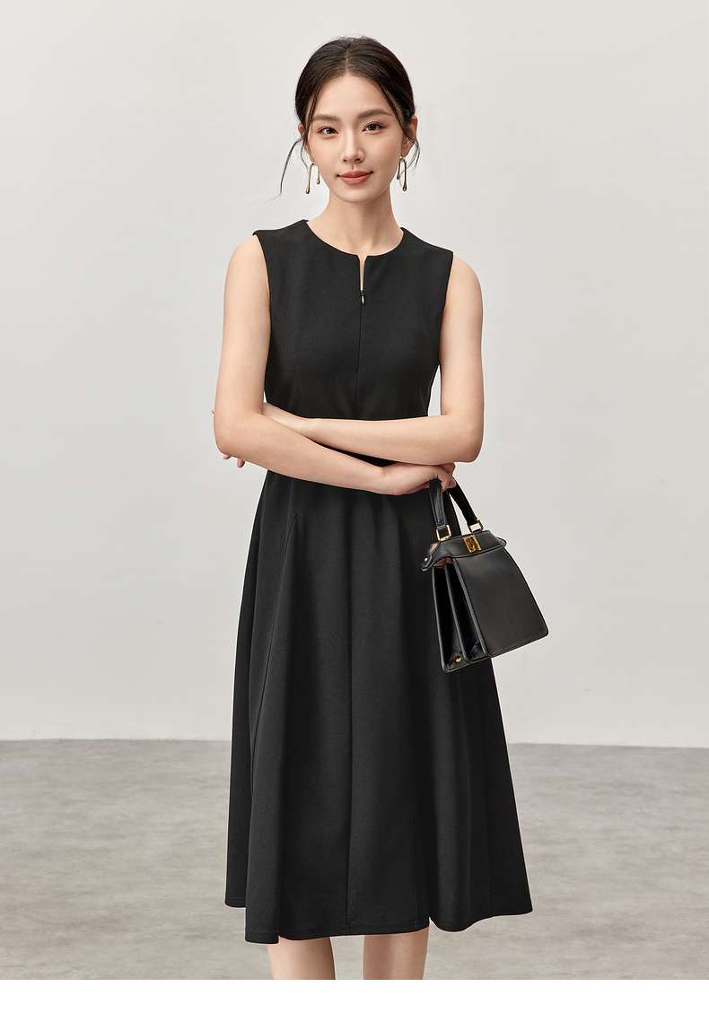 【内购】气质通勤拉链半开襟领高位收腰垂感大摆A字连衣裙-151L57383