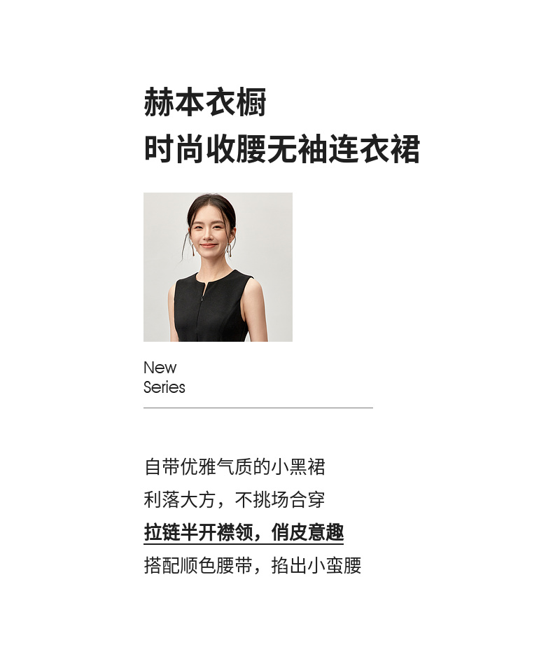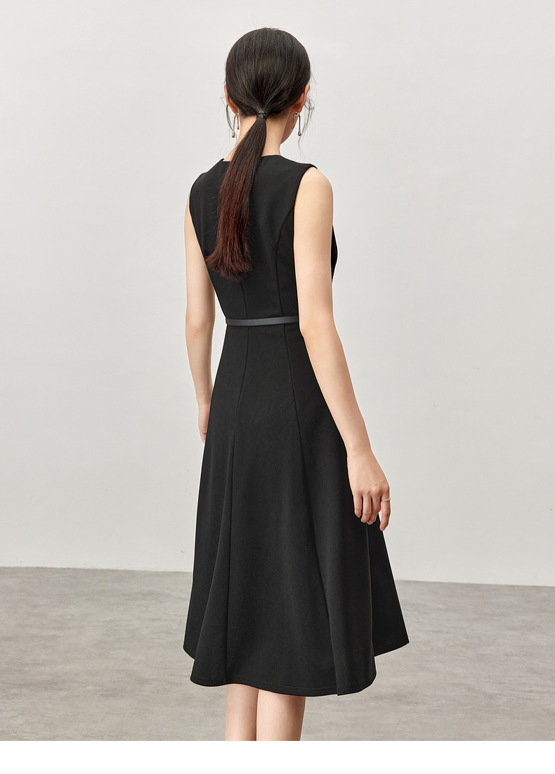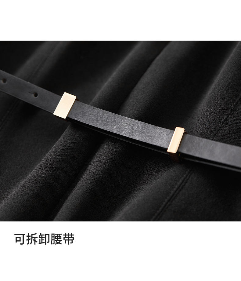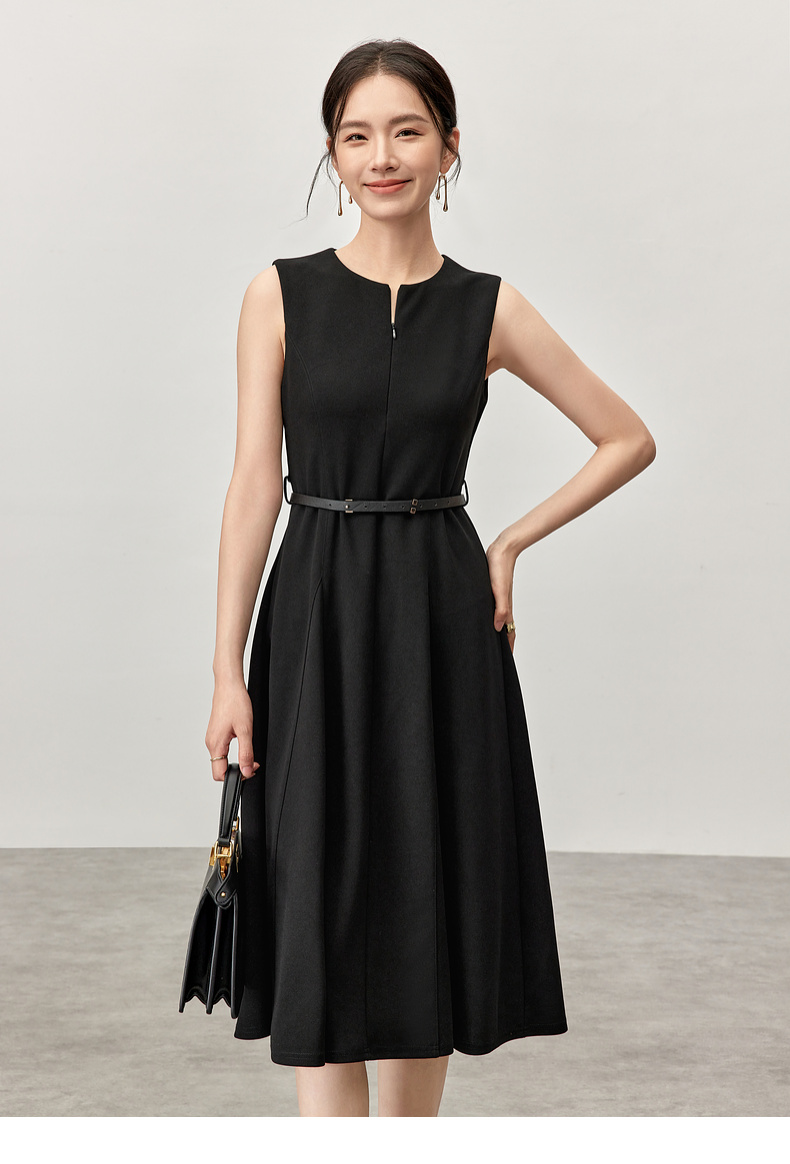 【内购】气质通勤拉链半开襟领高位收腰垂感大摆A字连衣裙-151L57383