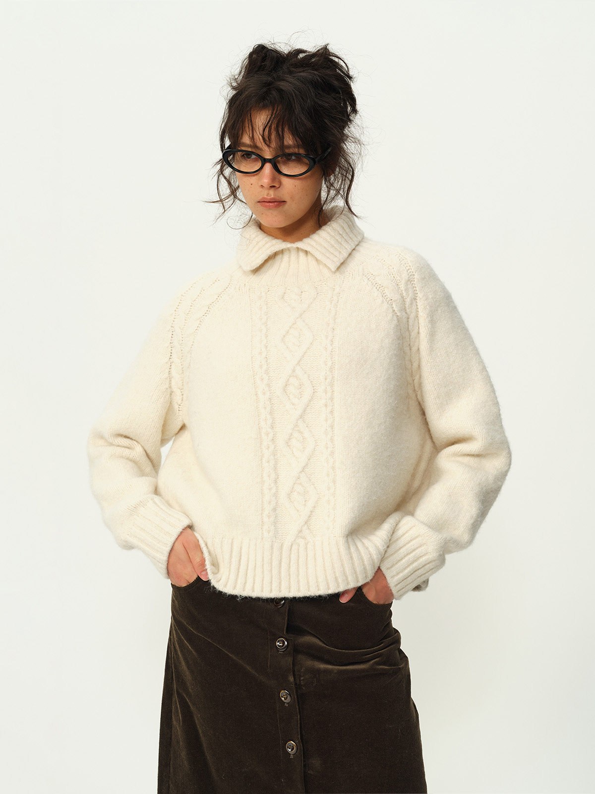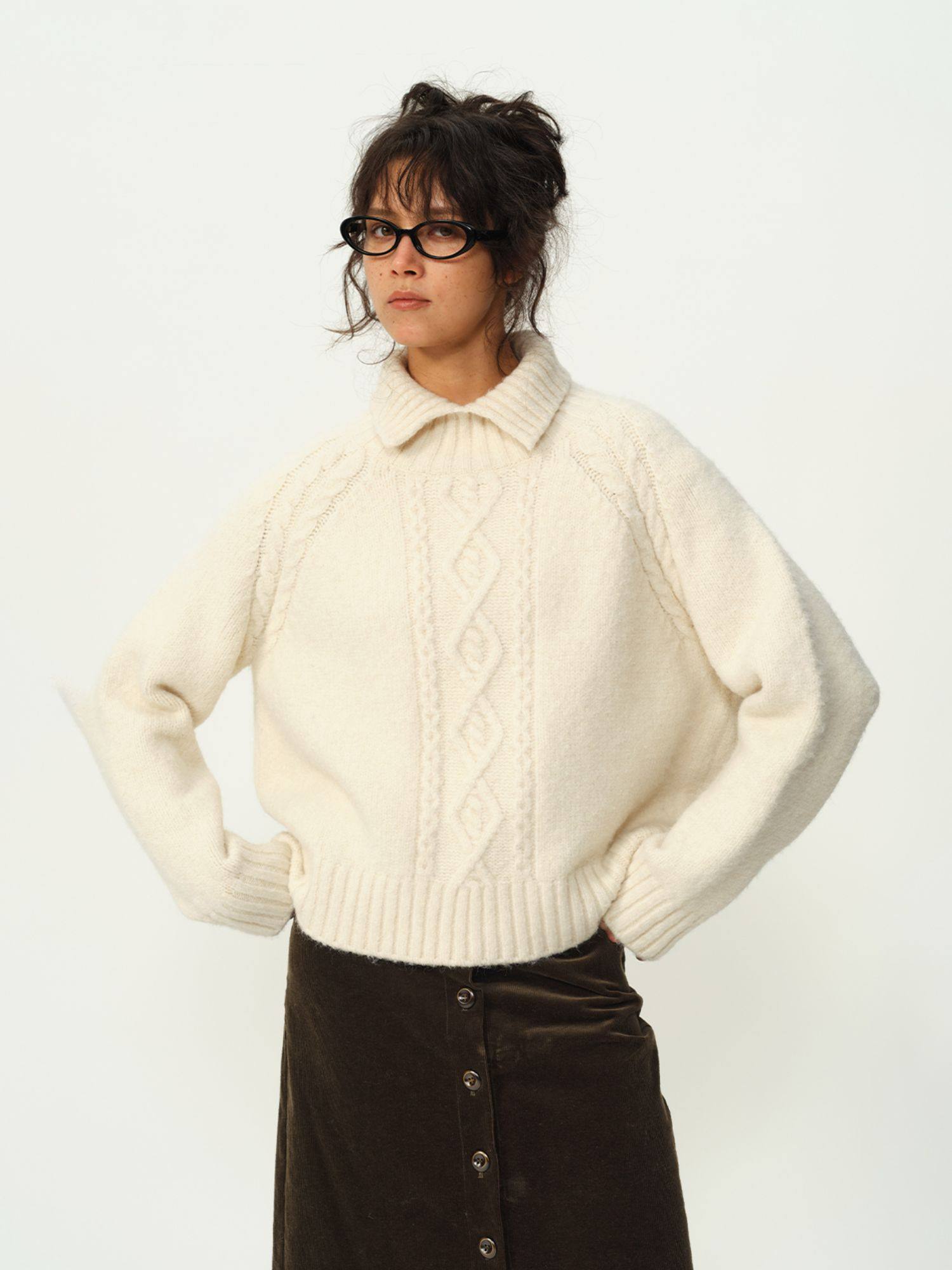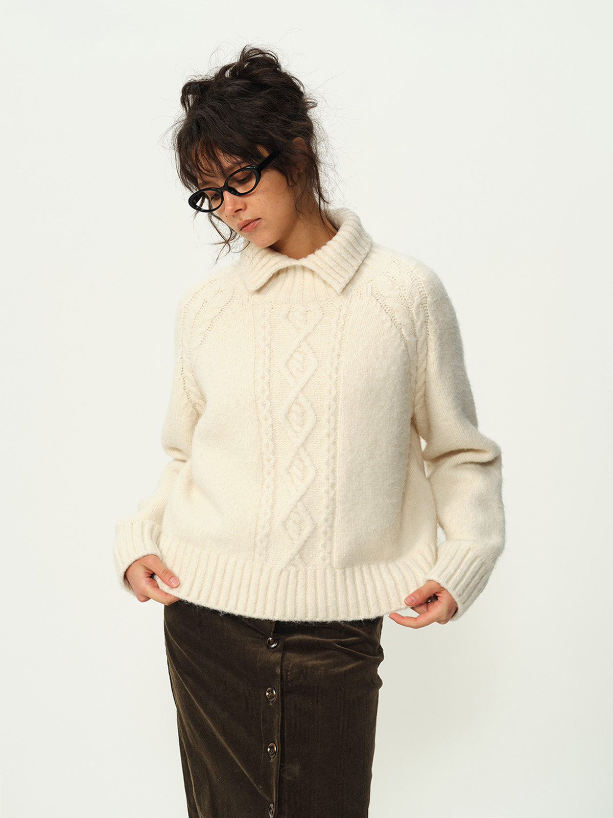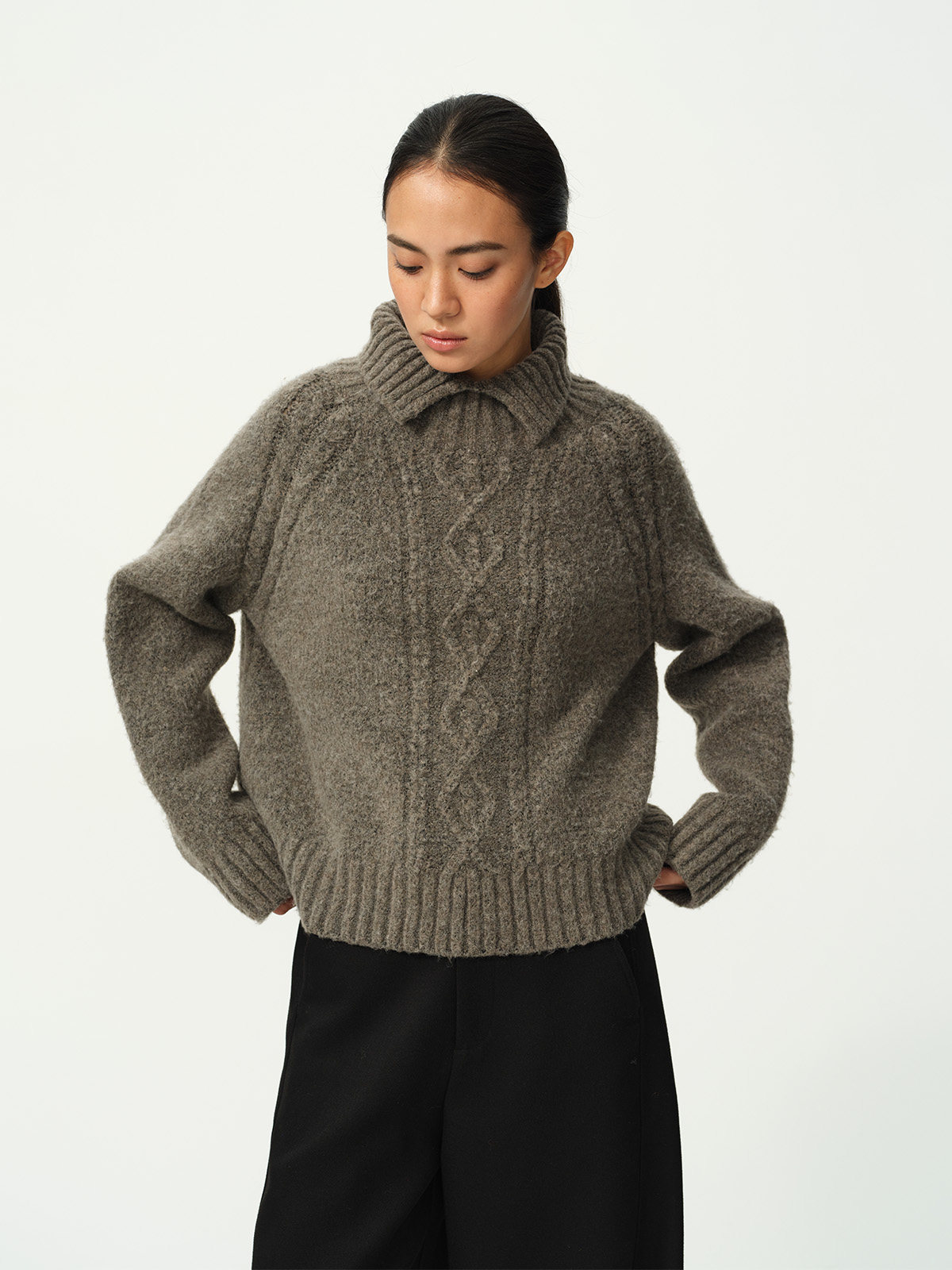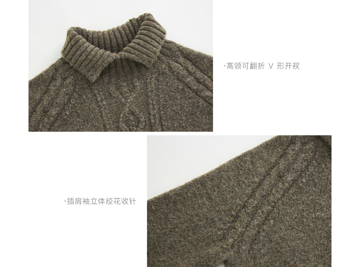 Evistub girls/E-5DMY1248/绵羊毛混纺绞花开衩毛衣