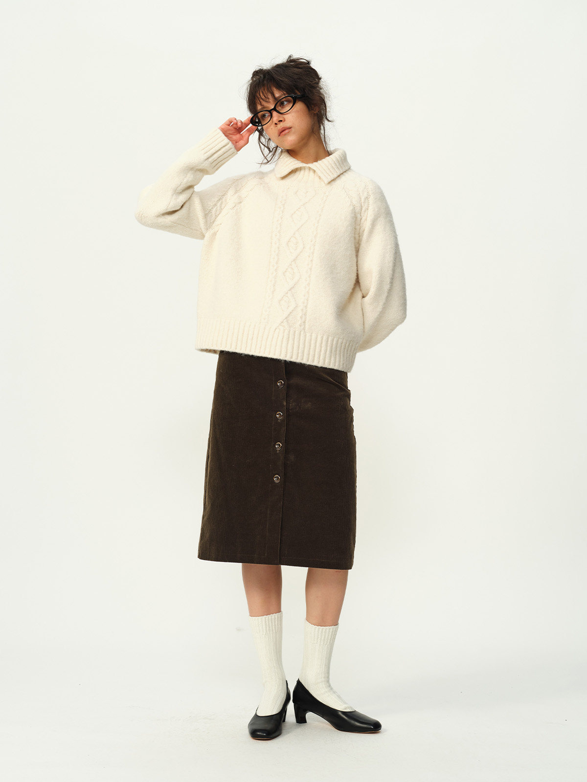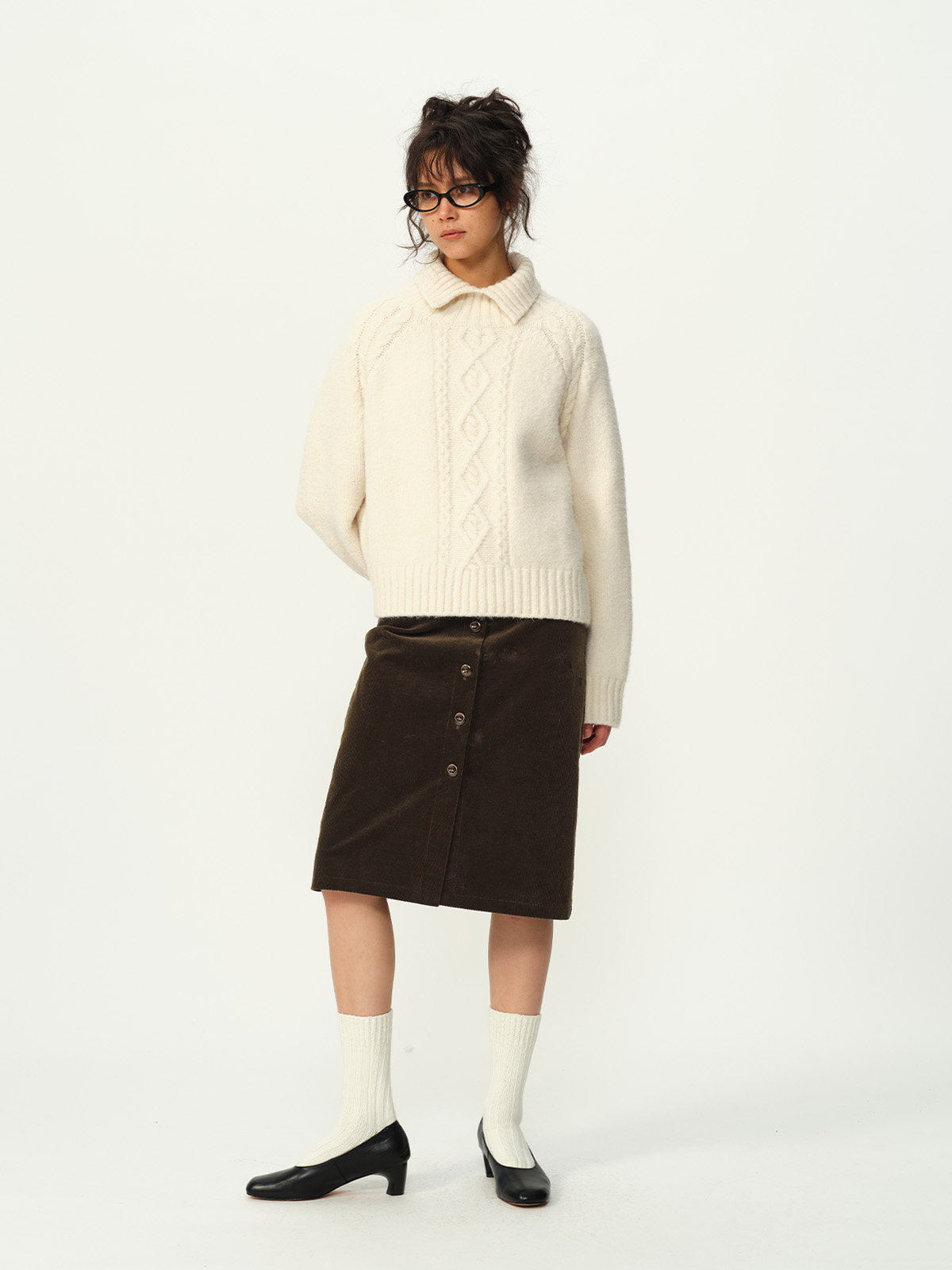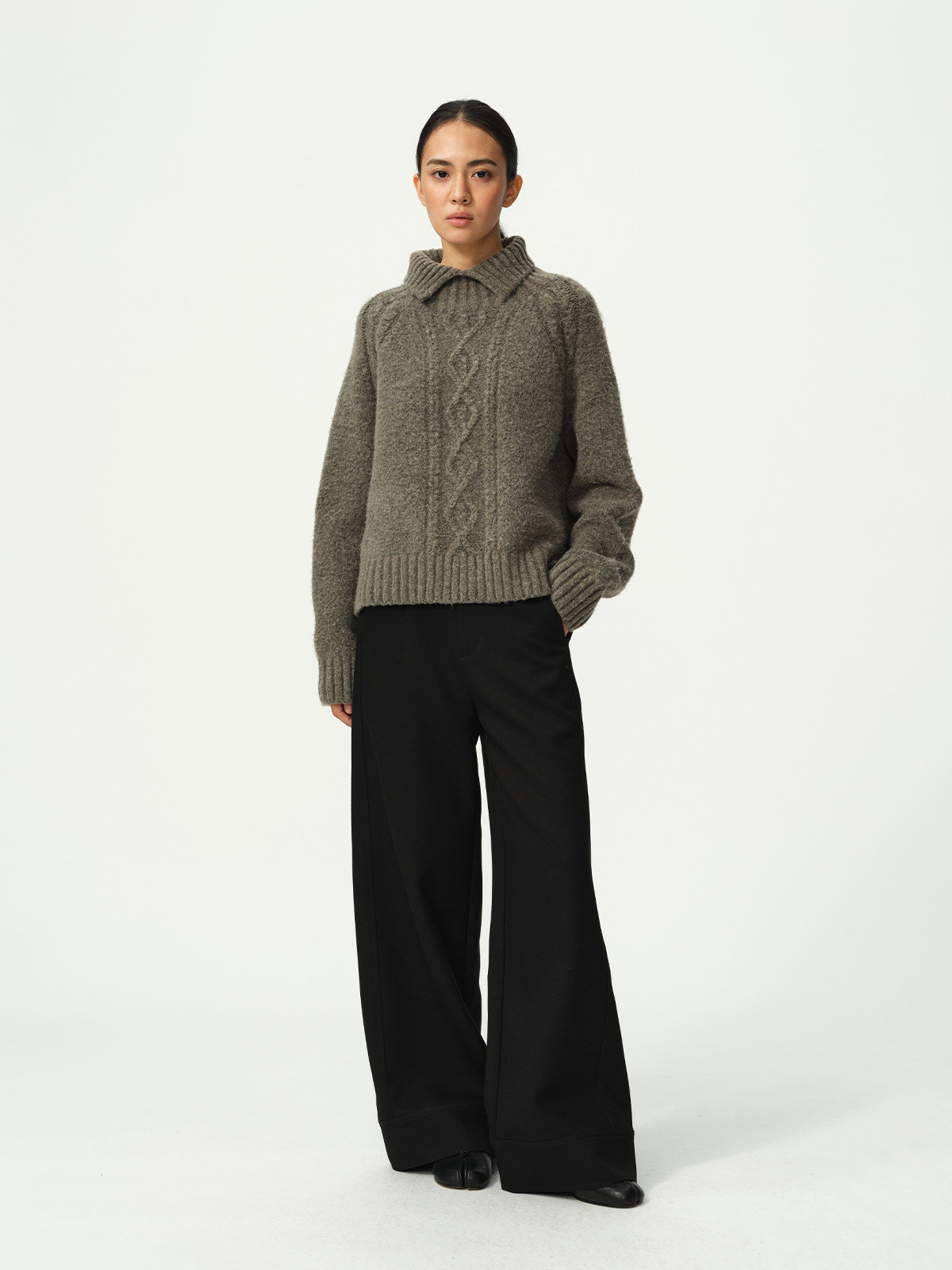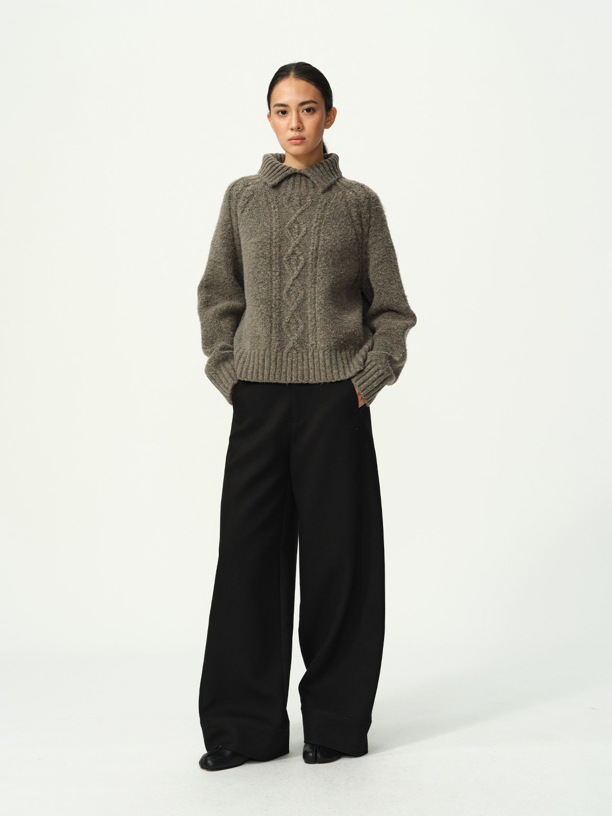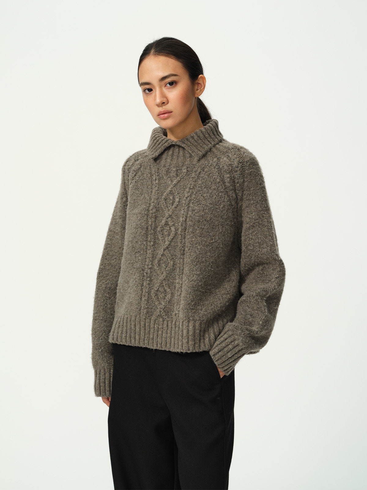 Evistub girls/E-5DMY1248/绵羊毛混纺绞花开衩毛衣